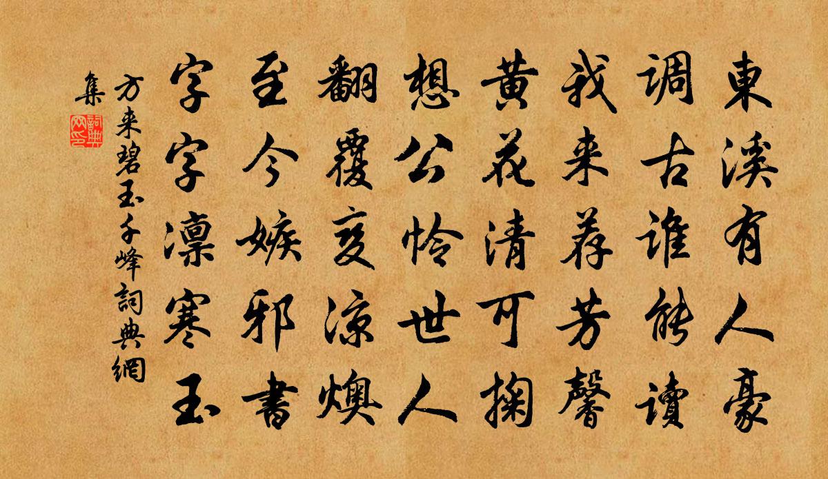 詩詞名句歷史字典書法欣賞書法字典國語詞典說文解字康熙字典古漢語字典標 題 作 者 詩 句 碧玉千峰作者:方來 朝代:宋代碧玉千峰原文東溪有人豪,調古誰能讀。我來薦芳馨,黃花清可掬。想公憐世人,翻覆變涼燠。至今嫉邪書,字字凜寒玉。詩詞問答問:碧玉千峰的作者是誰?答:方來問:碧玉千峰寫於哪個朝代?答:宋代方來碧玉千峰書法欣賞碧玉千峰書法作品詩詞推薦趙潛叔殉節詩元絳〔宋代〕轉戰譙門日再晡,空拳由自冒戈殳。身垂虎口方安坐,命棄鴻毛更疾呼。柱下杲卿存斷節,袴間杵臼得遺孤。可憐村居 其二王冕〔元代〕綠槿作籬笆,茅檐掛薜蘿。馬車渾不到,樵牧自相過。臥看歸田錄,行聽擊壤歌。優遊只如此,刀鋸奈吾何?宮詞二首(一作顧況詩)馬逢〔唐代〕金吾持戟護軒檐,天樂傳教萬姓瞻。樓上美人相倚看,紅妝透出水晶簾。玉樓天半起笙歌,風送宮人笑語和。月影句徐似道〔宋代〕黃四娘花空朵朵,謝三郎鬢已蒼蒼。燭李嶠〔唐代〕兔月清光隱,龍盤畫燭新。三星花入夜,四序玉調晨。浮炷依羅幌,吹香匝綺茵。若逢燕國相,持用舉賢人。書齋謾興二首翁承贊〔唐代〕池塘四五尺深水,籬落兩三般樣花。過客不須頻問姓,讀書聲里是吾家。官事歸來衣雪埋,兒童燈火小茅齋。人家玉蝴蝶(賦玉繡球花)張炎〔宋代〕留得一團和氣,此花開盡,春已規圓。虛白窗深,恍訝碧落星懸。颺芳叢、低翻雪羽,凝素艷、爭簇冰蟬。向西園隴西行四首陳陶〔唐代〕漢主東封報太平,無人金闕議邊兵。縱饒奪得林胡塞,磧地桑麻種不生。誓掃匈奴不顧身,五千貂錦喪胡塵。可憐奉和浚池初成清晨臨泛詩庾信〔南北朝〕千金高堰合。百頃浚源開。翻逢積翠浪。更識昆明灰。猿嘯風還急。雞鳴潮即來。時看青雀舫。遙逐桂舟回。浪淘沙吳潛〔宋代〕長記去年時。雪滿征衣。佳人攜手畫樓西。今日關山千里外,此恨誰知。想見綠窗低。依舊空閨。惜春還是惜花飛寄都下故人示王予安陳師道〔宋代〕湖海相忘日自疏,經年不作一行書。世間惟有韓康伯,肯為淵源住歲余。送唐大夫罷節歸山王建〔唐代〕年少平戎老學仙,表求骸骨乞生全。不堪腰下懸金印,已向雲西寄玉田。旄節抱歸官路上,公卿送到國門前。人間幽興陸游〔宋代〕午倦便高枕,朝飢美小餐。時穿幽圃屐,常掩小庵門。溪憶鷗盟約,花迷蝶夢魂。餘生猶幾許?萬事付乾坤。虞美人蔡伸〔宋代〕紅塵匹馬長安道。人與花俱老。緩垂鞭袖過平康。散盡高陽、零落少年場。朱弦重理相思調。無奈知音少。十年如寄鄠縣尉李廓少府姚合〔唐代〕歲滿休為吏,吟詩著白衣。愛山閒臥久,在世此心稀。聽鶴向風立,捕魚乘月歸。此君才不及,謬得侍彤闈。大榆張耒〔宋代〕高榆百餘年,其大數十圍。修柯遏雲日,老枿乾虹霓。嗟爾擁腫材,大匠已見遺。何人失翦伐,養此頑鈍姿。夏葉送昭敏首座釋重顯〔宋代〕君不見,鷲峰勝集,百萬茫茫等閒過,壞衲之外皆清墮。君又不見,熊嶺孤運,歲月索索艱難生,深雪之中有一箇代曾魯仲挽蔣同叔母二首黃榦〔宋代〕釜灶朝晡百儉艱,卮匜滫瀡況慈顏。欲知婦順妻賢處,盡在姑啼夫哭間。庭下芝蘭方擢秀,堂前松檜未應慳。空餘春暖郡圃散策三首楊萬里〔宋代〕已覺朝來退裌,衣日光風力軟如痴。倩誰留許春寒著,更放梅花住少時。病起釋文珦〔宋代〕病起山房四壁空,一年春盡雨聲中。無人知道情懷惡,獨倚溪橋看落紅。名句推薦曲終漏盡嚴具陳,月沒星稀天下旦。佚名《雞鳴歌》 自勝之謂強。韓非及後人《韓非子·喻老》 世事浮云何足問,不如高臥且加餐。王維《酌酒與裴迪》 苔深不能掃,落葉秋風早。李白《長干行二首》 漢家天子今神武,不肯和親歸去來。王之渙《涼州詞二首》 射有似乎君子。失諸正鵠,反求諸其身。子思《中庸·第十四章》 溫故,而知新,敦厚以崇禮。子思《中庸·第二十七章》 風暖鳥聲碎,日高花影重。杜荀鶴《 * 怨》 簌簌衣巾落棗花,村南村北響繅車,牛衣古柳賣黃瓜。蘇軾《浣溪沙·簌簌衣巾落棗花》 宦情羈思共淒淒,春半如秋意轉迷柳宗元《柳州二月榕葉落盡偶題》