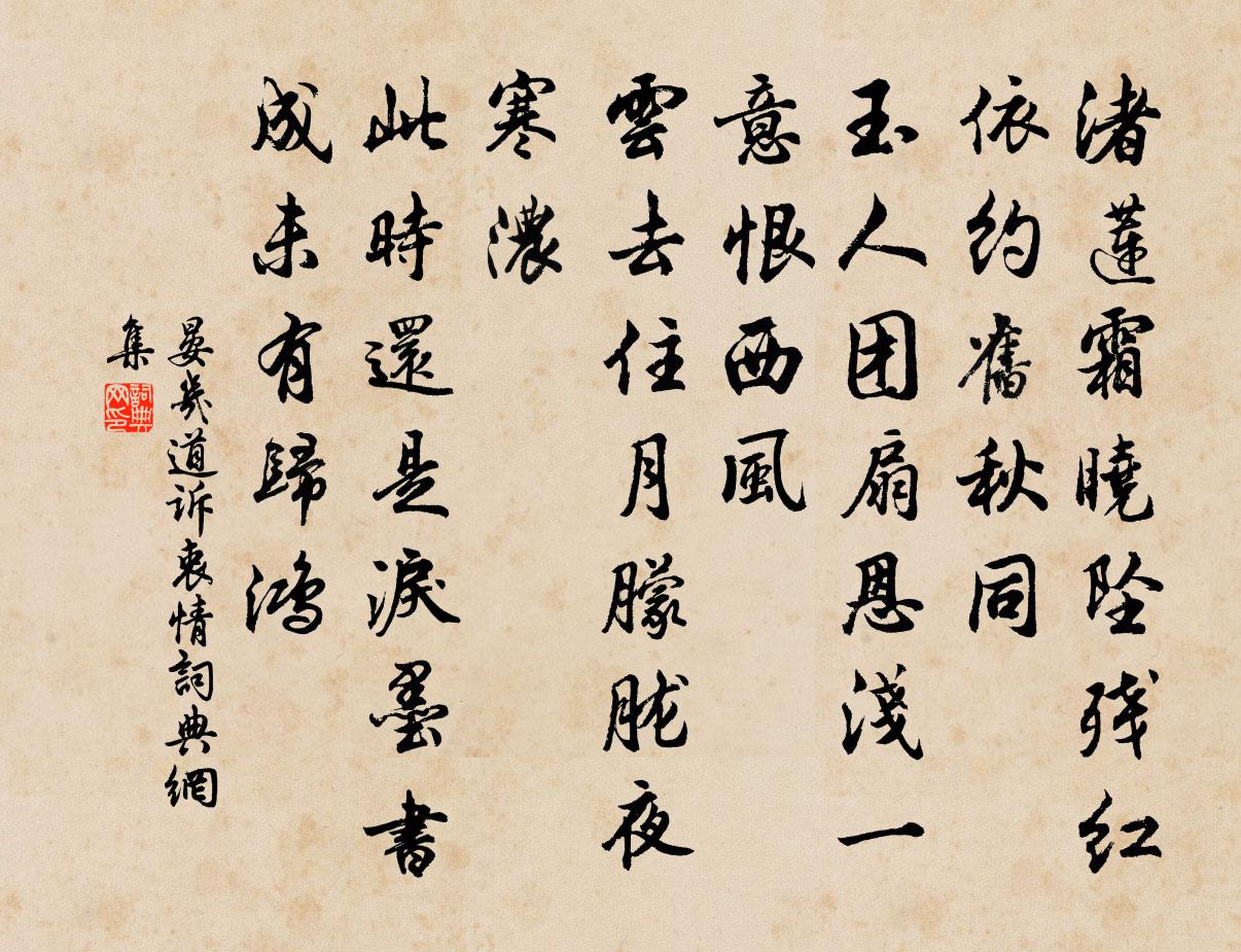 渚蓮霜曉墜殘紅,依約舊秋同。玉人團扇恩淺,一意恨西風。