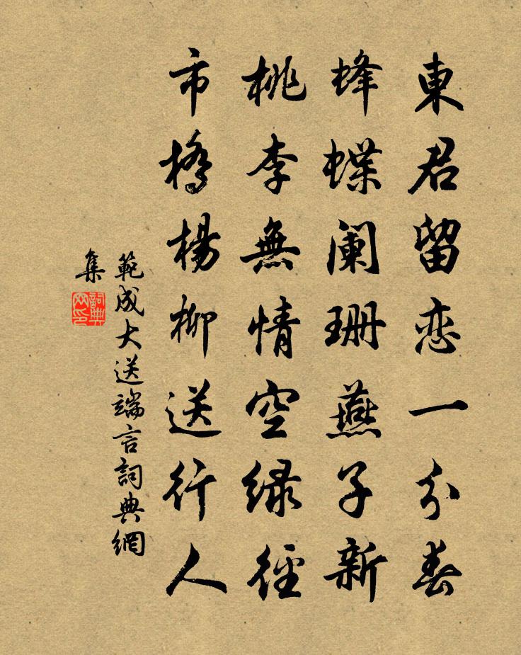 東君留戀一分春,蜂蝶闌珊燕子新。桃李無情空綠徑,市橋楊柳送行人。