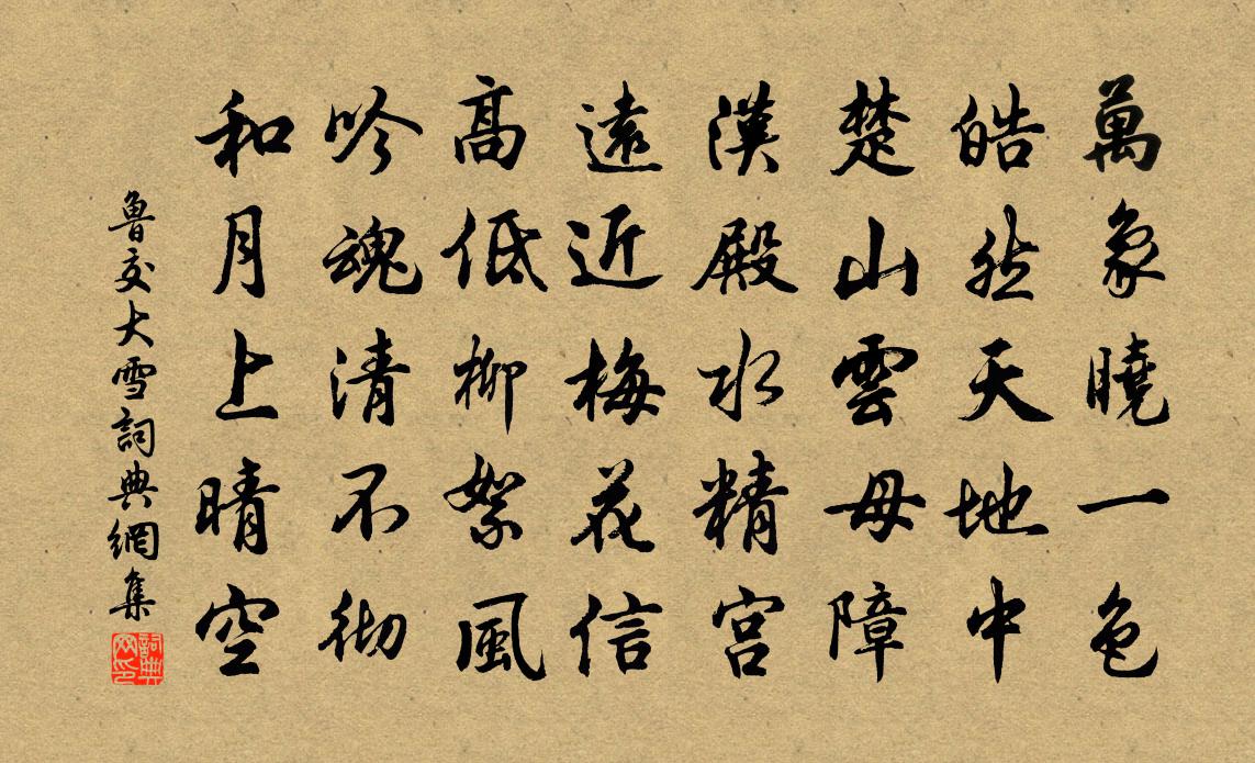 詩詞名句歷史字典書法欣賞書法字典國語詞典說文解字康熙字典古漢語字典標 題 作 者 詩 句 大雪作者:魯交 朝代:宋代大雪原文萬象曉一色,皓然天地中。楚山雲母障,漢殿水精宮。遠近梅花信,高低柳絮風。吟魂清不徹,和月上晴空。詩詞問答問:大雪的作者是誰?答:魯交問:大雪寫於哪個朝代?答:宋代魯交大雪書法欣賞大雪書法作品詩詞推薦呈貝懶雲先生程浚〔宋代〕一片間心只在山,故將疏懶傲塵寰。白雲猶有往來意,師獨蕭然天壤間。碩人趙氏輓詩二首李彌遜〔宋代〕毓秀名臣裔,來賓上相家。浮漚輕富貴,朽木視鉛華。曉日俄晞露,春風自笑花。仙蹤今不返,望斷五雲車。豐城劍池即事章孝標〔唐代〕神物不復見,小池空在茲。因嫌沖斗夜,未是偃戈時。岸古魚藏穴,蒲凋翠立危。吾皇別有劍,何必鑄金為。偈頌一百零二首釋紹曇〔宋代〕春日打春牛,一擊百雜碎。黃梅石女暗驚胎,生下無名物一塊。問四聖四聖不知,問六凡六凡不會。風前散作萬家歡物吟邵雍〔宋代〕水雨霖,火雨露。土雨蒙,石雨雹。送方太夫人西還徐燦〔清代〕舊遊京國久相親,三載同淹紫塞塵。玉佩忽攜春色至,蘭燈重映歲華新。多經坎坷增交誼,遂判雲龍斷夙因。料得西城有懷舊遊賀鑄〔宋代〕西郭天泉里,依依得舊遊。綺羅紅芰曉,絲管萬蟬秋。柳礙鞦韆陌,萍枕祓褉舟。華年勿復道,誰為駐東流。蝶戀花(惜春)曾覿〔宋代〕翠箔垂雲香噴霧。年少疏狂,載酒尋芳路。多少惜花春意緒。勸人金盞歌金縷。桃李飄零風景暮。只有閒愁,不逐望道一首蘇籀〔宋代〕少年相尚依阿語,老大回看不住心。望道尊師豈盲進,憂時論事敢浮沈。侏儒飽死嗤方朔,懸罄飢貧類展禽。好古殘句:唐虞得良弼王禹偁〔宋代〕唐虞得良弼,姬孔是前身。尼丘鍾骨骼,嵩獄輿精神。雨後極涼料簡篋中舊書有感陸游〔宋代〕日昳小雨不至晡,雨雖未足涼有餘。細泉泠泠咽幽竇,清風策策驚高梧。笠澤老翁病甦醒,欣然起理西齋書。十年病題二首徐鉉〔唐代〕性靈書慵懶百無書能,唯被朝參遣夙興。聖主優容恩未答,丹經疏闊病相陵。脾傷對客偏愁書,眼暗看書每愧燈。漁塘十六韻(在朱陽縣石岩下)韋莊〔唐代〕洛水分餘脈,穿岩出石棱。碧經嵐氣重,清帶露華澄。瑩澈通三島,岩梧積萬層。巢由應共到,劉阮想同登。壁峻瑞鶴仙徐理〔宋代〕暮霞枕紅映沼。枕恨柳枝疏枕瘦,不禁風攪。投林數歸鳥。更枯莖敲荻,糝紅堆蓼。江寒浪小。雁來多、音枕苦少過長安渡黃載〔宋代〕重來已過十番秋,更十番秋欲白頭。無限舊時心裡事,青山殘照水東流。六友詩寄林景雲留壽國林道初俞季淵節友劉黻〔宋代〕節友獨愛秋,相得匪遲暮。受氣惟至正,睟見黃與素。飽諳風露味,甘守煙霞痼。如何千載人,僅一淵明遇。離歌辭五首徐鉉〔唐代〕暫別勞相送,佳期願莫違。朱顏不須老,留取待郎歸。次韻子瞻獨覺蘇轍〔宋代〕咄咄書空中有怪,內熱搜膏發癰疥。羹藜飯芋如固然,飽食安眠真一快。午雞鳴屋呼不起,欠伸吉貝重衾里。此身如此江山 泛曲阿後湖 曲阿詞綜曲阿詞綜中,虞薦發〔元代〕依依楊柳,青絲縷、掩映綠波南浦。燕掠橫斜,鱗遊蕩漾,恰是湔裙時序。清泠如許。恍鏡影空磨,簟痕密聚。欲寄郝太沖張詠〔宋代〕閒愁休問意休疑,此事關身合再思。心靜易求長世法,氣狂難與少年時。新編到底將何用,舊好如今更有誰。猶憶名句推薦斜風細雨不須歸。蘇軾《浣溪沙·漁父》 荷花嬌欲語,愁殺蕩舟人。李白《淥水曲》 使能,國之利也。左丘明《左傳·文公·文公六年》 遷客此時徒極目,長洲孤月向誰明。李白《鸚鵡洲》 小人錯其在己者,而慕其在天者。荀子《荀子·天論》 勿以身貴而賤人,勿以獨見而違眾。姜子牙《六韜·龍韜·立將》 醉里挑燈看劍,夢回吹角連營。辛棄疾《破陣子·為陳同甫賦壯詞以寄之》 童子解吟長恨曲,胡兒能唱琵琶篇。李忱《吊白居易》 月黑雁飛高,單于夜遁逃。盧綸《和張僕射塞下曲·其三》 白鳥一雙臨水立,見人驚起入蘆花。戴復古《江村晚眺》
