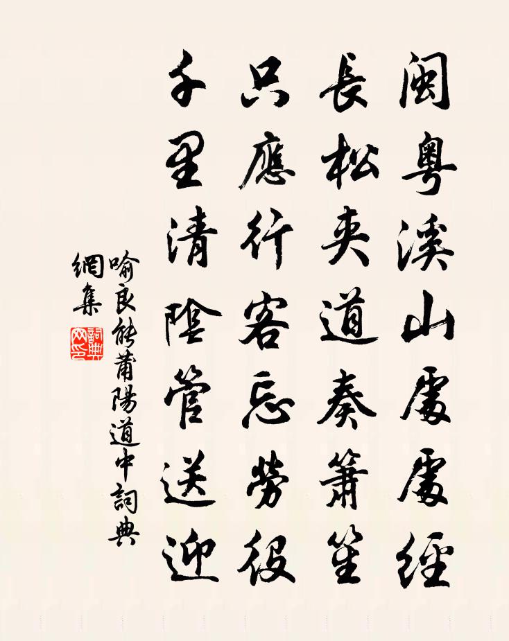 詩詞名句歷史字典書法欣賞書法字典國語詞典說文解字康熙字典古漢語字典標 題 作 者 詩 句 莆陽道中作者:喻良能 朝代:宋代莆陽道中原文閩粵溪山處處經,長松夾道奏簫笙。只應行客忘勞役,千里清陰管送迎。詩詞問答問:莆陽道中的作者是誰?答:喻良能問:莆陽道中寫於哪個朝代?答:宋代喻良能莆陽道中書法欣賞莆陽道中書法作品詩詞推薦雁朱乘〔宋代〕八月新霜岸草枯,數聲哀怨雁來初。憑君試向沙汀看,恐帶匈奴二帝書。句孫山〔宋代〕難足斜分三道水,蛇腰慢轉一條街。南柯子劉志淵〔元代〕體若虛空淨,心如泰華安。萬緣妄想不相干。正住無思,觸處得安閒。覺海神珠瑩,禪天性月寒。圓明不昧顯**讀初寮集呈王宗丞喻良能〔宋代〕初寮文律冠中京,晚歲深嚴三折肱。清處月中仍聚雪,高時風裡政摶鵬。家聲不墜推王粲,句法能傳有杜陵。剩作系樂府十二首去鄉悲元結〔唐代〕躊躕古塞關,悲歌為誰長。日行見孤老,羸弱相提將。聞其呼怨聲,聞聲問其方。方言無患苦,豈棄父母鄉。非不水調歌頭(十之二)夏元鼎〔宋代〕要識刀圭訣,一味水銀鉛。驢名馬字,九三四八萬千般。愚底轉生分別,劃地喚爺作父,荊棘滿心田。去道日以遠頌古五十五首釋紹曇〔宋代〕濁酒松醪吃兩鍾,醉拖長袖舞春風。天崩地裂誰能管,幾見落花堆亂紅。劉禹端公問雲居雨從何來東平問官人風作何色釋重顯〔宋代〕雨從何來,風作何色。龍門萬仞,曾留宿客。進退相將,誰遭點額。採桑子晏幾道〔宋代〕秋來更覺消魂苦,小字還稀。坐想行思,怎得相看似舊時。南樓把手憑肩處,風月應知。別後除非,夢裡時時得見小重山·秋到長門秋草黃薛昭蘊〔唐代〕秋到長門秋草黃。畫梁雙燕去,出宮牆。玉簫無復理霓裳。金蟬墜,鸞鏡掩休妝。憶昔在昭陽。舞衣紅緩帶,繡鴛彈歌先秦無名〔先秦〕斷竹續竹。飛土逐宍。庚戍生日再擬去擬去歲輓歌辭葉茵〔宋代〕憶昨歲莫止,慷慨生當機。擬韻追先哲,持為自壽詩。成篇示叔季,心然 * 非。詎知不一霜,季兮先露晞。興思和賀子忱喜雪曹勛〔宋代〕蘊玉梅初艷,埋青麥自豐。漸冰留水研,時喜拂窗風。能賦懷王粲,開樽憶孔融。警寒方認鶴,掃逕屢嗔童。色動又登碧雲亭感懷三十首吳芾〔宋代〕晚上危亭景色饒,眼中突兀是凌歊。三千粉黛知何許,只有江山鎖寂寥。江村道中書觸目陸游〔宋代〕短籬曲曲對開門,修竹陰陰不見村。別浦回潮魚滬密,孤舟春近雁沙溫。路逢行客時交轡,店賣新醅一舉樽。忽過寄徐縣丞趙師秀〔宋代〕自爾為官去,吾扉亦返關。池成逢夜雨,籬壞出秋山。歲事登禾稼,朝綱去草菅。題書寄漳水,專俟好詩還。六州佚名〔宋代〕嚴太寢,容禮繹前經。仰蒼粹,欽厚順,式報生成。至信洽,上格神靈。太和凝氣象,霄宇澄清。圭幣列,鼓鍾鏗說之方憂韓公表大夫疾遽致仕乃蒙傳視送陳州晁說之〔宋代〕君少我十歲,憐我空老大。期君到雲霄,遺我余謦欬。忽先辭漢祿,孰從仰周賚。顧惟神所勞,何論心乎愛。憶南中兄弟鄭獬〔宋代〕河上青青榆葉稀,湘童何日報南歸。可嗟不及衡陽雁,兄弟相將作隊飛。苦雨曾鞏〔宋代〕霧圍南山郁冥冥,狹谷荒風驅水聲。只疑日失黃道去,又見雨含滄海生。如催病骨夜寒入,似送客心衰思驚。揚州名句推薦君行逾十年,孤妾常獨棲。曹植《明月上高樓》 況故人新擁,漢壇旌節。辛棄疾《滿江紅·漢水東流》 風力雖尚勁,然徒步則汗出浹背。袁宏道《滿井遊記》 黃華自與西風約,白髮先從遠客生。元好問《秋懷》 動莫若敬,居莫若儉,德莫若讓,事莫若咨。左丘明《國語·周語·晉羊舌肸聘周論單靖公敬儉讓咨》 閒處光陰易過曹雪芹《紅樓夢·第一回》 箴者,針也,所以攻疾防患,喻針石也。劉勰《文心雕龍·銘箴》 自古逢秋悲寂寥,我言秋日勝春朝。劉禹錫《秋詞》 多私者不義,揚言者寡信。戴聖《大戴禮記·文王官人第七十二》 何當擊凡鳥,毛血灑平蕪。杜甫《畫鷹》