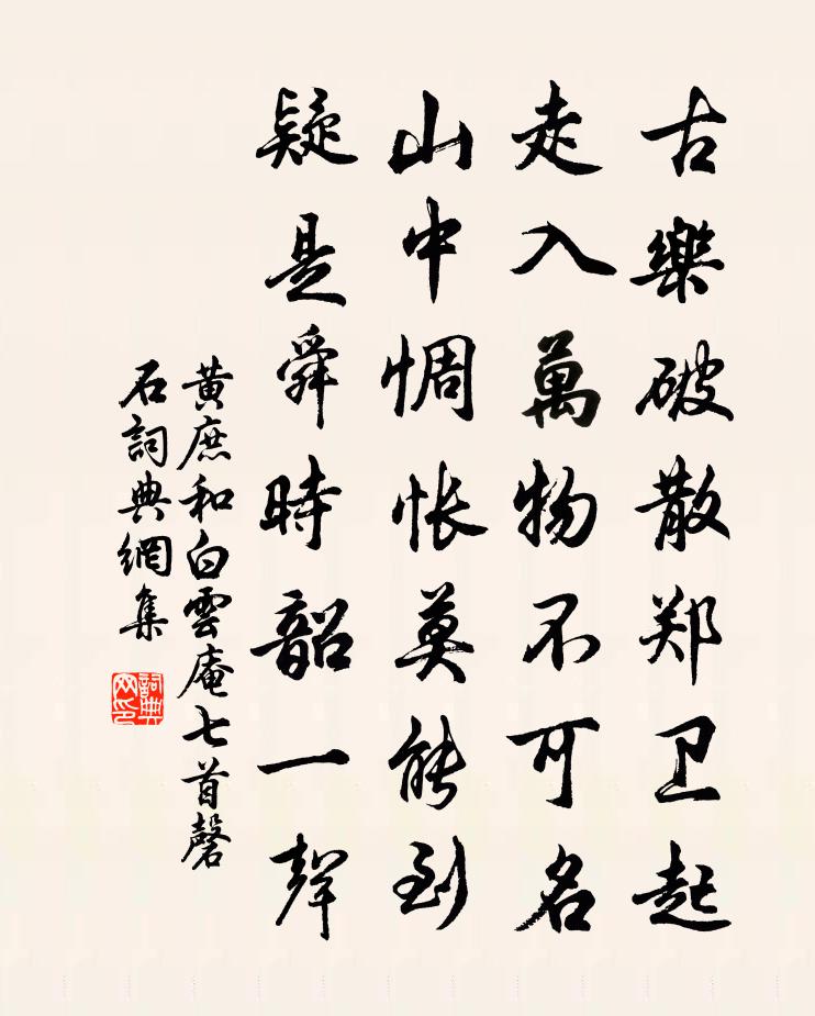 詩詞名句歷史字典書法欣賞書法字典國語詞典說文解字康熙字典古漢語字典標 題 作 者 詩 句 和白雲庵七首磬石作者:黃庶 朝代:宋代和白雲庵七首磬石原文古樂破散鄭衛起,走入萬物不可名。山中惆悵莫能到,疑是舜時韶一聲。詩詞問答問:和白雲庵七首磬石的作者是誰?答:黃庶問:和白雲庵七首磬石寫於哪個朝代?答:宋代黃庶和白雲庵七首磬石書法欣賞和白雲庵七首磬石書法作品詩詞推薦句施德操〔宋代〕春風兩岸客來往,紅日一川鶯去留。盧氏母輓詞二首林亦之〔宋代〕為語歌鈴過野田,不須淚眼更懸懸。人間催促如風葉,誰是平頭八十年。飲馬和城窟趙汝鐩〔宋代〕烏騅馬,紫游韁,戍夫一鞭天一方。揆程想過長城下,思古築役摧人腸。白骨如雪浸水窟,骨上猶帶秦時血。雨打貽世貫休〔唐代〕至理不誤物,悠悠自不明。黃金燒欲盡,白髮火邊生。苦惑神仙謎,難收日月精。捕風兼系影,信矣不須爭。元日王安石〔宋代〕爆竹聲中一歲除,春風送暖入屠蘇。千門萬戶曈曈日,總把新桃換舊符。漁舟文天祥〔宋代〕一陣飛帆破碧煙,兒郎驚餌理弓弦。舟中自信婁師德,海上誰知魯仲連。初謂悠揚真賊艦,後聞欸乃是漁船。人生楚妃嘆五首曹勛〔宋代〕日晚章華翠輦歸,寂寥深院鎖重扉。非緣掩鼻移恩寵,自是新人巧用機。睡起章甫〔宋代〕日長睡足傍簾櫳,庭院初收落絮風。葉底櫻桃渾可摘,黃鶯不離綠陰中。晨興自籬西望東園新開花張耒〔宋代〕東園本是吾家有,不到經旬亦可嗟。步出寢門迎曉日,卻從籬外望新花。安禪豈問荒三徑,閱古終須飽五車。兒女苦胃不出二首李石〔宋代〕鳴禽百囀柳三眠,窗戶陰晴任雨煙。芍藥櫻桃春殿後,芎藭麥曲病爭先。奉親滿眼欠一飽,去國憂心今五年。南北玉台體利登〔宋代〕朱楊冉冉四垂春,綠霧低迷慘去程。斜日半山煙半嶺,人生不合遇傾城。陽羨雜詠十九首。桃溪陸希聲〔唐代〕芳草霏霏遍地齊,桃花脈脈自成溪。也知百舌多言語,任向春風盡意啼。團扇蘇泂〔宋代〕團扇光陰有一年,楚騷心事忽悽然。風高碧落無窮雁,日暮青山欲斷蟬。老去極思頑似石,古來元忌直如弦。吾廬廣陵送別宋員外佐越鄭舍人還京(一作張諤詩)韋述〔唐代〕朱紱臨秦望,皇華赴洛橋。文章南渡越,書奏北歸朝。樹入江雲盡,城銜海月遙。秋風將客思,川上晚蕭蕭。奉酬魯望夏日四聲四首平聲皮日休〔唐代〕塘平芙蓉低,庭閒梧桐高。清煙埋陽烏,藍空含秋毫。冠傾慵移簪,杯乾將餔糟。翛然非隨時,夫君真吾曹。歲旦立春張鎡〔宋代〕從此車書看混同,王春丕建四時功。八千豈壯大椿比,宸極光符萬歲中。和韓致光侍郎無題三首十四韻吳融〔唐代〕珠佩元消暑,犀簪自辟塵。掩燈容燕宿,開鏡待雞晨。去懶都忘舊,來多未厭新。每逢憂是夢,長憶故延真。杏小周五聲調曲 徵調曲 三庾信〔南北朝〕聖人千年始一生。黃河千年始一清。攝提以之而從紀。玉燭於是而文明。東南可以補地闕。西北可以正天傾。浮黿贈孔道士趙師秀〔宋代〕生來還姓孔,何不戴儒冠。詩好逢人誦,琴清只自彈。訪師行郡遠,愛竹透庵寒。見說丹爐內,黃金化不難。送李新州張栻〔宋代〕清絕湘南地,鄉間見老成。蔽棠方有望,折柳卻關情。側聽輿人誦,還新月旦評。相望幸鄰壤,猶得借餘明。名句推薦強國戰兵,霸國戰智,王國戰義,帝國戰德,皇國戰無為。王通《中說·卷五·問易篇》 寧為太平犬,莫作亂離人!馮夢龍《醒世恆言·卷三》 宣和舊日,臨安南渡,芳景猶自如故。劉辰翁《永遇樂·璧月初晴》 大道如青天,我獨不得出。李白《行路難三首》 戰必覆人之軍,攻必凌人之城。商鞅《商君書·賞刑》 閣道步行月,美人愁煙空。李白《上之回》 恨入空帷鸞影獨,淚凝雙臉渚蓮光,薄情年少悔思量。顧敻《浣溪沙·荷芰風輕簾幕香》 念寒蛩殘夢,歸鴻心事,那聽江村夜笛。吳文英《瑞鶴仙·秋感》 悵然孤嘯,青山故國,喬木蒼苔。倪瓚《人月圓·傷心莫問前朝事》 月照城頭烏半飛,霜淒萬樹風入衣。李頎《琴歌》