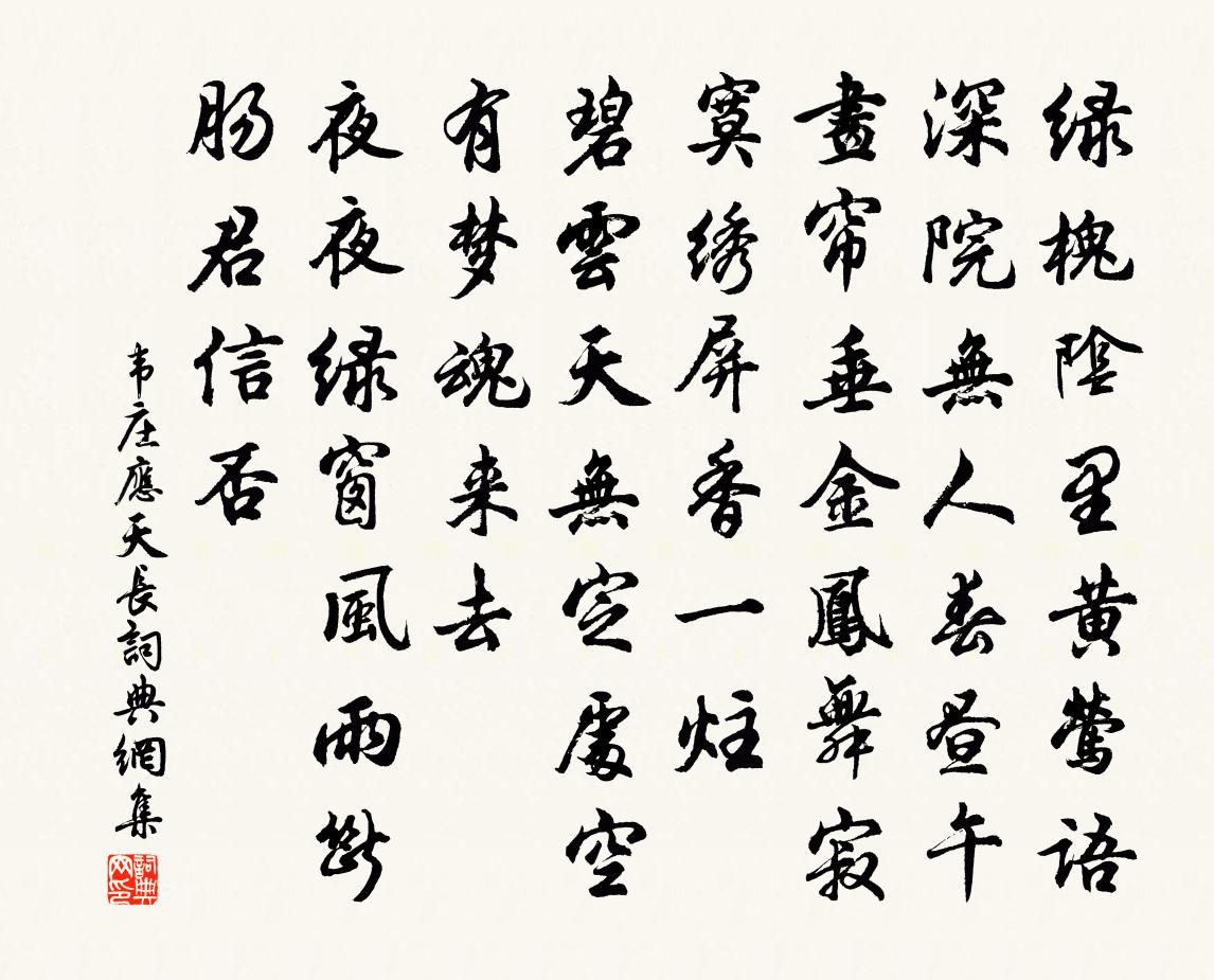 綠槐陰里黃鶯語,深院無人春晝午。畫簾垂,金鳳舞,寂寞繡屏香一炷。
