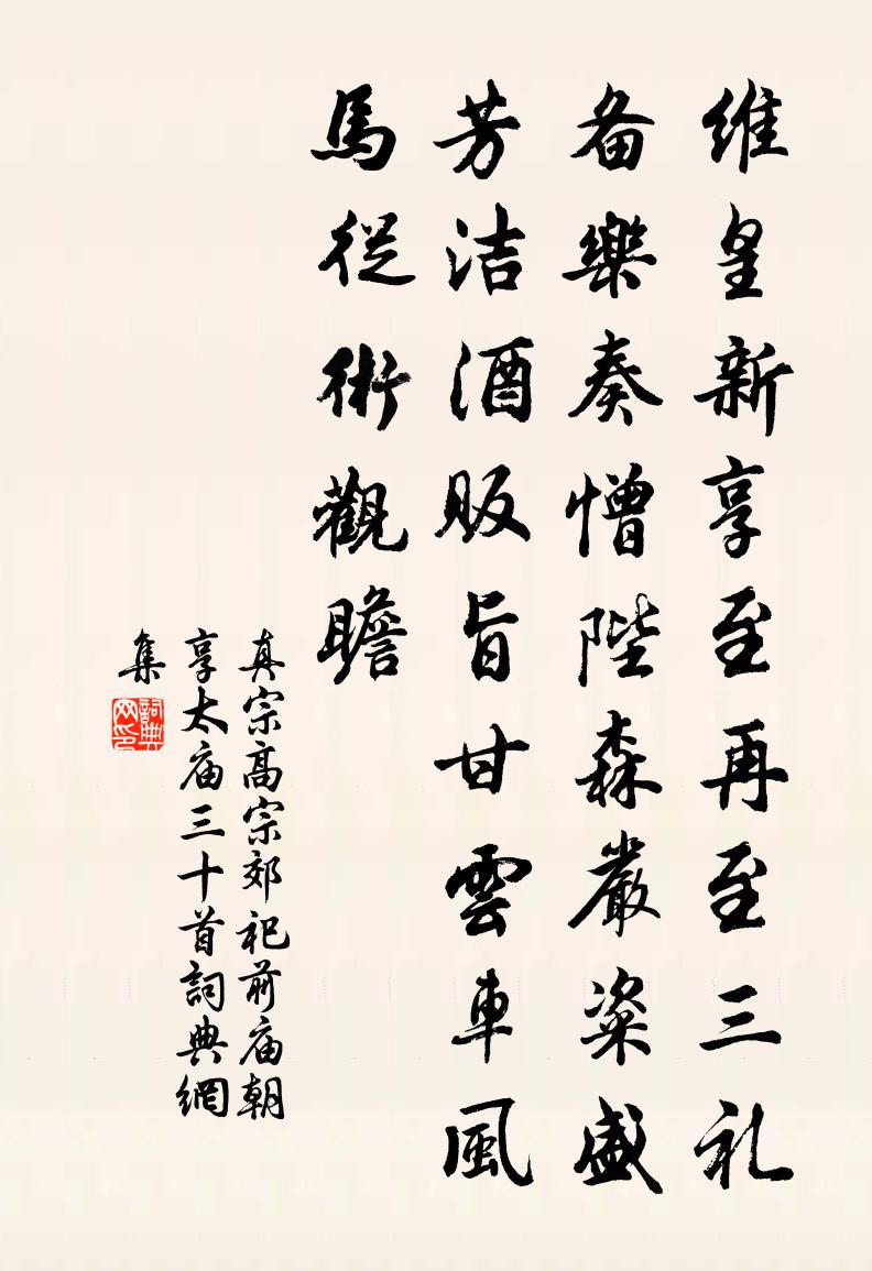 詩詞名句歷史字典書法欣賞書法字典國語詞典說文解字康熙字典古漢語字典標 題 作 者 詩 句 高宗郊祀前廟朝享太廟三十首作者:真宗 朝代:宋代原文維皇新享,至再至三。禮備樂奏,憎陛森嚴。粢盛芳潔,酒販旨甘。雲車風馬,從術觀瞻。詩詞問答問:《高宗郊祀前廟朝享太廟三十首》的作者是誰?答:真宗問:該詩寫於哪個朝代?答:宋代書法欣賞高宗郊祀前廟朝享太廟三十首書法作品詩詞推薦贈鶴林白玉蟾〔宋代〕骨氣秋江月,文章春苑花。片心窮萬法,半語辯千邪。朝罷雞司曉,醉酣蜂報衙。未為三島客,笑指五雲家。騎月踏莎行柴元彪〔宋代〕淺柳平蕪,亂煙疏雨。雁聲叫徹蘆花渚。亭前落葉又西風,斷送離懷無著處。切切歸期,盈盈尺素。斷魂正在西興次韻約之秋懷李處權〔宋代〕粲粲東籬花,如為時節好。冥冥花上蝶,婉孌死亦抱。神仙那可求,姑欲學不老。去去人世間,高步擷瑤草。頌古釋守仁〔宋代〕多方竅得破衣裳,壁倒籬坍沒處藏。更有一般無賴漢,不曾同伴要分贓。繡婦嘆白居易〔唐代〕連枝花樣繡羅襦,本擬新年餉小姑。自覺逢春饒悵望,誰能每日趁功夫。針頭不解愁眉結,線縷難穿淚臉珠。雖憑趙僉見過不值有詩次韻方岳〔宋代〕向來曾管重湖月,五老當門但讀書。見說邦人猶感慨,恨予不學藺相如。上太師公相生辰詩十首佚名〔宋代〕勤勞王室見周公,報賜宜膺曲阜封。兆見維秦符佐命,祥開有魏慶疇庸。申加井賦恩方治,倍衍圭腴賞正濃。一德別蔡十四著作杜甫〔唐代〕賈生慟哭後,寥落無其人。安知蔡夫子,高義邁等倫。獻書謁皇帝,志已清風塵。流涕灑丹極,萬乘為酸辛。天地國風再寄南昌故人兼簡王帥子文戴復古〔宋代〕寄聲黃與宋,書去望書還。別後交情在,年來世路艱。吾思蹈東海,君合隱西山。詩卷勤收拾,留名天地間。夢中和觴字韻黃庭堅〔宋代〕天教兄弟各異方,不使新年對舉觴。作雲作雨手翻覆,得馬失馬心清涼。何處胡椒八百斛,誰家金釵十二行。一邱偈頌一百一十七首釋紹曇〔宋代〕九十日春今欲過,人生能見幾韶光。秦源方被梅花誤,隋岸還看柳絮狂。拄杖子,知不遷義,緘封不密,滿口嚼冰天童玲瓏岩樓鑰〔宋代〕捫蘿歷棧上層峰,寖覺芒鞋踏半空。七竅幾時開渾沌,八窗無處不玲瓏。已欣古洞容身過,直恐丹丘有路通。俯視挽史允叟慈母王氏陳著〔宋代〕彼美蘭儀盎粹溫,誰知肅肅范閨門。生榮夢視金花誥,死瞑培成玉樹根。中一袝嚴家稱禮,終三年制子權恩。我來晚步湖堤歸偶作陸游〔宋代〕酒盡知難折簡呼,出門仍苦要人扶。殘梅委地香誰惜,歸雁穿雲遠欲無。日落牛羊猶被野,農閒畚鍤正開湖。還家人日方岳〔宋代〕柳思花情曉夜春,空山煙山亦精神。閒中富貴陽和月,靜處乾坤自在身。久悟前三吾是客,又經上七日為人。一蓑和近思二首李彌遜〔宋代〕風帆十日轉長山,為送閒身到廣寒。明月峰巒人境外,溪聲一夜響前灘。秋夜寄默然上人姚合〔唐代〕霜月靜幽居,閒吟夢覺初。秋深夜迢遞,年長意蕭疏。海上歸難遂,人間事盡虛。賴師方便語,漸得識真如。句陸游〔宋代〕我老詩不工,非復薛與岑。忘憂堂文同〔宋代〕磴道循城近,垣牆占地幽。軒窗誰指畫,硯席我優遊。不許簿書到,恐為圖史羞。此心元自適,何處欲忘憂。壽皇聖帝挽章三首陳造〔宋代〕受授光翹禹,規摹陋漢唐。皇圖開壽域,國步坦康莊。檢玉方慈范,乘雲忽帝鄉。華夷均孺慕,矯首涕滂浪。名句推薦烈士暮年,壯心不已。曹操《龜雖壽》 湖上春來似畫圖,亂峰圍繞水平鋪。白居易《春題湖上》 人生一世,草長一春。佚名《增廣賢文·上集》 感時花濺淚,恨別鳥驚心。杜甫《春望》 落花狼藉酒闌珊,笙歌醉夢間。李煜《阮郎歸·呈鄭王十二弟》 一種青山秋草里,路人唯拜漢文陵許渾《途經秦始皇墓》 桑柘廢來猶納稅,田園荒後尚征苗。杜荀鶴《山中寡婦 / 時世行》 菩薩妖精,總是一念。若論本來,皆屬無有。吳承恩《西遊記·第十七回》 江上陰雲鎖夢魂,江邊深夜舞劉琨。譚用之《秋宿湘江遇雨》 涼風起天末,君子意如何。杜甫《天末懷李白》