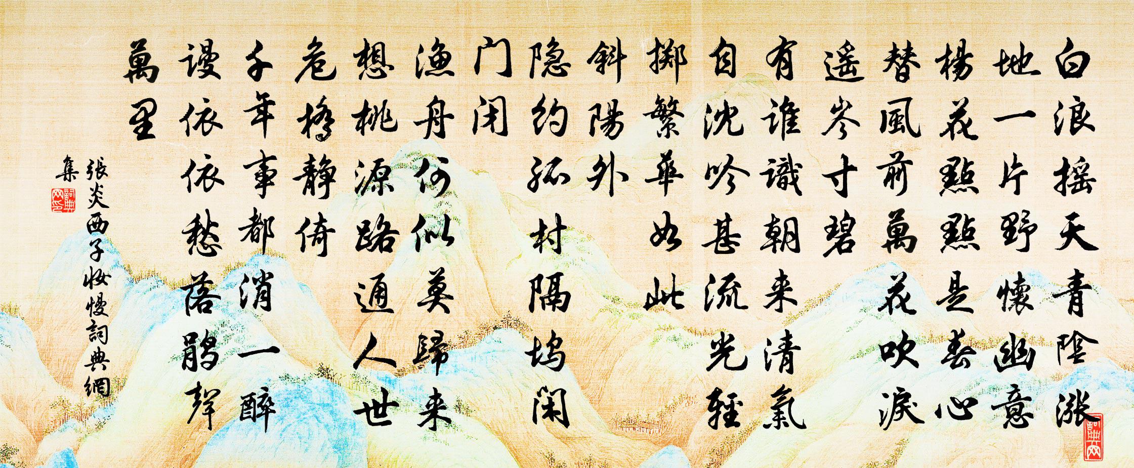 白浪搖天,青陰漲地,一片野懷幽意。楊花點點是春心,替風前、萬花吹淚。