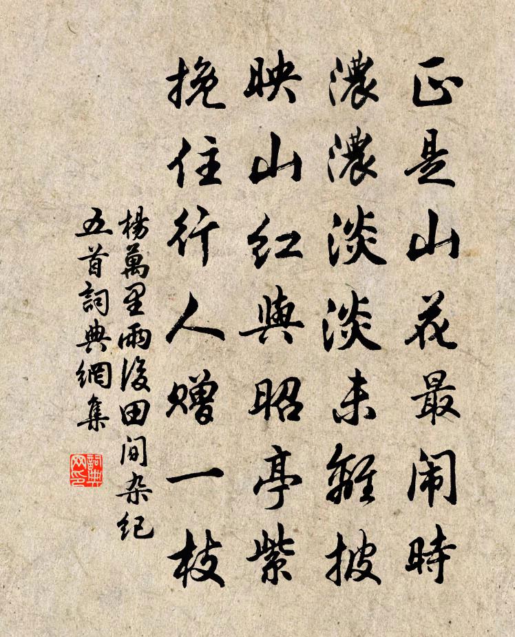 正是山花最鬧時,濃濃淡淡未離披。映山紅與昭亭紫,挽住行人贈一枝。