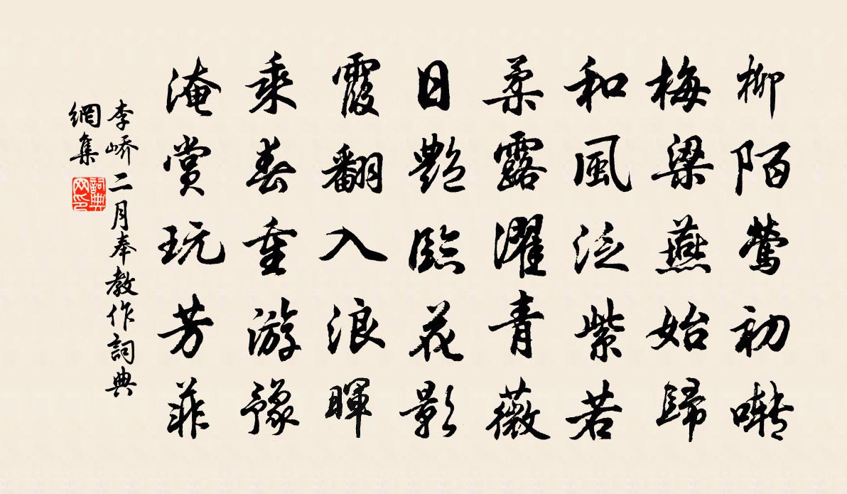詩詞名句歷史字典書法欣賞書法字典國語詞典說文解字康熙字典古漢語字典標 題 作 者 詩 句 二月奉教作作者:李嶠 朝代:唐代二月奉教作原文柳陌鶯初囀,梅梁燕始歸。和風泛紫若,柔露濯青薇。日艷臨花影,霞翻入浪暉。乘春重遊豫,淹賞玩芳菲。詩詞問答問:二月奉教作的作者是誰?答:李嶠問:二月奉教作寫於哪個朝代?答:唐代問:二月奉教作是什麼體裁?答:五律李嶠二月奉教作書法欣賞二月奉教作書法作品注釋全唐詩:卷58_29詩詞推薦鷓鴣天(讀淵明詩不能去手,戲作小詞以送之)辛棄疾〔宋代〕晚歲躬耕不怨貧。支雞斗酒聚比鄰。都無晉宋之間事,自是羲皇以上人。千載後,百遍存。更無一字不清真。若教牡丹孫魴〔唐代〕意態天生異,轉看看轉新。百花休放艷,三月始為春。蝶死難離檻,鶯狂不避人。其如豪貴地,清醒復何因。送純甫仙尉強至〔宋代〕秋晚送歸客,別酒風前酣。一揖不回歸,撇然就征驂。挽裾問客故,舍我何其甘。客言有慈母,三歲淮之南。今將頌古十三首釋德光〔宋代〕趙州勘婆,百發百中。趁得老鼠,打破油瓮。送曹器遠試臨安二首陳傅良〔宋代〕大有扛鼎力,小有挈瓶智。誰當頓八紘,舉以掩眾器。煌煌一百年,此道最宏被。雖躋三事尊,亦起一藝試。或雲偈頌一百零九首釋可湘〔宋代〕三聲鼎蓋普門開,苦海勞生喚不回。九十春光今又光,空飛花片點莓苔。賦得老松老鶴各一首劉克莊〔宋代〕腥腐年來懶啄吞,褵褷惟有頂丹存。長吭偏到清霄唳,病翅猶當霽月翻。雲杪孤飛因避箭,殻中新鷇各乘軒。士衡初晴王安石〔宋代〕一抹明霞黯淡紅,瓦溝已見雪花融。前山末放曉寒散,猶鎖白雲三兩峰。偈頌一百零二首釋慧遠〔宋代〕人天道大梅陽老,佛祖功恢臨濟宗。赤手擘開無字印,冤家何處不相逢。秋夜陸游〔宋代〕高屐枯筇一老翁,燈前自笑發如蓬。泠泠月浸荒庭竹,淅淅風凋古井桐。病思未蘇秋尚淺,醉魂初醒夜方中。故人顏侍郎輓詞樓鑰〔宋代〕贅倅丹丘日,眼看康濟泉。同朝叨獎予,侍坐得周旋。妙畫多傳寶,遺文合細編。典刑今已矣,西望涕潸然。草木雜詠五首楠宋祁〔宋代〕童童挺十尋,一蓋摩空綠。斜月礙枝回,涼煙附葉宿。拙斧無妄加,要經匠者目。奉和江沖陶居二十韻汪炎昶〔宋代〕山鳥戛曙煙,扶桑掛初日。岩棲學仙侶,應試餐霞術。雜詠陸游〔宋代〕家圃菜肥忘肉食,村場酒美勝官壼。終年醉飽無憂責,莫怪愚公老不枯。釣者趙希桐〔宋代〕河豚荻筍春風老,鱸鱠蓴絲秋水寒。多少侯門天樣闊,算來何似釣船寬。和處州韋使君新開南溪朱慶餘〔唐代〕地里光圖讖,樵人共說深。悠然想高躅,坐使變荒岑。疏鑿因殊舊,亭台亦自今。靜容猿暫下,閒與鶴同尋。轉旆絕句九首張耒〔宋代〕曉起山鴉噪作團,西園霜木倚空寒。風高斷雁呼前伴,雨止歸雲赴舊山。日落張耒〔宋代〕日落長雲暗,風悲古岸秋。渚鷗遙避客,野蝶戲隨舟。疏拙資微祿,飄零厭遠遊。若無尊里酒,何物與消愁。游瑞象寺和杜夢麟韻趙希青〔宋代〕招提深僻好山重,濕翠陰森一徑松。夜靜鶴歸清夢繞,日高僧起碧雲封。晴分貝葉翻余照,雨送鐘聲度遠峰。竹舍巫山一段雲 煙寺晚鐘李齊賢〔元代〕楚甸秋霖卷,湘岑暮靄濃。一春容罷一春容。何許日沉鍾。搖月傳空谷,隨風渡遠峰。溪橋有客倚寒筇。一逕入雲名句推薦驚回千里夢,已三更。起來獨自繞階行。岳飛《小重山·昨夜寒蛩不住鳴》 一寸丹心圖報國,兩行清淚為思親。于謙《立春日感懷》 舜其大知也與!舜好問而好察邇言。隱惡而揚善。子思《中庸·第六章》 馬上離魂衣上淚,各自個、供憔悴程垓《酷相思·月掛霜林寒欲墜》 潦倒不通世務,愚頑怕讀文章。曹雪芹《紅樓夢·第三回》 今日重來訪,不見知音人。馮夢龍《警世通言·卷一》 正護月雲輕,嫩冰猶薄。辛棄疾《瑞鶴仙·賦梅》 水遠煙微,一點滄洲白鷺飛歐陽修《採桑子·何人解賞西湖好》 白日麗飛甍,參差皆可見。謝朓《晚登三山還望京邑》 芭蕉不展丁香結, 同向春風各自愁。李商隱《代贈二首》