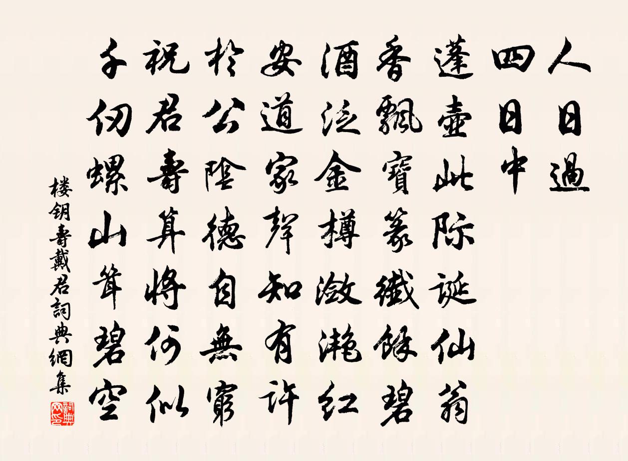 詩詞名句歷史字典書法欣賞書法字典國語詞典說文解字康熙字典古漢語字典標 題 作 者 詩 句 壽戴君作者:樓鑰 朝代:宋代壽戴君原文人日過,四日中,蓬壺此際誕仙翁。香飄寶篆纖余碧,酒泛金樽瀲灩紅。安道家聲知有許,於公陰德自無窮。祝君壽算將何似,千仞螺山聳碧空。詩詞問答問:壽戴君的作者是誰?答:樓鑰問:壽戴君寫於哪個朝代?答:宋代樓鑰壽戴君書法欣賞壽戴君書法作品詩詞推薦聞鵲喜·吳山觀濤周密〔宋代〕天水碧。染就一江秋色。鰲戴雪山龍起蟄。快風吹海立。 數點菸鬟青滴。一杼霞綃紅濕。白鳥明邊帆影直。隔江次韻徐景說贈安象祖高斯得〔宋代〕千仞崗頭孤鳳飛,翰林萬族驚且啼。桐江得樹一棲息,足以慰我饑渴思。飄然徑度爛柯去,再儀天陛來何時。子今次韻韓求仁南台朝請晚過南湖見寄晁補之〔宋代〕浮花浪蕊信東西,何許尋芳去自遲。流景不須驚石火,寸田應已長瓊枝。想君清興聊堪發,遣我憂心久欲夷。便作無骨箬施樞〔宋代〕功成歸去作飛仙,箬下遺丹不浪傳。千載豈皆無遇者,要須種植驗前緣。詠史上孔子陳普〔宋代〕絕糧之慍鮮知德,浮海之喜無取材。子思孟軻緣底事,列之舜禹與顏回。哭?十五章辛棄疾〔宋代〕中堂與曲室,聞汝啼哭聲。汝父與汝母,何處可坐行。九日登浮屠顧禧〔宋代〕浮屠百尺絕花塵,一望霜林暮色勻。嘯傲自然能遠俗,步趨何必不隨人。參軍帽落嘲誰解,□□□殘草作茵。卻羨行飯至湖桑堰東小市陸游〔宋代〕飽食無營是處游,偶然來到埭東頭。芒鞋也似雙鳧快,漁艇真如一葉浮。樵擔行歌沖暝色,酒旗遮路賣新篘。任朱風琴樓鑰〔宋代〕淵明有琴本無弦,白傅偏喜聽 * 。不如空中風度曲,隨風往來聲斷續。非宮非商從君聽,不中律呂無虧成。大如頃過周叔和見故人石應之詩及諸賢和篇大軸擴孫應時〔宋代〕別君二十年,往事飛鳥過。相逢歌慷慨,頗復起衰情。朱顏各華發,此已無可奈。結廬擅青山,吾獨為君賀。示我敬和九鎖步虛詞洞微鎖趙汝湜〔宋代〕大道不容言,有滯還有鞿。返本含元造,竟達無上機。希夷絕視聽,得一眾甫歸。向來寢虛師,至訣殊精微。西江月(十二之十)張伯端〔宋代〕不辨五行四象,那分朱汞鉛銀。修丹火候未曾聞。早便稱呼居隱。不背自思己錯,更將錯路教人。誤他永劫在迷津景定壬戌冬得數椽於城南慈感渡側詢之故老雲韋居安〔宋代〕卜居求靜處,喜傍碧溪灣。隔岸高低柳,當軒遠近山。天開圖畫久,人共水雲閒。聞說賈耘老,舊曾居此間。黃香橙李匡〔宋代〕黃雲冉冉曉蒼蒼,閒倚平湖只自香。較似寒梅雖未至,依然風韻挾風霜。送仙居令葛紹體〔宋代〕邑稱仙之居,山水開畫圖。著我老仙子,少試胸中書。視印秋風前,觀化冬日初。琴調待平弦,發稠借輕梳。豈必句王邁〔宋代〕未知死所先期死,自笑狂生老更狂。過崇勝院莫若沖〔宋代〕首歲融春卜有秋,曉行猶自索貂裘。身閒暫脫微官縛,市隱何如此地幽。一水相望三里近,十年重到片時留。買田宛陵館冬青樹(一作漢陰亭樹)趙嘏〔唐代〕碧樹如煙覆晚波,清秋欲盡客重過。故園亦有如煙樹,鴻雁不來風雨多。次韻奉酬覺之王安石〔宋代〕久知乘傳入西州,雞黍從容本不謀。戶外驚塵尺書至,眼中飛浪片帆收。山林病骨煩三顧,湖海離腸欲萬周。尚有次韻王簽判二首陳造〔宋代〕五鬼侵陵兩鬢蒼,振窮掃白分無妨。酒徒叢里投名懶,詩社中間趁課忙。塵暗鳳笙空自嘆,風驚雁字不能行。向君名句推薦獨自立瑤階,透寒金縷鞋。納蘭性德《菩薩蠻·隔花才歇廉纖雨》 此際閒愁郎不共,月移窗罅春寒重。王士禎《蝶戀花·和漱玉詞》 凡流言、流說、流事、流謀、流譽、流愬,不官而衡至者,君子慎之荀子《荀子·致士》 怠慢忘身,禍災乃作。荀子《荀子·勸學》 春生、夏長、秋收、冬藏,天之正也王詡《鬼谷子·持樞》 風吹古木晴天雨,月照平沙夏夜霜。白居易《江樓夕望招客》 肌膚若冰雪,淖約若處子;不食五穀,吸風飲露;乘雲氣,御飛龍,而游乎四海之外莊子《莊子·內篇·逍遙遊》 寒雨連江夜入吳,平明送客楚山孤。王昌齡《芙蓉樓送辛漸》 見碧水丹山,黃蘆苦竹。宋江《滿江紅·喜遇重陽》 應知早飄落,故逐上春來。何遜《詠早梅 / 揚州法曹梅花盛開》