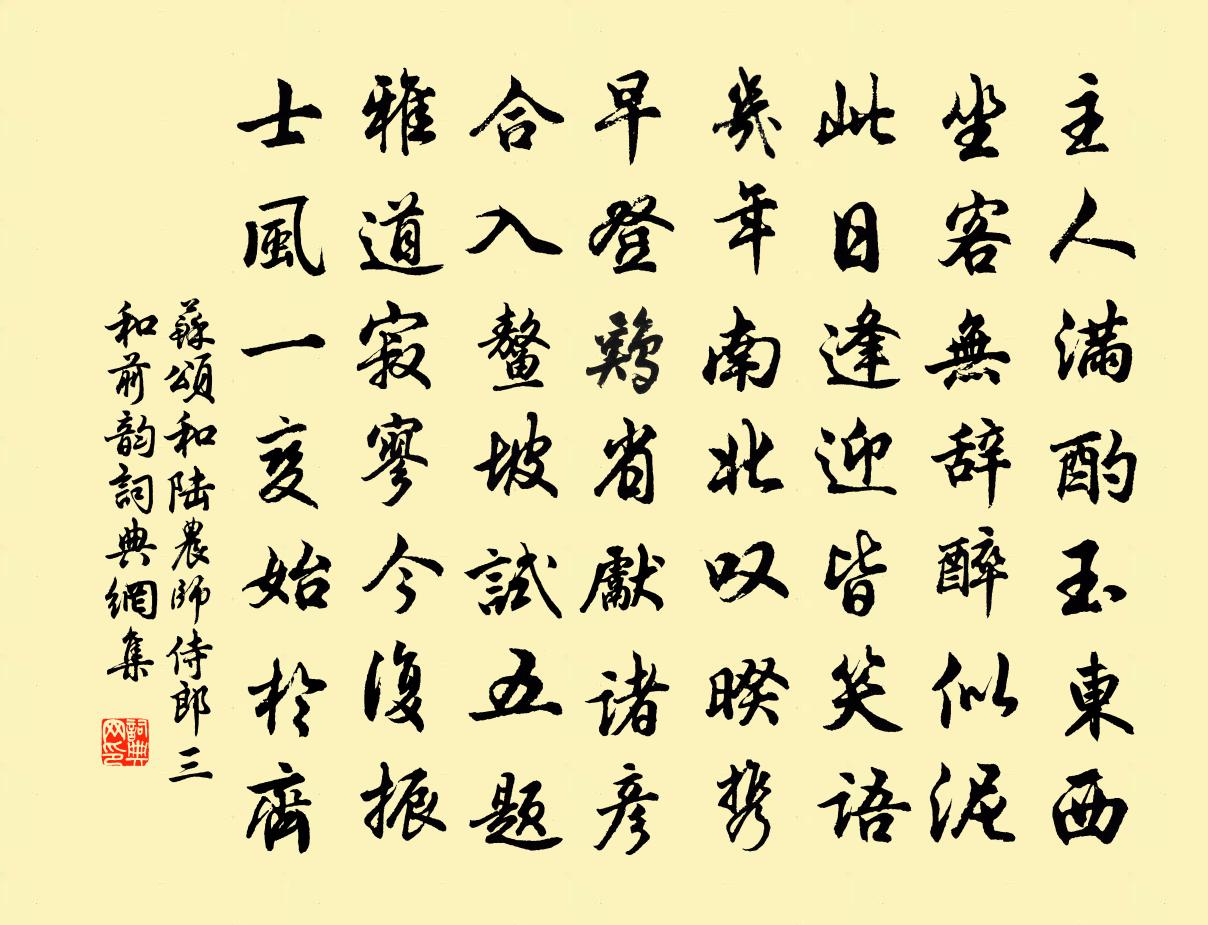 詩詞名句歷史字典書法欣賞書法字典國語詞典說文解字康熙字典古漢語字典標 題 作 者 詩 句 和陸農師侍郎三和前韻作者:蘇頌 朝代:宋代和陸農師侍郎三和前韻原文主人滿酌玉東西,坐客無辭醉似泥。此日逢迎皆笑語,幾年南北嘆暌攜。早登雞省先諸彥,合入鰲坡試五題。雅道寂寥今復振,士風一變始於齊。詩詞問答問:和陸農師侍郎三和前韻的作者是誰?答:蘇頌問:和陸農師侍郎三和前韻寫於哪個朝代?答:宋代蘇頌和陸農師侍郎三和前韻書法欣賞和陸農師侍郎三和前韻書法作品詩詞推薦送別任龍圖史才〔宋代〕江上飛檣高數尋,西風客路思難禁。三千奏議曾經國,十萬兵屯已屬心。官驛疏梅春意足,楚天孤鶩曉煙沉。閩南金鳳鉤晁補之〔宋代〕雪消閒步花畔。試屈指、早春將半。櫻桃枝上最先到,卻恨小梅芳淺。忽驚拂水雙來燕。暗自憶、故人猶遠。一分西台郭印〔宋代〕高台垂四顧,遺冢閱千年。煙樹孤城外,雲山落照邊。崢嶸餘巨石,慘澹接平川。往事誰能說,憑欄一悵然。寄十二侄陸游〔宋代〕庚寅吾入蜀,西過齊安城。雪堂拜老仙,眉宇寒崢嶸。微泉尚如昔,激激琴築聲。龍蛇入筆力,斷石臥縱橫。戊戌夜過借園見主人坐月下吹笛袁枚〔清代〕秋夜訪秋士,先聞水上音。半天涼月色,一笛酒人心。響遏碧雲近,香傳紅藕深。相逢清露下,流影濕衣襟。減字木蘭花 一道士出示杜甫遊春詩卷尹志平〔元代〕遊春暢飲。萬物熙熙花似錦。暢飲遊春。迷了從來多少人。儒流道士。幾個能通天外志。道士儒流。誰肯忘情言下早秋宿崔業居處秦系〔唐代〕從來席不暖,為爾便淹留。雞黍今相會,雲山昔共游。過秦樓(大石)周邦彥〔宋代〕水浴清蟾,葉喧涼吹,巷陌馬聲初斷。閒依露井,笑撲流螢,惹破畫羅輕扇。人靜夜久憑闌,愁不歸眠,立殘更箭六龍駐蹕溫州先公職列西掖扈從至此手澤具載李洪〔宋代〕從龍浴日仰光輝,萬里鯨濤扈六飛。晉國曾聞四蛇宇,周家親睹一戎衣。東巡王氣隨天仗,西狩麟經在紫微。江海送大谷高少府耿湋〔唐代〕縣屬并州北近胡,悠悠此別宦仍孤。應知史筆思循吏,莫料轅門笑魯儒。古塞草青宜牧馬,春城月暗好啼烏。雕殘定風波陳允平〔宋代〕慵拂妝檯懶畫眉。此情惟有落花知。流水悠悠春脈脈,閒倚繡屏,猶自立多時。有約莫教鶯解語,多愁卻妒燕于飛滿庭芳葛立方〔宋代〕一陣輕香,不知來處,元來梅已舒英。出籬含笑,芳意為人傾。細看高標孤韻,誰家有、別得花人。應須是,魏徵迓漕台感書強至〔宋代〕郡縣齊瞻使者麾,馬蹄行處是霜威。前驅寧免為負弩,高謝未能圖拂衣。顧己自知吾道在,折腰甘被俗人議。古來九月九日登長城關石茂華〔明代〕朔風萬里入衣多,嘹嚦寒空一雁過。魚澤灘頭嘶獵馬,省嵬城畔看黃河。香醪欲醉茱萸節,壯志還為出塞歌。騁望次長蘆張舜民〔宋代〕炎荒往返正三年,重過長蘆古寺前。萬里風波行欲盡,停撓南望一潸然。長安道陸游〔宋代〕千夫登登供版築,萬手丁丁供斲木。歌樓舞榭高入雲,復幕重簾晝燒燭。中使傳宣騎飛鞚,達官侯見車擊轂。豈惟題王叔顏畫趙蕃〔宋代〕天公知君有此畫,要遣題詩與當價。故令欲雪還弄晴,盡日神機不容暇。毫端自出右丞維,孫郎一見欣得之。寫真心重答身白居易〔唐代〕因我疏慵休罷早,遣君安樂歲時多。世間老苦人何限,不放君閒奈我何。元祐六年六月自杭州召還汶公館我於東堂閱舊蘇軾〔宋代〕半熟黃粱日未斜,玉堂陰合手栽花。卻尋三十年前味,未飯鍾時已飯茶。夢覺還驚屟響廊,故人來炷影前香。鬢髮十離詩。鏡離台薛濤〔唐代〕鑄瀉黃金鏡始開,初生三五月裴回。為遭無限塵蒙蔽,不得華堂上玉台。名句推薦曾經滄海難為水,除卻巫山不是雲。元稹《離思五首·其四》 是親不是親,非親卻是親。佚名《增廣賢文·上集》 蓬鬢哀吟長城下,不堪秋氣入金瘡。盧綸《逢病軍人》 背若泰山,翼若垂天之雲。莊周《逍遙遊(節選)》 眾鳥高飛盡,孤雲獨去閒。李白《獨坐敬亭山》 錦瑟華年誰與度?賀鑄《青玉案·凌波不過橫塘路》 劍花寒,夜坐歸心壯,又是他鄉。張可久《滿庭芳·客中九日》 羅袂從風輕舉,愁殺採蓮女!毛文錫《應天長·平江波暖鴛鴦語》 斜風細雨不須歸。蘇軾《浣溪沙·漁父》 影孤憐夜永。永夜憐孤影。蘇軾《菩薩蠻·回文秋閨怨》
