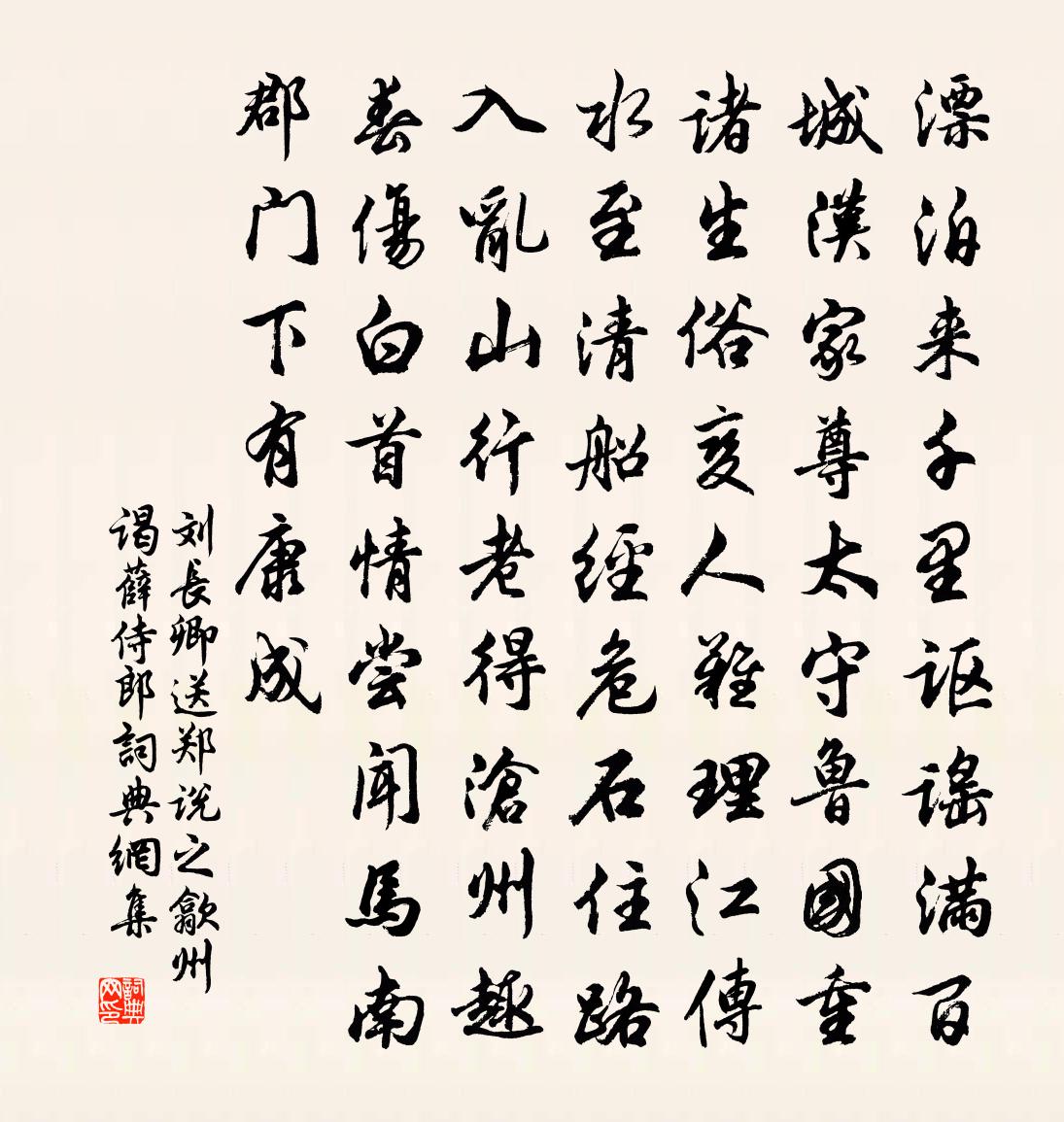 劉長卿送鄭說之歙州謁薛侍郎書法欣賞
