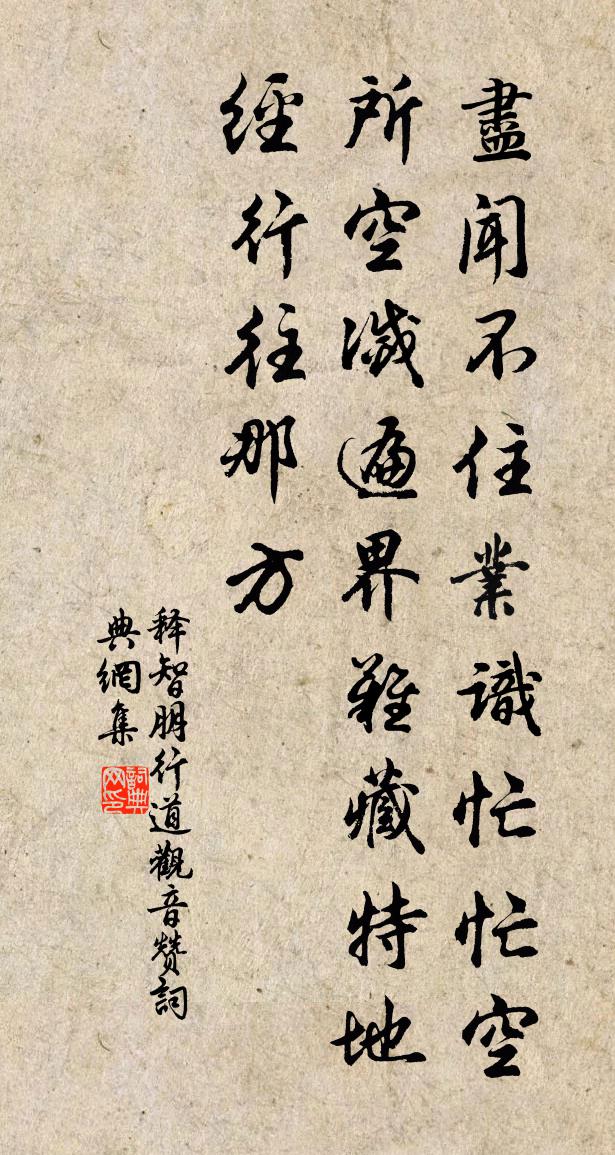 詩詞名句歷史字典書法欣賞書法字典國語詞典說文解字康熙字典古漢語字典標 題 作 者 詩 句 行道觀音贊作者:釋智朋 朝代:宋代行道觀音贊原文盡聞不住,業識忙忙。空所空滅,遍界難藏。特地經行往那方。詩詞問答問:行道觀音贊的作者是誰?答:釋智朋問:行道觀音贊寫於哪個朝代?答:宋代釋智朋行道觀音贊書法欣賞行道觀音贊書法作品詩詞推薦端午帖子太上皇后閣周必大〔宋代〕水晶宮闕淨無塵,姑射神仙綽有真。寶錄自應表萬善,冰台安用結雙人。龜山亦好軒梁泰來〔宋代〕人在遠堂山下居,家有遠堂堂上書。階苔簾草意自如,有書可讀山可廬。人於富貴不肯足,我於貧賤樂有餘。相逢謁曹娥廟釋及浦〔宋代〕輟棹江頭謁孝娥,斷碑枯柏尚嵯峨。生為女子即如此,身是男兒又若何。千古美名昭日月,一軀靈骨葬藤蘿。沈魂梅開絕晚有感陸游〔宋代〕年年踏雪探梅開,二月今年始見梅。從此逢春心轉嬾,小詩不擬覓花栽。頌一百則釋重顯〔宋代〕卻請和尚道,虎頭生角出荒草。十洲春盡花凋殘,珊瑚樹林日杲杲。齊天樂陸游〔宋代〕角殘鍾晚關山路,行人乍依孤店。塞月征塵,鞭絲帽影,常把流年虛占。藏鴉柳暗。嘆輕負鶯花,謾勞書劍。事往送林寬夫父子劉克莊〔宋代〕家學有淵源,傳之於艾軒。三珠生老蚌,百鳥避雛鵷。同進誰爭賀,諸生定閉蕃。吾窮無可贐,握手贈君言。寄山僧(時年五十)白居易〔唐代〕眼看過半百,早晚掃岩扉。白首誰留住,青山自不歸。百千萬劫障,四十九年非。會擬抽身去,當風抖擻衣。到家宋伯仁〔宋代〕塵壓征裘滿,今朝喜到家。牽衣兒欲淚,滿地菊初花。瓦甑添蒸芋,銅鐺旋煮茶。安貧儒者事,何必戀天涯。句趙崇嶓〔宋代〕漢月通江白,秦雲入塞黃。即事戲作五言晁說之〔宋代〕何處寂寥好,山城太守家。輕觜木竹筍,大裹白硃砂。君與旱蓮比,實非火候賒。一官還此是,百務莫淫哇。右晚春田園雜興十二絕范成大〔宋代〕書出耘田夜績麻,村莊兒女各當家。童孫未解供耕織,也傍桑陰學種瓜。小婦吟盧仝〔唐代〕小婦欲入門,隈門勻紅妝。大婦出門迎,正頓羅衣裳。門邊兩相見,笑樂不可當。夫子於傍聊斷腸,小婦哆上高堂對酒陸游〔宋代〕識字記姓名,擊劍一人敵,孫吳相斫書,了解亦何益。不如黃金罍,澰瀲春波碧,欣然對之笑,未飲愁已釋。白頭頌石頭和尚草庵歌釋印肅〔宋代〕衲被蒙頭萬事休,九年面壁為迷流。神光斷擘何希有,薩埵投崖飼虎求。越女詞其四李白〔唐代〕東陽素足女。會稽素舸郎。相看月未墮。白地斷肝腸。摸魚兒施樞〔宋代〕柳蒙茸、暗凌波路。煙飛慘澹平楚。七香車駐猊環掩,遙認翠華雲母。芳景暮。鴛甃悄、銖衣來按飛瓊舞。淒涼洛句賈仲穎〔宋代〕燈花寒影里,詩句雨聲中。盡開窗戶容秋月,遍倚闌乾看晚山。夏日登鶴岩偶成戴叔倫〔唐代〕天風吹我上層岡,露灑長松六月涼。願借老僧雙白鶴,碧雲深處共翱翔。秋日懷王專魏野〔宋代〕菊花原上立,村落雨睛初。晚吹清群物,秋光澹太虛。空看新雁字,不得故人書。猶賴華亭鶴,林閒伴索居。名句推薦蜃散雲收破樓閣,虹殘水照斷橋粱。白居易《江樓晚眺景物鮮奇吟玩成篇寄水部張員外》 不辭山路遠,踏雪也相過。張九齡《答陸澧》 翠華想像空山里,玉殿虛無野寺中。杜甫《詠懷古蹟五首·其四》 憐君片雲思,一棹去瀟湘。杜牧《送薛種游湖南》 遺廟丹青落,空山草木長。杜甫《武侯廟》 荷葉五寸荷花嬌,貼波不礙畫船搖;石濤《荷花》 雪花全似梅花萼。細看不是雪無香,天風吹得香零落。王旭《踏莎行·雪中看梅花》 露濕晴花春殿香,月明歌吹在昭陽。李益《宮怨》 古者聖人為猛禽狡獸暴人害民,於是教民以兵行。墨子《墨子·21章 節用(中)》 人傷則離散,農傷則國貧。李大師、李延壽《南史·列傳·卷三十九》