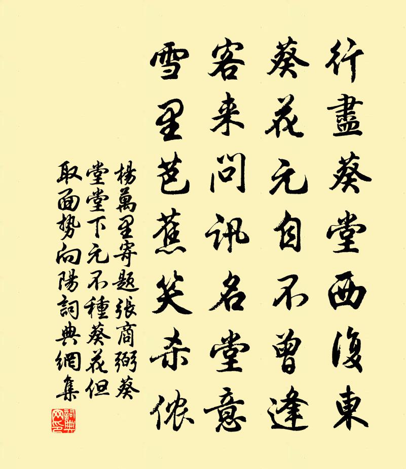 行盡葵堂西復東,葵花元自不曾逢。客來問訊名堂意,雪裡芭蕉笑殺儂。