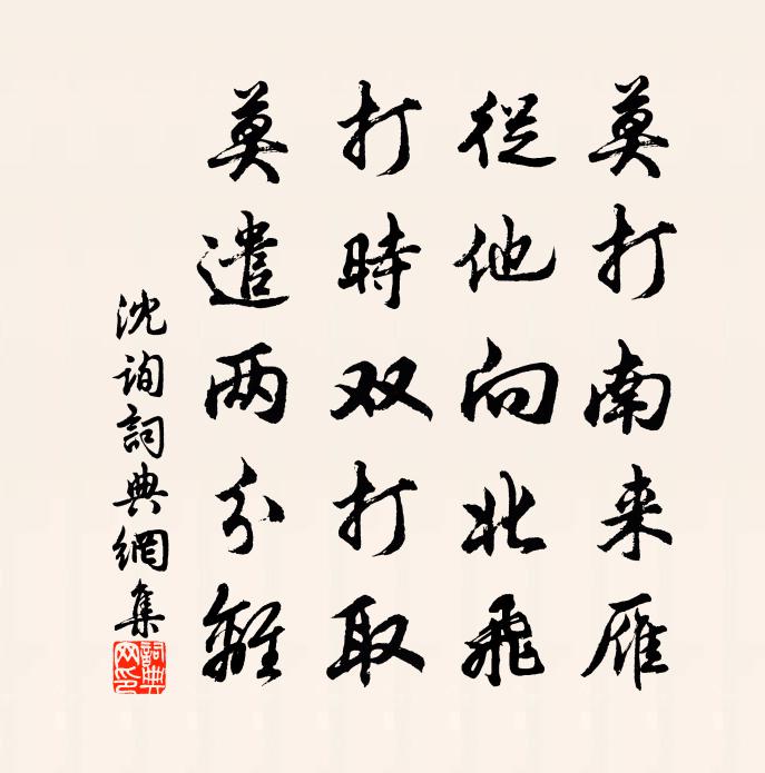 詩詞名句歷史字典書法欣賞書法字典國語詞典說文解字康熙字典古漢語字典標 題 作 者 詩 句 沈詢作者:佚名 朝代:唐代沈詢原文莫打南來雁,從他向北飛。打時雙打取,莫遣兩分離。詩詞問答問:沈詢的作者是誰?答:佚名問:沈詢寫於哪個朝代?答:唐代問:佚名的名句有哪些?答:佚名名句大全佚名沈詢書法欣賞沈詢書法作品詩詞推薦餞常熟宰万俟紹之〔宋代〕籠鶴歸來到北關,玉墀春里趣朝班。九重定問琴川事,為奏通川一渡閒。崇勝寺夏竦〔宋代〕山當廬阜五峰邊,地占侯谿好習禪。杳藹峰巒雲蔽日,參差樓殿瓦生煙。僧房宿鳥栖簾外,客館鳴泉過枕前。但可此君室方蒙仲〔宋代〕清神造物慳,數竿自超俗。苦覓渭濱封,萬此豈有足。贈風鑒蘇壽元〔宋代〕空有奇胸貯石渠,功名不許老頭豐。憑君細閱寒窗下,還有它年房杜無。清明二絕洪咨夔〔宋代〕梨花匼匝不見葉,柳穟玲瓏初欲綿。寒食清明等閒過,日長翻覆壓書眠。歸航史彌寧〔宋代〕春岸移舟雪半消,長年忍冷轉塘坳。數聲雅軋催歸櫓,屬玉驚飛上柳梢。邯鄲郡樓晚望賀鑄〔宋代〕新涼瀉軒檻,草木帶秋聲。闊水倒嵐影,洗磨刀戟明。百蟲暮吟動,一鳥歸思輕。晚律駭徂景,羈懷念勞生。去國詠瑟師沈寵甫〔宋代〕宇宙浩浩誰詩鳴,遺響闃寂如英莖。更無高談細論者,唐末婀娜江西清。乙卯冬楊廷秀訪平園即事二首周必大〔宋代〕梅得詩翁八月歌,至今萬朵壓枝多。明年結子應無數,金鼎調時味正和。題澤翁小巷王柏〔宋代〕綠陰最深處,樓閣出林杪。江闊野橋間,目斷行人少。同襲美游北禪院(院即故司勛陸郎中舊宅)陸龜蒙〔唐代〕連延花蔓映風廊,岸幘披襟到竹房。居士只今開梵處,先生曾是草玄堂。清尊林下看香印,遠岫窗中掛缽囊。今日謝通講師五偈釋正覺〔宋代〕五月人間膏火煎,清風麈對有夤緣。點頭頑石能明證,藉口虛空解講玄。隨類佛身分百億,出塵紅卷等三千。未閒好事近(元夕立春)辛棄疾〔宋代〕彩勝斗華燈,平地東風吹卻。喚取雪中明月,伴使君行樂。紅旗鐵馬響春冰,老去此情薄。惟有前村梅在,倩一枝南軒曾極〔宋代〕劍磨驢膊倦征途,三歲南軒客寓居。建業水甘供日飲,波間亦有武昌魚。為吳司戶作瓮天項安世〔宋代〕筆端隨意出洪纖,康俗山前自在禪。已把屋來嘲作瓮,更將詩去諂為天。蛆浮蠛舞無多子,鵾運鵬游即大千。敢向贈霆伯侄姚勉〔宋代〕靈源聚英氣,融作雲霞精。霆伯挹其秀,胸府懷光晶。誦書過萬卷,落筆超群英。文章有餘力,武詩吟性情。短章答李公蘊李復〔宋代〕臘前曾約走新春,春到無端絕塞行。戍卒催完燈下甲,急烽連人雪中城。萬夫擾擾爭分餉,一飯匆匆豈暇羹。自嘆水調歌頭(辛丑送鬍子安赴遠安)李曾伯〔宋代〕風卷江湖浪,舉足是羊腸。峽山知在何處,榛莽更淒涼。不為淵明五斗,直為班超萬里,雅志未能忘。耿耿富襟抱嵩山天門歌宋之問〔唐代〕登天門兮坐盤石之嶙峋,前漎漎兮未半,下漠漠兮無垠。紛窈窕兮岩倚披以鵬翅,洞膠葛兮峰稜層以龍鱗。松移岫偈二首釋得升〔宋代〕久雨不晴,一箭兩垛。鼻孔一時沒爛,且道是誰之過。賴得老趙州,出來為你勘破。日輪天子現扶桑,誰管西來閒名句推薦黑雲壓城城欲摧,甲光向日金鱗開。李賀《雁門太守行》 故國神遊,多情應笑我,早生華髮。蘇軾《念奴嬌·赤壁懷古》 天地之性,人為貴。 人之行,莫大於孝。孔子及其弟子《孝經·聖治》 教化之行,興於學校。脫脫《金史·列傳·卷三十七》 口惠而實不至,怨菑及其身。戴聖《禮記·表記》 彼說長,此說短。不關己,莫閒管。李毓秀《弟子規·信》 頭醋不釅徹底薄。施耐庵《水滸傳·第五十一回》 心生,種種魔生;心滅,種種魔滅。吳承恩《西遊記·第十三回》 青林翠竹,四時俱備。陶弘景《答謝中書書》 秋叢繞舍似陶家,遍繞籬邊日漸斜。元稹《菊花》