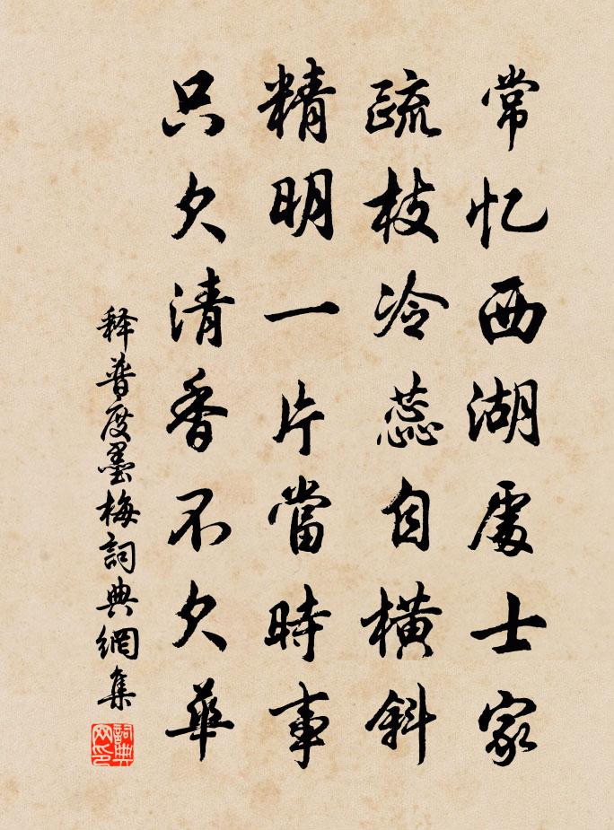 詩詞名句歷史字典書法欣賞書法字典國語詞典說文解字康熙字典古漢語字典標 題 作 者 詩 句 墨梅作者:釋普度 朝代:宋代墨梅原文常憶西湖處士家,疏枝冷蕊自橫斜。精明一片當時事,只欠清香不欠華。詩詞問答問:墨梅的作者是誰?答:釋普度問:墨梅寫於哪個朝代?答:宋代釋普度墨梅書法欣賞墨梅書法作品詩詞推薦少年游·離多最是晏幾道〔宋代〕離多最是,東西流水,終解兩相逢。淺情終似,行雲無定,猶到夢魂中。可憐人意,薄於雲水,佳會更難重。細想和宗司法與鄭府判韻杜范〔宋代〕候蟲嘖嘖泣秋清,節物還令壯士驚。人在九原誰可作,月橫千里自增明。詩壇尚幸從盟約,句法於今識老成。自愧火後寄詮老木待問〔宋代〕攙槍墮九宵,列缺亂阡陌。西城若黔廬,東墟已堆甓。幽棲僅容膝,隱市意自適。天公不我相,同此編戶厄。平生贈醫士清溪居士丘通甫方回〔宋代〕乃翁挾藝專淮鄉,使死者生危不亡。遠如扁鵲師長桑,又如近世龐安常。所交者誰龍虎驤,真李臨淮郭汾陽。軍門夜句三首蘇泂〔宋代〕四更過盡五更來,看見參旗卷復開。澄澈定非人世酒,就渠斗柄酌三杯。登臥龍山吳芾〔宋代〕巋然千古臥龍山,節物年來□舊觀。猶有樓台出天半,正令星斗逼人寒。春風偶種花千樹,夏日仍栽竹萬竿。自愧記夢葛起耕〔宋代〕綺寮縹緲敞虛明,鵠峙鸞停護碧城。珠蕊一枝春共瘦,玉環雙佩月同明。曾題洛賦緘新意,卻拊湘弦寄遠還必須。奉送呂表叔赴江陰蘇泂〔宋代〕春風乍入澄江郡,最愛君山一點青。柳外化民安若子,鷗邊為政出於經。每慚舊守勤招喚,況識今侯更典刑。此去將之滬南馮時行〔宋代〕幾年落魄劍南州,重入蠻鄉覓舊遊。十驛出城難夙駕,一生浪跡愧虛舟。家留異縣懷親老,夢繞滄洲恐鬢秋。白馬渡河北王褒〔南北朝〕秋風吹木葉,還似洞庭波。常山臨代郡,亭障繞黃河。心悲異方樂,腸斷隴頭歌。薄暮臨征馬,失道北山阿。琴歌先秦無名〔先秦〕百里奚。五羊皮。憶別時。烹伏雌。炊扊扅。今日富貴忘我為。導引佚名〔宋代〕來嬪初載,令德冠層城。柔范藹徽聲。熊羆夢應芳蘭郁,佳氣擁雕楹。珠宮縹緲泛蓬瀛。脫屣世緣輕。空餘寶冊光和呂巽伯韻徐僑〔宋代〕何事貪乘逆水船,此心長向白雲邊。琴書篷底一樽酒,花柳江頭三月天。逸興只將詩句遣,清襟那就俗塵牽。簿書菩薩蠻周紫芝〔宋代〕翠蛾懶畫妝痕淺。香肌得酒花柔軟。粉汗濕吳綾。玉釵敲枕稜。鬢絲雲卸膩。羅帶還重系。含笑出房櫳。羞隨臉上和王衢見寄魏野〔宋代〕久向東郊住,漸同麋鹿情。游山岐路熟,見客禮儀生。藜杖新仍重,荷衣破轉輕。身猶為外物,詩亦是虛名。自愛句李邴〔宋代〕深居絕送迎。偈二首釋本〔宋代〕清明已過十餘日,華雨闌珊方寸深。春色惱人眠不得,黃鸝飛過綠楊陰。卜運算元馬鈺〔元代〕人識山侗字。誰曉山侗意。大貌山侗人倚山,故作山侗謎。財色山侗棄。玄妙山侗秘。一日侗樂道成,永占山侗位奉和喜雪應制徐安貞〔唐代〕兩宮齋祭近登臨,雨雪紛紛天晝陰。只為經寒無瑞色,頓教正月滿春林。蓬萊北上旌門暗,花萼南歸馬跡深。自有送赴省諸友方善夫昆仲劉克莊〔宋代〕君家科級每蟬聯,何況高才更妙年,肄業機雲同屋住,論文坡潁對床眠。一雙璧有連城價,九轉丹能拔宅仙。名句推薦躬自厚而薄責於人,則遠怨矣。孔子弟子《論語·衛靈公篇》 歸雁橫秋,倦客思家。張可久《折桂令·九日》 楊柳青青著地垂,楊花漫漫攪天飛。佚名《送別詩》 颯颯東風細雨來,芙蓉塘外有輕雷。李商隱《無題·颯颯東風細雨來》 不管三七二十一馮夢龍《醒世恆言·卷一》 鏡水夜來秋月,如雪。溫庭筠《荷葉杯·鏡水夜來秋月》 甚時躍馬歸來,認得迎門輕笑。時彥《青門飲·寄寵人》 前哲以善人爲寶,不以珠玉爲寶李大師、李延壽《南史·列傳·卷十三》 十年愁眼淚巴巴。今日思家。明日思家。汪元量《一剪梅·懷舊》 並刀如水,吳鹽勝雪,縴手破新橙。周邦彥《少年游·並刀如水》