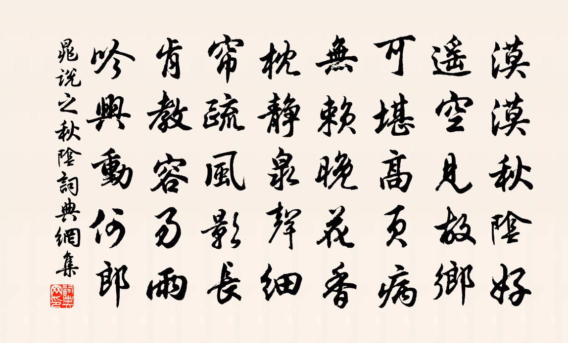 詩詞名句歷史字典書法欣賞書法字典國語詞典說文解字康熙字典古漢語字典標 題 作 者 詩 句 秋陰作者:晁說之 朝代:宋代秋陰原文漠漠秋陰好,遙空見故鄉。可堪高頁病,無賴晚花香。枕靜泉聲細,簾疏風影長。肯教容易雨,吟興動何郎。詩詞問答問:秋陰的作者是誰?答:晁說之問:秋陰寫於哪個朝代?答:宋代晁說之秋陰書法欣賞秋陰書法作品詩詞推薦蝎虎蘇軾〔宋代〕跂跂有足蛇,脈脈無角龍。為虎君勿笑,食盡蠆尾蟲。觀明道先生桃花菊詩作晁說之〔宋代〕嘆息天上暫醉時,重陽物色艷陽姿。便生春思兼秋緒,當日董生宜一窺。殘春夜雨宋庠〔宋代〕春色無情老,宵雲有恨低。輕寒借鴻駛,早暝入烏啼。晦燭風生幔,漂花溜漲溪。滴階兼被草,聊此況淒迷。巡視河防置酒晚歸作二首宋祁〔宋代〕夾石雙堤轉,逍遙千騎留。川昏多晝霧,水落足寒洲。岸石危相倚,橋澌暮不流。風煙非渭曲,誰有釣璜鉤。奉贈鮮于京兆二十韻杜甫〔唐代〕王國稱多士,賢良復幾人?異才應間出,爽氣必殊倫。始見張京兆,宜居漢近臣。驊騮開道路,鵰鶚離風塵。侯伯大禮慶成宋祁〔宋代〕上帝懷明德,圓壇展盛儀。南城七里路,三歲一郊時。豫動森華蓋,乾行儷絳螭。山河對旒冕,辰象倚旍旗。樂祏淳化鄉飲酒三十三章佚名〔宋代〕森森喬木,美蔓縈之。我有旨酒,嘉賓式燕宜之。劉生文同〔宋代〕歷古推任俠,彼劉生者何。提槌擊朱亥,引劍刺荊軻。飲肆扶頭出,歌樓掉臂過。無人繼義勇,關隴氣消磨。東坡姜特立〔宋代〕文章聲價有東坡,歲晚親逢春夢婆。一聞千悟無餘事,背負大瓢還唱歌。惜哉龍眠不好事,不為寫東坡海外郊行圖吊老松艾性夫〔宋代〕合梁清廟棟明堂,棄擲終身古道傍。大節不容秦點污,孤根能與宋存亡。山空百丈龍蛇影,泉沁千年琥珀香。韋偃詠史上劉向陳普〔宋代〕 * 明光奏五侯,帝鄉寥隔在溫柔。甘泉太乙重招起,聊答青藜照白苹。觀音贊二首釋祖欽〔宋代〕鰲翔海運,地迥天空。一瓶淨水,五濁惡風。安得眾生界具證圓通。已亥雜詩 305龔自珍〔清代〕欲從太史窺春秋,勿向有字句虛求。抱微言者太史氏,大義顯顯則予休。郊廟歌辭享太廟樂章惟新舞劉晏〔唐代〕漢祚惟永,神功中興。風驅氛祲,天覆黎蒸。三光再朗,庶績其凝。重熙累洽,景命是膺。題畫九首唐寅〔明代〕松間草閣依岩開,閣下幽花繞露台。誰叩荊扉驚鶴夢,月明千里故人來。夜雪白居易〔唐代〕已訝衾枕冷,復見窗戶明。夜深知雪重,時聞折竹聲。茶厲文翁〔宋代〕海濱魚鹽勝耕稼,嘗呼父老采丁寧。江鄉魚茗尤逐末,為分利害別重輕。拔茶種桑何苦口,崇陽因得良吏名。補種牡丹二絕蘇轍〔宋代〕野草凡花著地生,洛陽千葉種難成。姚黃性似天人潔,糞壤埋根氣不平。題池州貴池亭杜牧〔唐代〕勢比凌歊宋武台,分明百里遠帆開。蜀江雪浪西江滿,強半春寒去卻來。和程閣學送小春茶韻四首袁說友〔宋代〕七碗由來厭八珍,猶堪代酒亦生春。箇中風味須知趣,慚愧劉公獨倚新。名句推薦合軍聚眾, 務在激氣孫臏《孫臏兵法·延氣》 玉骨那愁瘴霧,冰姿自有仙風。蘇軾《西江月·梅花》 離人心上秋。吳文英《唐多令·惜別》 世間無限丹青手,一片傷心畫不成。高蟾《金陵晚望》 長風蕭蕭渡水來,歸雁連連映天沒。盧思道《從軍行》 啼號升斗抵千金,凍雀飢鴉共一音。范成大《雪中聞牆外鬻魚菜者求售之聲甚苦有感》 俯皇都之宏麗兮,瞰雲霞之浮動。曹植《銅雀台賦》 倚遍闌乾,只是無情緒。李清照《點絳唇·閨思》 自笑好山如好色,只今懷樹更懷人。閒愁閒恨一番新。辛棄疾《浣溪沙·偕叔高子似宿山寺戲作》 庭樹不知人去盡,春來還發舊時花。岑參《山房春事二首》
