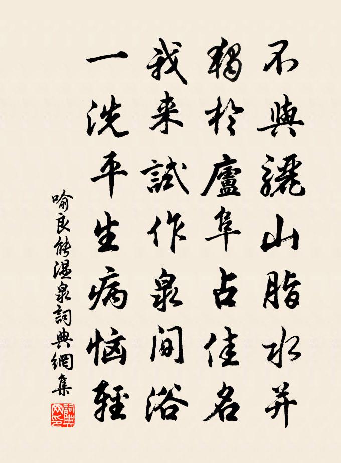 詩詞名句歷史字典書法欣賞書法字典國語詞典說文解字康熙字典古漢語字典標 題 作 者 詩 句 溫泉作者:喻良能 朝代:宋代溫泉原文不與驪山脂水並,獨於廬阜占佳名。我來試作泉間浴,一洗平生病惱輕。詩詞問答問:溫泉的作者是誰?答:喻良能問:溫泉寫於哪個朝代?答:宋代喻良能溫泉書法欣賞溫泉書法作品詩詞推薦次韻蕃叟弟月下有感陳傅良〔宋代〕平原接翠微,修竹圍綠淨。乃於此中間,更以皓月映。佳人笑隱几,萬物獨我正。幸哉吾有母,侍飲得瓶罄。襄州道間驟寒李曾伯〔宋代〕涉盡江湖道,嗟嗟寸步難。風敲蘆葉響,雨作菊花寒。市酒無嫌薄,征衣正怯單。家山在何許,回首路漫漫。秋日旅舍別司空文明李端〔唐代〕涼風颯窮巷,秋思滿高雲。吏隱俱不就,此心仍別君。素懷宗淡泊,羈旅念功勳。轉憶西林寺,江聲月下聞。句方士繇〔宋代〕流連兒女意,香滿曝衣樓。次大人韻二首李流謙〔宋代〕六品官資叵厭卑,高懷自不入時宜。卻尋清渭歸垂釣,猶向鈞天憶射麋。長日只憑詩遣悶,暮年全藉酒扶衰。早將觀別者王維〔唐代〕青青楊柳陌,陌上別離人。愛子游燕趙,高堂有老親。不行無可養,行去百憂新。切切委兄弟,依依向四鄰。都門送夫赴襄陽盧氏〔宋代〕羨君家世舊纓簪,百戰常懷報主心。草檄有才追記室,築台無路繼淮陰。射鵰紫塞秋雲黑,走馬黃河夜雪深。白首次韻陳屯田途中所寄李覯〔宋代〕封豕長蛇戰嶺南,何人肉食不懷慙。只今唯有高眠好,風弄鬆聲水濺庵。善慶堂詩楊維楨〔元代〕鐵江泥泥,其流長深。奕奕新堂,有書有琴。有橋在高,有梓於陰。君子慶只,少伊氏之覃。宜爾家屋,和樂且湛鴛鴦湖棹歌 之三十一朱彝尊〔清代〕長水風荷葉葉香,斜塘慣宿野鴛鴦。郎舟愛向斜塘去,妾意終憐長水長。為簡公約賦素琴堂郟僑〔宋代〕素琴之堂虛且清,素琴之韻淪杳冥。神閒意定默自鳴,宮商不動誰與聽。堂中道人骨不俗,貌龐形端顏瑩玉。我嘗答李翊書韓愈〔唐代〕六月二十六日,愈白。李生足下:生之書辭甚高,而其問何下而恭也。能如是,誰不欲告生以其道?道德之歸也有家園即事十三首鄭清之〔宋代〕綠陰樂靜未號蟬,藕葉扶嬌泛水眠。輸殺蜂屯深閉壁,峙糧宿飽蜜中邊。歷陽壯士勤將軍名思齊歌李白〔唐代〕太古歷陽郡,化為洪川在。江山猶郁盤,龍虎秘光彩。蓄泄數千載,風云何霮薱。特生勤將軍,神力百夫倍。徐大宰生日李若水〔宋代〕潭潭相府開日邊,瑞光錯落勝非煙。珊鞭皂帽千騎聯,袖中各有崧高篇。惟公妙年少比肩,筆底詞藻爭春妍。千佛和宋永兄春日閒居黃公度〔宋代〕負郭濃春事,高齋辟曉關。晴雲浮越嶠,芳草接荊蠻。祿薄難長飽,才微分久閒。年華兵甲里,吁駭鏡中顏。玉葉重黃晁端禮〔宋代〕玉纖初拈梅花蕊。早憶著、上元天氣。重尋舊曲聲韻,收拾放燈歡計。況人生、百歲能幾。任東風、笑我雙鬢里。和宋次道宴日不赴有懷蔡襄〔宋代〕殿中佳氣帶春容,天上雲謠落晚風。獨向下陳沾醉斝,羨君清臥寄詩筒。次韻奉答文少激推官紀贈二首黃庭堅〔宋代〕文章藻鑑隨時去,人物權衡逐勢低。揚子墨池春草遍,武侯祠廟曉鶯啼。書帷寂寞知音少,幕府留連要路迷。顧我送別同志有前韻袁甫〔宋代〕歙江歸艇棹晴波,同去同來日幾何。不怕黃花負人紀,只愁人意負花多。名句推薦風水人間不可無,也須陰騭兩相扶。馮夢龍《醒世恆言·卷一》 時節是重陽,菊花牽恨長。徐燦《菩薩蠻·秋閨》 近者不親,無務求遠墨子《墨子·02章 修身》 更深黃月落,夜久靨星稀。任希古《和長孫秘監七夕》 出其東門,有女如雲。佚名《出其東門》 故仁莫大於愛人,智莫大於知人。文子《文子·卷七·微明》 離愁正引千絲亂,更東陌、飛絮蒙蒙張先《一叢花令·傷高懷遠幾時窮》 兒童急走追黃蝶,飛入菜花無處尋。楊萬里《宿新市徐公店》 驚鳥去無際,寒蛩鳴我傍。馬戴《楚江懷古三首》 吳興才人怨春風,桃花滿陌千里紅。李賀《送沈亞之歌·並序》