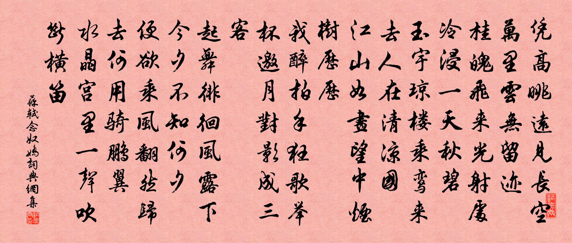 憑高眺遠,見長空,萬里雲無留跡。桂魄飛來,光射處,冷浸一天秋碧。