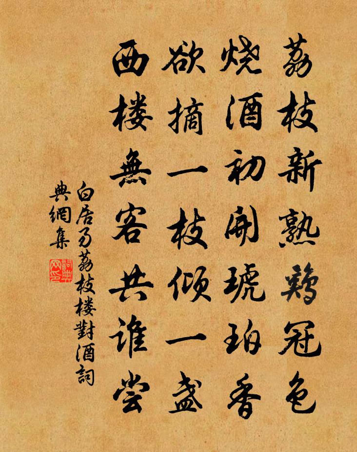 荔枝新熟雞冠色,燒酒初開琥珀香。欲摘一枝傾一盞,西樓無客共誰嘗?
