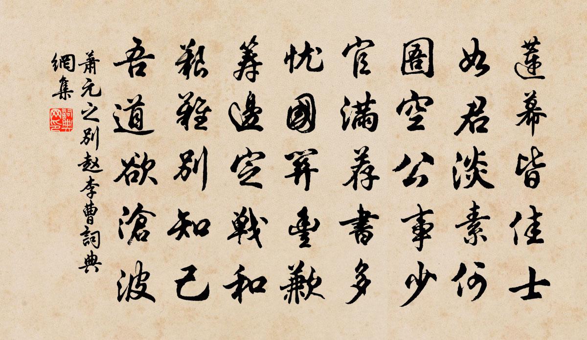 詩詞名句歷史字典書法欣賞書法字典國語詞典說文解字康熙字典古漢語字典標 題 作 者 詩 句 別趙李曹作者:蕭元之 朝代:宋代別趙李曹原文蓮幕皆佳士,如君淡素何。圄空公事少,官滿薦書多。憂國關豐歉,籌邊定戰和。艱難別知己,吾道欲滄波。詩詞問答問:別趙李曹的作者是誰?答:蕭元之問:別趙李曹寫於哪個朝代?答:宋代蕭元之別趙李曹書法欣賞別趙李曹書法作品詩詞推薦初夏雜興陸游〔宋代〕趁雨東園去荷鉏,歸庵卻展讀殘書。幸能胸著雲夢澤,何恨家無擔石儲。水泛時須借篷艇,山行亦或命巾車。嬾心賀皇太子九月四日生辰四首楊萬里〔宋代〕重九吹花節,千齡夢日時。東朝分菊水,南內賜萸枝。禹酒無多酌,堯樽更一卮。三宮千萬壽,剩費若干詩。山門晚歸李彌遜〔宋代〕毗耶香飯壑源春,午枕聊分百億身。旋落澗泉高下語,自鳴山鳥送迎人。雲山往歲真成癖,觴詠一時俱絕塵。已辨晚泊江口令小舟汲江心水烹葉璵雲谷碎冰散步李彌遜〔宋代〕不到鐘山二十上,江邊獨立思茫然。故園如夢南歸客,明日好風東去船。白鷺一雙輕照水,青鴉萬點遠漫天。何須西江月(坐客見和複次韻)蘇軾〔宋代〕小院朱闌幾曲,重城畫鼓三通。更看微月轉光風。歸去香雲入夢。翠袖爭浮大白,皂羅半插斜紅。燈花零落酒花穠華山畿·君既為儂死佚名〔南北朝〕華山畿,華山畿,君既為儂死,獨生為誰施?歡若見憐時,棺木為儂開。乘舟阻風張嵲〔宋代〕澤國天低星斗澤,疾風吹波作山立。岸頭草木皆震動,雞犬鳴吠紛相及。通宵萬竅無停聲,平明更作春濤驚。青天玉樓春歐陽修〔宋代〕金花盞面紅煙透。舞急香茵隨步皺。青春才子有新詞,紅粉佳人重勸酒。也知自為傷春瘦。歸騎休交銀燭候。擬將偈頌十八首釋師體〔宋代〕暗撒驪珠成瓦礫,閒傾鴆毒是醍醐。冤將恩報滅胡種,舉眼無親真丈夫。清平樂陳德武〔宋代〕三三兩兩。夜夜教人想。偷入霜綃斜隙帳。直到珊瑚枕上。玉人夢繞江南。輸他一餉肥甘。莫恨我心兒毒,只因你院中獨坐虞集〔元代〕何處它年寄此生,山中江上總關情。無端繞屋長松樹,盡把風聲作雨聲。讀田光傳李遠〔唐代〕秦滅燕丹怨正深,古來豪客盡沾襟。荊卿不了真閒事,辜負田光一片心。蝶戀花 閱周南翁所藏書畫,惜其迂懷雅好,吳存〔元代〕傀儡場中青紫楦。縱有神丹,俗骨無由換。可惜米顛蘇內翰。風標何遠年何短。此日閒窗開寶玩。想見江船,當日新荷葉趙彥端〔宋代〕欲暑還涼,如春有意重歸。春若歸來,任他鶯老花飛。輕雷澹雨,似晚風、欺得單衣。檐聲驚醉,起來新緣成圍。冬日放言二十一首張耒〔宋代〕湯餅慰朝餒,三杯澆旦寒。醉飽外何欲,昏然宵就眠。幽通夢有告,默存神自全。蕭蕭松竹舍,歲暮聊盤桓。讀道藏蘇軾〔宋代〕嗟余亦何幸,偶此琳宮居。宮中復何有?戢戢千函書。盛以丹錦囊,冒以青霞裾。王喬掌關龠,蚩尤守其盧。乘閒依韻和永叔內翰西齋手植菊花過節始開偶書見梅堯臣〔宋代〕晝惜日易沉,夜惜月易曉。重陽種菊花,此意亦大好。所嗟時節晚,又失澆培早。開榮獨是遲,造化徒費巧。霜前自巴陵略平江臨湘入通城無日不雨至黃龍奉謁黃庭堅〔宋代〕山行十日雨沾衣,幕阜峰前對落暉。野水自添田水滿,晴鳩卻喚雨鳩歸。靈源大士人天眼,雙塔老師諸佛機。白髮退棲司空圖〔唐代〕宦遊蕭索為無能,移住中條最上層。得劍乍如添健仆,亡書久似失良朋。燕昭不是空憐馬,支遁何妨亦愛鷹。自此喜屯田凌員外至宋祁〔宋代〕昔歲裁詩送為郡,今年把袂喜還台。遒妍賦筆悲秋罷,寂寞衣囊被謗回。勁節肯凋霜外葉,驚湍須畏岸前堆。撫塵名句推薦聞善以相告也,見善以相示也戴聖《禮記·儒行》 弱則保命,不可作強;強則斂翼,休求盡善。來俊臣《羅織經·保身卷第七》 鳥向檐上飛,雲從窗里出。吳均《山中雜詩》 遙知兄弟登高處,遍插茱萸少一人。王維《九月九日憶山東兄弟 / 九月九憶山東兄弟》 柳葉雙眉久不描,殘妝和淚污紅綃。江采萍《謝賜珍珠》 誰念文園病客?夜色沉沉,獨抱一天岑寂。張埜《奪錦標·七夕》 清明天氣。永日愁如醉。杜安世《鶴沖天·清明天氣》 我有所念人,隔在遠遠鄉。白居易《夜雨》 柴門聞犬吠,風雪夜歸人。劉長卿《逢雪宿芙蓉山主人》 山荒聊可田,錢鎛還易辦。王守仁《謫居糧絕請學於農將田南山詠言寄懷》