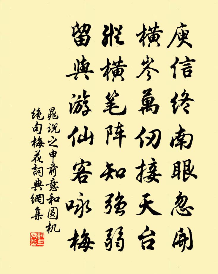 詩詞名句歷史字典書法欣賞書法字典國語詞典說文解字康熙字典古漢語字典標 題 作 者 詩 句 申前意和圓機絕句梅花作者:晁說之 朝代:宋代申前意和圓機絕句梅花原文庾信終南眼忽開,橫岑萬仞接天台。縱橫筆陣知強弱,留與遊仙客詠梅。詩詞問答問:申前意和圓機絕句梅花的作者是誰?答:晁說之問:申前意和圓機絕句梅花寫於哪個朝代?答:宋代晁說之申前意和圓機絕句梅花書法欣賞申前意和圓機絕句梅花書法作品詩詞推薦和慧山泉丁寶臣〔宋代〕誰識澄淵萬古清,潢汙擾擾謾縱橫。出從山底無應極,流落人間自有聲。江漢想能同浩渺,塵沙雖混更分明。從來薌林五十詠藥欄楊萬里〔宋代〕日出花葯麗,風生芝木香。枕中兼肘後,別有不傅方。獨行五首趙蕃〔宋代〕所思終不見,渺渺政愁余。試向江頭釣,怕逢雙鯉魚。出真陽峽十首楊萬里〔宋代〕細雨初來剌水紋,三針雨線未教繁。不知忽有何忙處,急灑千千萬萬痕。和人李洪〔宋代〕庭前槐樹綠陰陰,靜聽玄蟬盡日吟。枕簟虛涼清夢境,了無俗物動禪心。陳州與文郎逸民飲別攜手河堤上作此詩蘇軾〔宋代〕白酒無聲滑瀉油,醉行堤上散吾愁。春風料峭羊角轉,河水渺綿瓜蔓流。君已思歸夢巴峽,我能未到說黃州。此身寄山中道友三首周文璞〔宋代〕憶得尋山復出山,綠楊時候暮春間。至今只有遊仙夢,長與松風自往還。次陳夢錫韻二首陳造〔宋代〕薄雪晶瑩壓屋茅,未須桂玉計晨庖。已便鹽絮明愁眼,更喜烏鳶得夜巢。小聽騷人賦梁苑,旋看春意滿東郊。忍寒送僧中孚南歸譚用之〔唐代〕琵琶峽口月溪邊, * 頭佗憶舊川。一錫冷涵蘭徑路,片帆香掛橘洲煙。苔封石錦棲霞室,水迸衣珠噴玉蟬。莫道送曹晉伯令尹之官真德秀〔宋代〕此邑吾鄰境,嘗聞嘆恨深。有田盡增稅,無楮可為衾。原布中和政,毋懷忿疾心。歸田當有日,好聽宓生琴。同張德和游沈道士庵王洋〔宋代〕上春甲子送窮日,早破煙扉令節求。指點荷光仟侶洞,招期南極老人游。龜前香火木稱士,堂後交蟋石作牛。我恐古鏡歌周匡物〔唐代〕軒轅鑄鏡誰將去,曾被良工瀉金取。明月中心桂不生,輕冰面上菱初吐。蛟龍久無雷雨聲,鸞鳳空踏莓苔舞。欲向棖花董嗣杲〔宋代〕穠芳比似橘花肥,當日曾從細雨移。老有縐顏羞晚出,清無柔性結春知。雪香四月蜂攢處,風味重陽蟹健時。院落春日登大悲閣錢惟治〔宋代〕聖方欽崇教,千光顯紺容。映雲窗倚暖,籠月箔花重。淨剎香風遠,危欄碧霧濃。勝因良以詠,華閣一斯逢。自哂陳普〔宋代〕草澤行吟賦楚騷,青 * 上俗塵多。五陵年少休相笑,戲馬台前載酒過。送林子方吏部將漕江東樓鑰〔宋代〕望郎三度到長安,垂上青雲作好官。暫向江東一澄按,卻歸徑著侍臣冠。點絳唇(細香竹)王十朋〔宋代〕秀色娟娟,最宜雨沐風梳際。徑幽香細。草滴青襟袂。一日才無,便覺生塵態。軒窗外。數竿相對。不減王猷愛。芙蓉樓送辛漸二首王昌齡〔唐代〕寒雨連天夜入湖,平明送客楚山孤。洛陽親友如相問,一片冰心在玉壺。丹陽城南秋海陰,丹陽城北楚雲深。高樓滕王閣金君卿〔宋代〕無復朱樓萬幕垂,碧流青嶂似當時。不須越舞並秦唱,自有韓文與杜詩。殘雪未消春到晚,彩毫爭落酒行遲。滿簾過寶帶橋有詠乾隆〔清代〕金閶清曉放舟行,寶帶春風波漾輕。孔五十三易疏泄,漲痕猶見與橋平。名句推薦隋堤三月水溶溶。背歸鴻,去吳中。蘇軾《江神子·恨別》 夫萬事萬物之理,不外於吾心。王陽明《傳習錄·卷中·答顧東橋書》 靡蕪盈手泣斜暉,聞道鄰家夫婿歸。魚玄機《閨怨》 天涯倦客,山中歸路,望斷故園心眼。蘇軾《永遇樂·彭城夜宿燕子樓》 昨日屋頭堪炙手,今朝門外好張羅白居易《放言五首·其四》 黃師塔前江水東,春光懶困倚微風。杜甫《江畔獨步尋花·其五》 它山之石,可以攻玉。佚名《鶴鳴》 朱門沉沉按歌舞,廄馬肥死弓斷弦。陸游《關山月》 不管煙波與風雨,載將離恨過江南。鄭文寶《柳枝詞》 權衡損益,斟酌濃淡。芟繁剪穢,弛於負擔。劉勰《文心雕龍·熔裁》