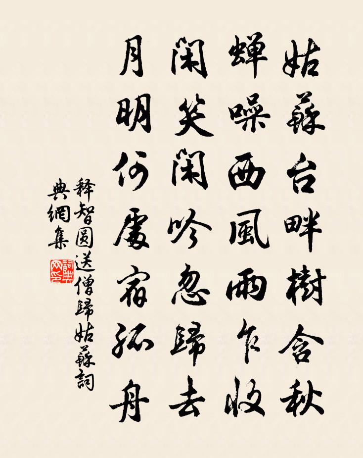 詩詞名句歷史字典書法欣賞書法字典國語詞典說文解字康熙字典古漢語字典標 題 作 者 詩 句 送僧歸姑蘇作者:釋智圓 朝代:宋代送僧歸姑蘇原文姑蘇台畔樹含秋,蟬噪西風雨乍收。閒笑閒吟忽歸去,月明何處宿孤舟。詩詞問答問:送僧歸姑蘇的作者是誰?答:釋智圓問:送僧歸姑蘇寫於哪個朝代?答:宋代釋智圓送僧歸姑蘇書法欣賞送僧歸姑蘇書法作品詩詞推薦詩一首張珍奴〔宋代〕逢師許多時,不說些兒個。及至如今悶,損我援筆末。禮局致齋宋祁〔宋代〕枌榆秋報漢家壇,齋誓先朝令不刊。抱蕝一身依禮署,飯蔬三日屬祠官。天池唳鶴驚宵滴,宮堞棲烏噪暮寒。倦枕雲封庵徐凝〔唐代〕登岩背山河,立石秋風裡。隱見浙江濤,一尺東溝水。點絳唇 十月二日馬上作龔自珍〔清代〕一帽紅塵,行來韋杜人家北。滿城風色,漠漠樓台隔。目送飛鴻,景入長天滅。關山絕,亂雲千疊,江北江南雪。湖上晚歸陸游〔宋代〕蓬山再別四經秋,來日翩翩去日遒。無酒可傾殊省事,有詩渾忘亦良籌。梅花遮路如撩客,槲葉飄風已滿溝。湖上乞竹贈邠老張耒〔宋代〕與君共一山,修竹居其間。義當給兩家,潘子不得慳。帶甲十萬夫,不戰終日閒。辱使支敝廬,令我愧滿顏。代竹自嘲陸游〔宋代〕身見紹興初改元,百罹敢料至今存。生涯破碎余龍具,學問荒唐守兔園。獨立未除還笏氣,餘生猶待闔棺論。北窗賢者之孝二百四十首公叔戍林同〔宋代〕若把夫子論,無慚貞惠文。不應其子戍,至自請於君。依韻和通判八月十五夜招翫月二章梅堯臣〔宋代〕一年一見最堪惜,百歲百夕能幾多。縱有明年似今夕,明年同會復如何。次韻聰父見遺二首張元乾〔宋代〕十年遷客北歸時,旁海相逢嘆渺瀰。枝上煙光忙蛺蝶,尊中風味奪酴醿。老來詩思真枯井,別後心情似亂絲。喜故同胡原仲吳公路游清湍亭賦詩得流字劉子翬〔宋代〕出山曾幾時,桂露颯已秋。興來任兩屐,散此默默憂。嵐光近仍滅,鳥語靜忽流。新亭迥臨危,急潤循岩陬。上有看調馬韓翃〔唐代〕鴛鴦赭白齒新齊,晚日花中散碧蹄。玉勒斗回初噴沫,金鞭欲下不成嘶。送外甥張祜〔唐代〕衰年生侄少,唯爾最關心。偶作魏舒別,聊為殷浩吟。白波舟不定,黃葉路難尋。自此尊中物,誰當更共斟。哭苗垂(一作過故友墓)耿湋〔唐代〕舊友無由見,孤墳草欲長。月斜鄰笛盡,車馬出山陽。對月寄同志劉得仁〔唐代〕霜滿中庭月在林,塞鴻頻過又更深。支頤不語相思坐,料得君心似我心。正曜崔敦禮〔宋代〕若有人兮水中喘,魚鱗衣兮白蜺裳。荃橈兮桂旗, * 迎兮風薄之。神之賀兮兩龍,驂白龜兮蛟螭從。朝余陟兮三寄崔侍御李白〔唐代〕宛溪霜夜聽猿愁,去國長為不繫舟。獨憐一雁飛南海,卻羨雙溪解北流。高人屢解陳蕃榻,過客難登謝朓樓。此處無題陳允平〔宋代〕千樹琅玕碧玉梢,秋聲半夜浙江潮。小庭寂寞無人到,誰與同吹月下簫。和方時父立春劉克莊〔宋代〕茶梅有意如相伴,梨棗無根未易栽。稍喜凍逢春漸解,不堪老挾病俱來。久扃北戶寒稀出,已落南枝暖再開。忘卻洞仙歌楊無咎〔宋代〕痴牛E66D女,謾恩深情遠。一歲惟能一相見。縱金風玉露,勝卻人間,爭奈向、雪月花時阻間。幽歡猶未足,名句推薦雨窗和淚搖湘管。意長箋短。許棐《後庭花·一春不識西湖面》 金玉其外,敗絮其中劉基《賣柑者言》 清鏡無雙影,窮泉有幾重。顧況《酅公合祔輓歌》 啜苦咽甘,茶也。陸羽《茶經·五之煮》 敗軍之將,不可以言勇。司馬遷《史記·淮陰侯列傳》 憶共人人睡魂蝶亂,夢鸞孤。趙長卿《更漏子·燭消紅》 香霧雲鬟濕,清輝玉臂寒。杜甫《月夜》 一日不見,如三月兮。佚名《子衿》 若言言悅耳,事事快心,便把此生埋在鴆毒中矣。洪應明《菜根譚·概論》 聚散匆匆,此恨年年有。魏夫人《點絳唇·波上清風》