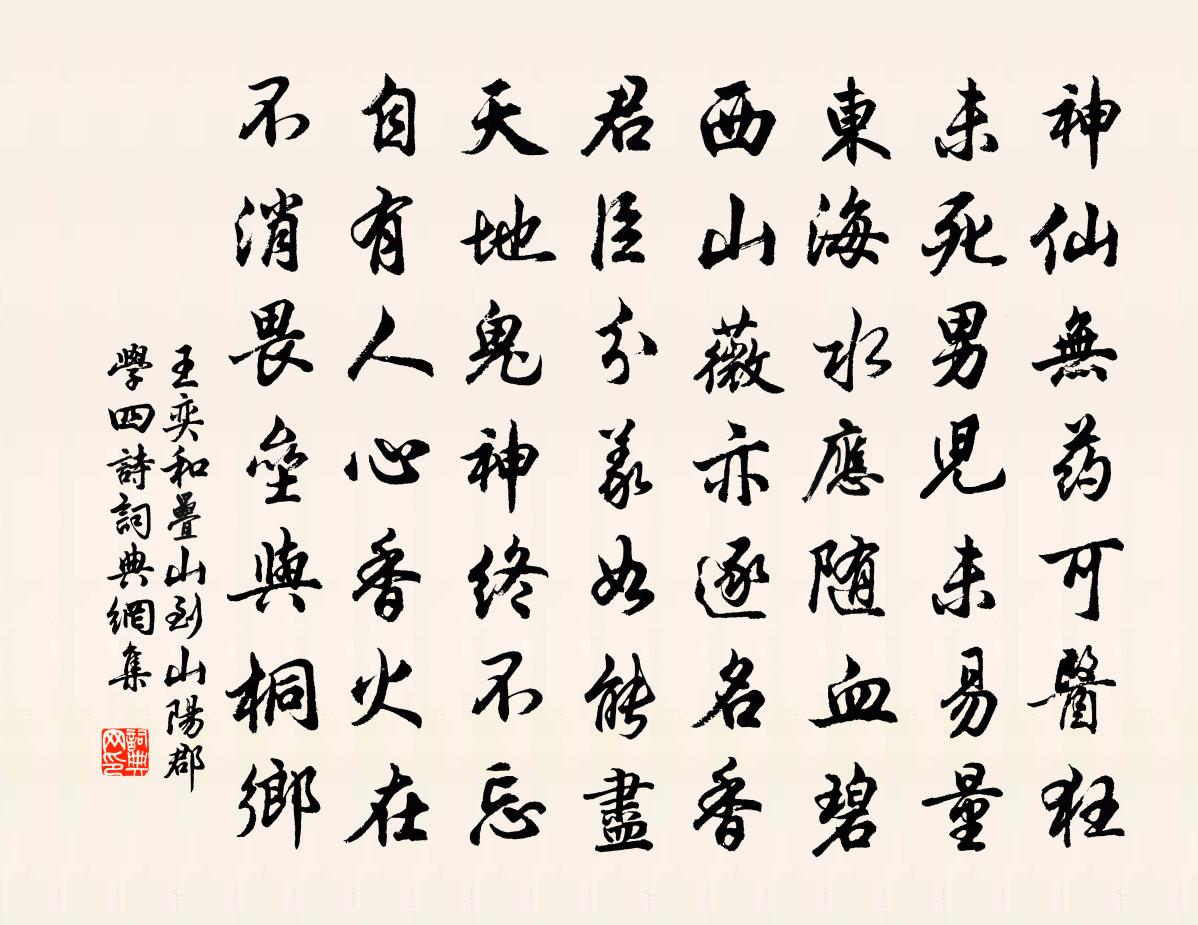 詩詞名句歷史字典書法欣賞書法字典國語詞典說文解字康熙字典古漢語字典標 題 作 者 詩 句 和疊山到山陽郡學四詩作者:王奕 朝代:宋代和疊山到山陽郡學四詩原文神仙無藥可醫狂,未死男兒未易量。東海水應隨血碧,西山薇亦逐名香。君臣分義如能盡,天地鬼神終不忘。自有人心香火在,不消畏壘與桐鄉。詩詞問答問:和疊山到山陽郡學四詩的作者是誰?答:王奕問:和疊山到山陽郡學四詩寫於哪個朝代?答:宋代王奕和疊山到山陽郡學四詩書法欣賞和疊山到山陽郡學四詩書法作品詩詞推薦論語絕句一百首張九成〔宋代〕焉用牛刀去割雞,子游初見已無疑。既雲學道應須愛,遂謂前言乃戲之。廬陵劉兄焱袖詩編稿相訪借所和施從可唱酬韻程公許〔宋代〕拙與時乖勿誤謀。可能騎鶴更揚州。翹英似子寧終困,玉帛何時來蹇修。即事陸游〔宋代〕心與岩泉靜,形如野鶴臞。朝餐美藜藿,夜學講唐虞。婢老無釵澤,僮寒闕褲襦。所欣惟一事,無吏督殘租。秦原覽古於濆〔唐代〕耕者戮力地,龍虎曾角逐。火德道將亨,夜逢蛇母哭。昔日望夷宮,是處尋桑谷。漢祖竟為龍,趙高徒指鹿。當時村舍雜書陸游〔宋代〕爵祿九鼎重,名義一羽輕,人見共如此,吾道何由行?湖山有一士,無人知姓名,時時風月夕,遙聞清嘯聲。醉蓬萊李曾伯〔宋代〕倚欄酒干一笑,酒舊日琵琶酒,何處尋酒覓。獨立東風,吹未醒狂客。沙外青歸,柳邊黃淺,依舊自春色。極目長臨江仙(次韻陳少陽重九)張綱〔宋代〕綠蟻浮觴香泛泛,黃花共薦芳辰。清霜天宇淨無塵。登高宜有賦,拈筆戲成文。可奈園林搖落盡,悲秋意與誰論。行宮蘇泂〔宋代〕先帝乘龍厭九州,行宮花柳不勝愁。傷心更有秦淮水,故繞宮牆日夜流。賀俞婺州除左史林宗放〔宋代〕報政天邊美譽新,十行細札下嚴宸。逢人政爾詢司馬,縱俗何由借寇恂。制勝萬全端有道,折衝一點是精神。向來木蘭花/玉樓春佚名〔宋代〕花間棠棣。匹似人間兄與弟。一種花枝。底事當年卻盛衰。中臧蜾蠃。忽遇暝蛉真類我。換葉移根。要與相輝映一疊韻春日雜興五首陳棣〔宋代〕南陌遊人少,東城去路賒。尋芳閒趁蝶,失喜漫占鴉。著物春猶淺,薰人氣自華。夜來風雨急,驚動阿香車。句陳從古〔宋代〕多情今夜月,送我到衡州。次韻和丁右丞因贈致政張少卿二首宋庠〔宋代〕芝術新園御陌東,飄然雲鶴此相從。貴交亦有功成約,林下他年或見容。題畫九首唐寅〔明代〕晃漾金銀帆殿開,蕭森杉柳隔紛埃。只容逋客騎驢到,不許朝官引騎來。元豐己未三院東閣作己未九月予赴鞫御史聞蘇頌〔宋代〕源流同是子卿孫,公自多才我寡聞。謬見推稱丈人行,應緣舊熟秘書君。文章高絕誠難敵,聲氣相求久益勤。莫為之金陵仇遠〔宋代〕文學本閒官,長年愧素餐。出門還自笑,行路有何難。風日幽懷暢,江山望眼寬。六朝遺蹟在,隨喜一游觀。送環知客歸省親釋子淳〔宋代〕清風明月秋光半,環禪別我雲南歸。當堂子母相逢日,妙圓孰敢分離微。咦,撥轉吾家向上機,回頭觸處生光輝。涇州觀元戎出師戎昱〔唐代〕寒日征西將,蕭蕭萬馬叢。吹笳覆樓雪,祝纛滿旗風。遮虜黃雲斷,燒羌白草空。金鐃肅天外,玉帳靜霜中。朔野二樂榭文同〔宋代〕暖山北來聳峨峨,漢水東下流滔滔。開軒直可望百里,最愛此榭凌雲高。深春挈家下湖莊曹彥約〔宋代〕我生聊自樂,人意適相隨。郊外有行處,春中無倦時。雖知攀折苦,未覺燕遊衰。更欲添桃李,初心不在茲。名句推薦神女生涯原是夢,小姑居處本無郎。李商隱《無題·重幃深下莫愁堂》 牆外行人,牆裡佳人笑。蘇軾《蝶戀花·春景》 誰家秋院無風入?何處秋窗無雨聲?曹雪芹《代別離·秋窗風雨夕》 野梅燒不盡,時見兩三花劉基《古戍》 善人同處,則日聞嘉訓;惡人從游,則日生邪情。范曄《後漢書·列傳·楊李翟應霍爰徐列傳》 起舞徘徊風露下,今夕不知何夕。蘇軾《念奴嬌·中秋》 只應守寂寞,還掩故園扉。孟浩然《留別王侍御維 / 留別王維》 疏林紅葉,芙蓉將謝,天然妝點秋屏列。薛昂夫《西湖雜詠·秋》 伏屍百萬,流血漂櫓。賈誼《過秦論》 群芳過後西湖好,狼籍殘紅。歐陽修《採桑子·群芳過後西湖好》