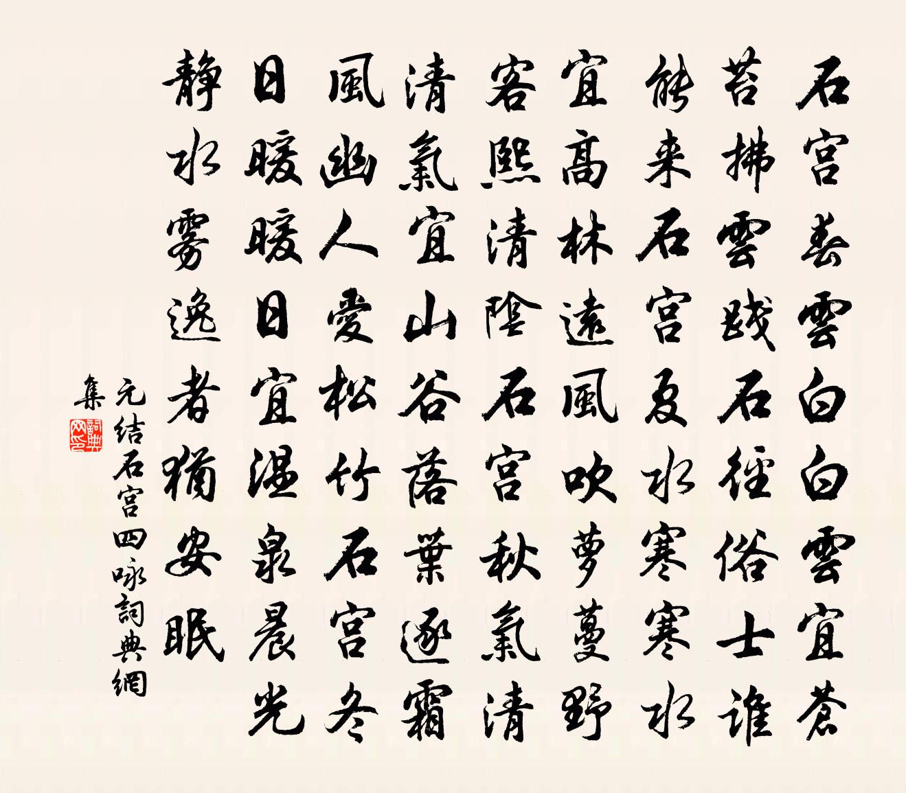 石宮春雲白,白雲宜蒼苔。拂雲踐石徑,俗士誰能來。