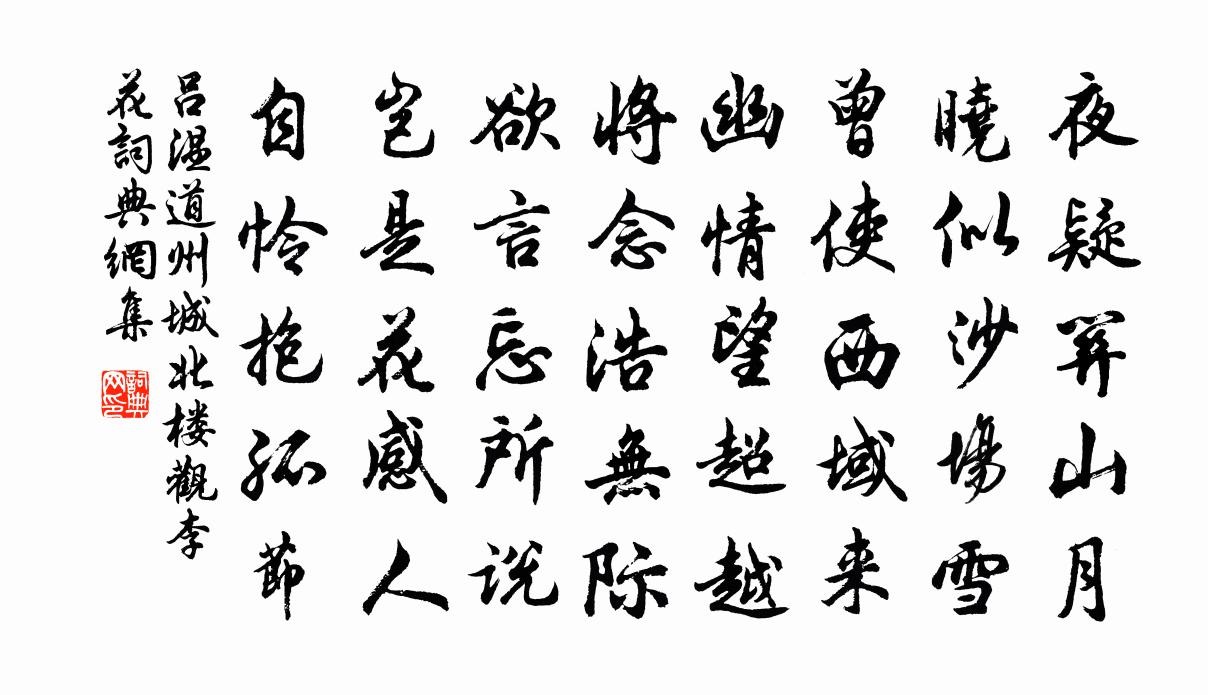 詩詞名句歷史字典書法欣賞書法字典國語詞典說文解字康熙字典古漢語字典標 題 作 者 詩 句 道州城北樓觀李花作者:呂溫 朝代:唐代道州城北樓觀李花原文夜疑關山月,曉似沙場雪。曾使西域來,幽情望超越。將念浩無際,欲言忘所說。豈是花感人,自憐抱孤節。詩詞問答問:道州城北樓觀李花的作者是誰?答:呂溫問:道州城北樓觀李花寫於哪個朝代?答:唐代問:道州城北樓觀李花是什麼體裁?答:五古呂溫道州城北樓觀李花書法欣賞道州城北樓觀李花書法作品注釋全唐詩:卷371-50詩詞推薦奉酬袁使君西樓餞秦山人與晝同赴李侍御招三韻皎然〔唐代〕秋風怨別情,江守上西城。竹署寒流淺,琴窗宿雨晴。治書招遠意,知共楚狂行。兗州送李明府使蘇州便赴告期韓翃〔唐代〕莫言水國去迢迢,白馬吳門見不遙。楓樹林中經楚雨,木蘭舟上蹋江潮。空山古寺千年石,草色寒堤百尺橋,早晚臨江仙程大昌〔宋代〕夾路傳呼杳杳,垂腰印綬累累。萬般榮貴出丹枝。遙知心樂處,椿畔桂當時。酒到芳春偏弄色,輕黃泛灩鵝兒。大再用前韻並寄孫推官四首趙蕃〔宋代〕恍惚迷來際,周章失去傍。怕聞行戍遠,愁聽哭田荒。要挽天河水,方焚玉帳香。夷吾政分閫,吾黨詎應忙。偈頌一百二十三首釋普度〔宋代〕結夏已十日,那事無訊息。雲在嶺頭閒,水流何太急。法法不隱藏,古今無朕跡。索居三首蘇轍〔宋代〕平生亦何事,十載苦顛隮。夢嶮曾非嶮,覺迷終不迷。客居兼壯子,別久愧良妻。稍訝音書闊,春 * 路泥。春去白居易〔唐代〕一從澤畔為遷客,雨度江頭送暮春。白髮更添今日鬢,青衫不改去年身。百川未有回流水,一老終無卻少人。四十句陶弼〔宋代〕曾觀工部集,中載赤沙湖。漢宮春劉鎮〔宋代〕日軟花風柔,望花暖紅連島花,晴綠平川。尋芳拾蕊,勝伴陌上鮮妍。玉驄歸路,記青門、曾墮吟鞭。人去後,庭懷金陵三首張耒〔宋代〕此君堂後青蒼玉,別後何曾寄一聲。想見秦淮月堂下,西風吹浪拍堤平。用強甫蒙仲韻十首劉克莊〔宋代〕先生擬把衣冠掛,穉子能操杖履從。叔夜只堪伴魚鳥,子云何至況蛇龍。豹皮尚欲留名死,雞肋安知與怒逢。老去偶亦夜坐用前韻方回〔宋代〕林禽畏冷暮爭歸,水上荒城早闔扉。敲月會棋迎皂衲,斧冰供茗喚青衣。齕萁老馬廏中響,瞰燭痴蛾窗外飛。忽報人日兩篇杜甫〔唐代〕元日到人日,未有不陰時。冰雪鶯難至,春寒花較遲。雲隨白水落,風振紫山悲。蓬鬢稀疏久,無勞比素絲。此日同李益、崔放送王鍊師還樓觀,兼為群公先營山居孟郊〔唐代〕十年白雲士,一卷紫芝書。來結崆峒侶,還期縹緲居。霞冠遺彩翠,月帔上空虛。寄謝泉根水,清泠閒有餘。題磻溪垂釣圖羅隱〔唐代〕呂望當年展廟謨,直鉤釣國更誰如。若教生在西湖上,也是須供使宅魚。題觀樓岑參〔唐代〕荒樓荒井閉空山,關令乘雲去不還。羽蓋霓旌何處在,空留藥臼向人間。從獵晚歸馬上默成奉呈承旨端明王學士宋庠〔宋代〕天子乘冬校獵回,鉤陳平野轉瑤魁。萬蹄未暮先追日,疊鼓非春已作雷。得攜風毛隨禁仗,犒勤霞液出仙杯。詞臣贈道流陸游〔宋代〕煙雲深處作生涯,回首人間歲月賒。留得朱顏憑綠酒,掃空白髮賴丹砂。七弦指下泠泠久,雙袖風中獵獵斜。他日途中偶成寄幕下諸公張嵲〔宋代〕曠朗高天淨,蟬鳴江漢秋。川晴山歷歷,身遠意悠悠。落日慘行子,長風欺弊裘。郡樓今夜月,應從庾公游。禁中寒蟬宋庠〔宋代〕何處幽林蛻,來依禁樹鳴。風緌非冒寵,露腹祗知清。曉韻飄觚闕,殘嘶逗采甍。秋螳多怒臂,寂寞好全生。名句推薦梅以曲為美,直則無姿;龔自珍《病梅館記》 西湖又還春晚,水樹亂鶯啼。仲殊《訴衷情·寶月山作》 怕相思,已相思,輪到相思沒處辭,眉間露一絲。俞彥《長相思·折花枝》 春風春雨花經眼,江北江南水拍天。黃庭堅《次元明韻寄子由》 朝屯雪山下,暮宿青海旁。韋元甫《木蘭歌》 日暮征帆何處泊,天涯一望斷人腸。孟浩然《送杜十四之江南 / 送杜晃進士之東吳》 還卿一缽無情淚,恨不相逢未剃時。蘇曼殊《本事詩十首·選二》 清秋幕府井梧寒,獨宿江城蠟炬殘。杜甫《宿府》 相思本是無憑語,莫向花箋費淚行。晏幾道《鷓鴣天·醉拍春衫惜舊香》 燒痕慘澹帶昏鴉,數盡寒梅未見花。陳孚《詠永州》