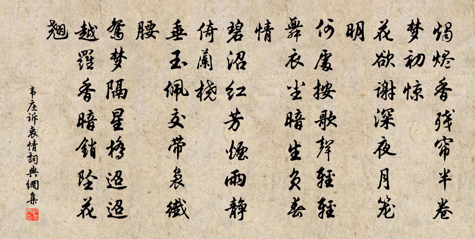 燭燼香殘簾半卷,夢初驚。花欲謝,深夜,月籠明。