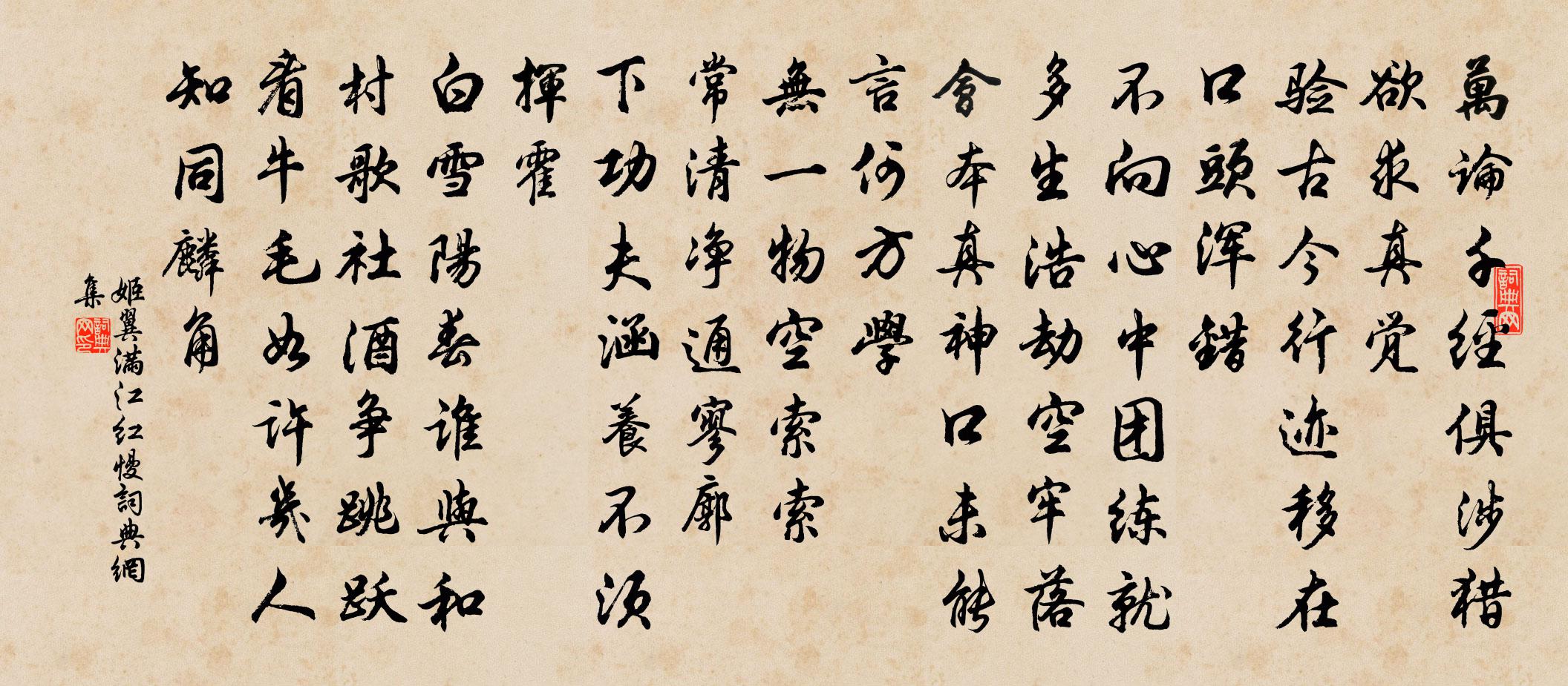 - 兩岸桃花烘日出,四圍高柳到天垂。姜彧《浣溪沙·山滴嵐光水拍堤》