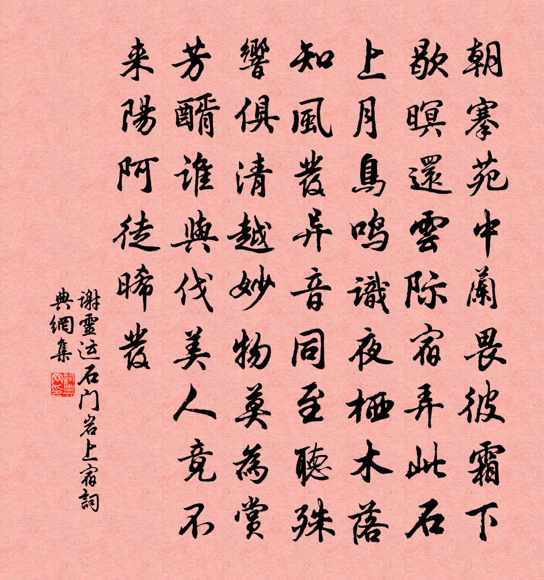 朝搴苑中蘭,畏彼霜下歇。暝還雲際宿,弄此石上月。
