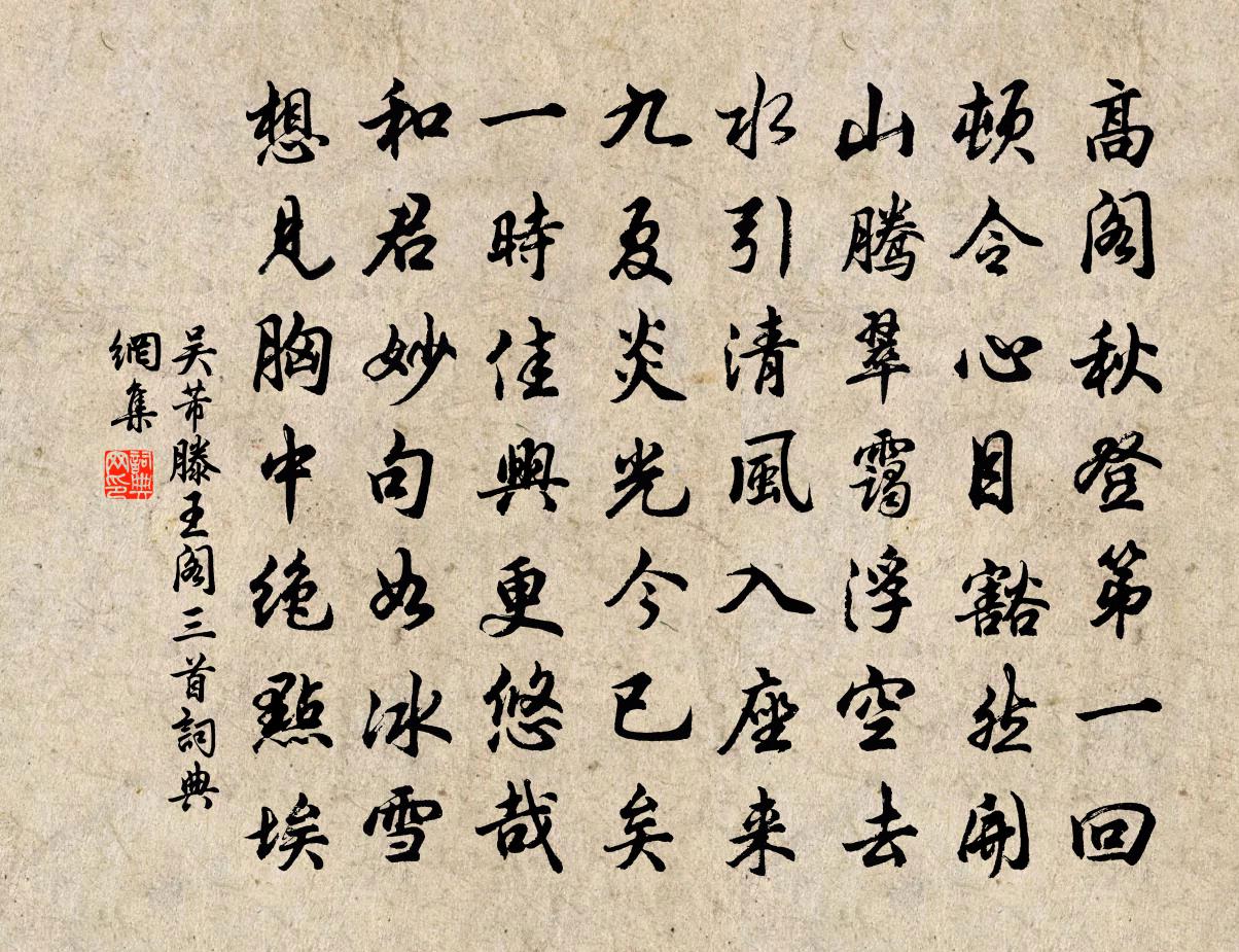 詩詞名句歷史字典書法欣賞書法字典國語詞典說文解字康熙字典古漢語字典標 題 作 者 詩 句 滕王閣三首作者:吳芾 朝代:宋代滕王閣三首原文高閣秋登第一回,頓令心目豁然開。山騰翠靄浮空去,水引清風入座來。九夏炎光今已矣,一時佳興更悠哉。和君妙句如冰雪,想見胸中絕點埃。詩詞問答問:滕王閣三首的作者是誰?答:吳芾問:滕王閣三首寫於哪個朝代?答:宋代吳芾滕王閣三首書法欣賞滕王閣三首書法作品詩詞推薦金剛隨機無盡頌一體同觀分第十八釋印肅〔宋代〕落花隨流水,劉阮曾拈起。吃了入桃源,未是真如理。春遊劉過〔宋代〕東風鎮日倚闌乾,淺紅深綠取次攀。麥隴浪翻袍色綠,花鈿風卷錦紋斑。依林僧寺青山繞,倚竹人家綠水環。趁取清明史達祖〔宋代〕一百六朝花雨過,柳梢猶爾病春寒。晉官今日炊煙斷,並著新晴看牡丹。小重山·柳暗花明春事深章良能〔宋代〕柳暗花明春事深,小闌紅芍藥、已抽簪。雨餘風軟碎鳴禽,遲遲日,猶帶一分陰。往事莫沉吟,身閒時序好、且登奉和聖制春台望應制蘇頲〔唐代〕壯麗天之府,神明王者宅。大君乘飛龍,登彼復懷昔。圓闕朱光焰,橫山翠微積。河汧流作表,縣聚開成陌。即舊湖州碧瀾堂陳堯佐〔宋代〕苕溪清淺霅溪斜,碧玉光寒照萬家。誰向月明終夜聽,洞庭漁笛隔蘆花。送儲邕之武昌李白〔唐代〕黃鶴西樓月,長江萬里情。春風三十度,空憶武昌城。送爾難為別,銜杯惜未傾。湖連張樂地,山逐泛舟行。諾為頌古二十四首釋宗演〔宋代〕善財童子採來親,大智文殊用得靈。今日青山端午節,不勞拈出再施呈。詠梅雜詩張道洽〔宋代〕小小茅茨野老家,不隨桃李競春華。欲知格韻真孤絕,禿盡千林始一花。出合肥北門二首王之道〔宋代〕斷垣甃石新修疊,折戟埋沙舊戰場。闤闠凋零煨燼里,春風生草沒牛羊。春晚吳龍翰〔宋代〕萬綠叢中春事闌,楊花如雪滿江乾。露沾花樹蝶衣重,雨著芹泥燕嘴寒。愁到吟腸詩綰斷,夢依棋局客敲殘。何時山月袁燮〔宋代〕好風吹雨到山前,月與山翁故有緣。靜夜相看兩寥寂,水流岩下瀉潺潺。詠史上匡衡陳普〔宋代〕鋪陳治道本群經,無愧更生與董不生。不賴王尊作鳴鳳,欺天一點未分明。偈頌一百零二首釋紹曇〔宋代〕水洗硬石頭,浪打枯楊樹。淨智裝嚴功德聚。雖然脫體無塵,未是透法身句。如何是透法身句,只有湖水無行路。大雄寺奕載〔宋代〕琉璃葉下剪梧桐,緣子青枝掃地空。俗眼如休有青白,好風安得間雌雄。物隋塵境工榮顇,人觸心兵戰異同。只可胡廣文以直養名堂余舉伊川之說問之往反數十彭龜年〔宋代〕以物養物,如水沃木。推彼有餘,益此不足。惟直與氣,如木有根。本既充盛,枝葉自繁。氣言其形,直言其理。瑞鷓鴣晏殊〔宋代〕越娥紅淚泣朝雲。越梅從此學妖嚬。臘月初頭、庾嶺繁開後,特染妍華贈世人。前溪昨夜深深雪,朱顏不掩天真。贈術士曾豐〔宋代〕相主呂公醫主盧,色身色相莫逃渠。新離有色入無色,果到吾前口自{吱支換去}。雜曲歌辭妾薄命杜審言〔唐代〕草綠長門閉,苔青永巷幽。寵移新愛奪,泣下故情留。啼鳥驚殘夢,飛花攪獨愁。自憐春色罷,團扇復迎秋。僧問緣生義釋重顯〔宋代〕義列緣生笑未聞,孰呈布鼓向雷門。金剛鐵券諸方問,報導三千海岳昏。名句推薦雲盡月如練,水涼風似秋。歐陽詹《荊南夏夜水樓懷昭丘直上人云夢李莘》 丹砂成黃金,騎龍飛上太清家,雲愁海思令人嗟。李白《飛龍引二首·其一》 當年志氣俱消盡,白髮新添四五莖。薛逢《長安夜雨》 細讀離騷還痛飲,飽看修竹何妨肉。辛棄疾《滿江紅·山居即事》 碧雲天,黃葉地,秋色連波,波上寒煙翠。范仲淹《蘇幕遮·懷舊》 會天大雨,道不通,度已失期司馬遷《陳涉世家》 橫看成嶺側成峰,遠近高低各不同。蘇軾《題西林壁》 青春花姊不同時。淒涼生較遲。吳文英《醉桃源·芙蓉》 萬里橋邊多酒家,遊人愛向誰家宿。張籍《成都曲》 西風稍急喧窗竹,停又續,膩臉懸雙玉。閻選《河傳·秋雨》