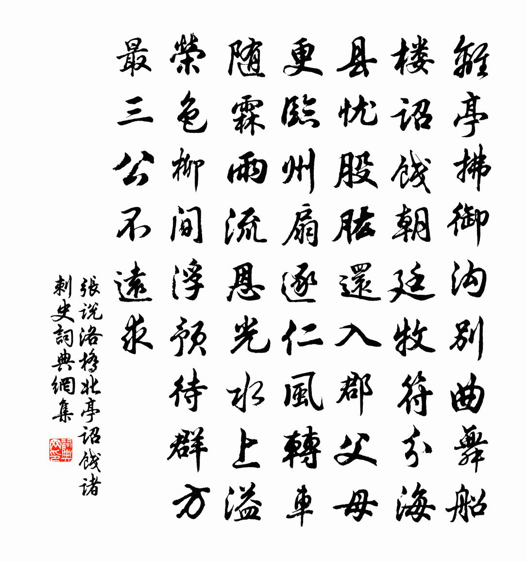 詩詞名句歷史字典書法欣賞書法字典國語詞典說文解字康熙字典古漢語字典標 題 作 者 詩 句 洛橋北亭詔餞諸刺史作者:張說 朝代:唐代洛橋北亭詔餞諸刺史原文離亭拂御溝,別曲舞船樓。詔餞朝廷牧,符分海縣憂。股肱還入郡,父母更臨州。扇逐仁風轉,車隨霖雨流。恩光水上溢,榮色柳間浮。預待群方最,三公不遠求。詩詞問答問:洛橋北亭詔餞諸刺史的作者是誰?答:張說問:洛橋北亭詔餞諸刺史寫於哪個朝代?答:唐代問:洛橋北亭詔餞諸刺史是什麼體裁?答:五排張說洛橋北亭詔餞諸刺史書法欣賞洛橋北亭詔餞諸刺史書法作品注釋全唐詩:卷88_27詩詞推薦寄靜佳朱明府釋斯植〔宋代〕翰苑留名久,城邊半掩扉。聲隨淮水遠,吟入楚天微。吏靜看山坐,鄉遙撫劍歸。清虛無別事,嘉政在璇璣。送從弟叔韶尉東陽樓鑰〔宋代〕阿連少也爽,孤立生氣燄。壯年淬詞鋒,傾心事鉛槧。膠庠困虀鹽,世科終穩占。再興連桂堂,爾祖真不忝。況將石牛行李思衍〔宋代〕寒牛觳觫秋江煙,五丁擔落石一拳。驚濤拍岸撼不動,夕陽老背從鴉眠。天荒地老煮白石,頑懶不過蒼苔田。騰騰偶成示眾釋正覺〔宋代〕楊柳斜風力弱,芭蕉擊雨聲寒。莫把見聞作對,誰將聲色相瞞。偈頌一百零九首釋可湘〔宋代〕日月如梭,光陰似箭。目前一機,萬化千變。甚處見得,西風一陣來,落葉兩三片。送鄭二員外皇甫冉〔唐代〕置酒竟長宵,送君登遠道。羈心看旅雁,晚泊依秋草。秋草尚芊芊,離憂亦渺然。元戎辟才彥,行子犯風煙。風煙寶劍歐陽修〔宋代〕寶劍匣中藏,暗室夜常明。欲知天將雨,錚爾劍有聲。神龍本一物,氣類感則鳴。常恐躍匣去,有時暫開扃。煌煌雜劇·西遊記·第五本楊景賢〔元代〕萬里韶光應節來三天寶籙徹明開分明龍女擎珠出疑是仙人帶月回第十七折女王逼配(唐僧引孫、豬、沙、馬上,雲武岡葉使君寄詩次韻二首劉克莊〔宋代〕詞客紛紛載後車,誰能遠寄病相如。雙旌已拜湖南牧,尺素猶題嶺外書。詩句騎驢游蜀後,情懷賦鵩吊湘餘。似聞冬日出郊二首王之道〔宋代〕覆塊青青麥欲齊,田家籬落枯岡西。歲飢冬暖聊相補,抉藕歸來餉萊妻。項羽之死司馬遷〔兩漢〕項王軍壁垓下,兵少食盡,漢軍及諸侯兵圍之數重。夜聞漢軍四面皆楚歌,項王乃大驚曰:“漢皆已得楚乎?是何錢儒珍家賞桂仇遠〔宋代〕客至當飲酒,醉此金粟堆。秋風何時到,叢樹參差開。馨香逆人鼻,蓓蕾藏聖胎。攀枝折其榮,落穗浮酒杯。後夜行休寧縣南山中方回〔宋代〕我非塵中人,素心在塵外。深谷行人稀,幽賞與心會。原疇薴苗肥,嶺塢杉木大。女績男斧斤,生理於此賴。稻畦送李屯田粹丹陽蘇頌〔宋代〕西津秋晚度歸艎,新領監州建禮郎。蚤伏能名動江左,重聞謠詠入朱方。部中句曲三茅阜,境上吳門二陸鄉。官近歲暮書事十二首張耒〔宋代〕自昔周人俗,貪庸巧治生。千金不冠帶,一飲起紛爭。佩犢攻攘敓,通書為姓名。二南分陝化,寂寞久無聲。再用韻汪莘〔宋代〕長恨無人共一杯,直知好友自天來。淵明到死真成菊,和靖平生卻是梅。聞江陵江帥海病訃二首岳珂〔宋代〕荊楚初歸士若雲,連營幾載守空囷。度支入境方移粟,神策呼街自脫巾。我已課無從此有,君方舉故責之新。可憐長風峽避風和全父背弟韻陽枋〔宋代〕慘舒異氣無異機,交朋論心不論跡。詩書一酌飲芝蘭,見雨連宵聽蕭瑟。旋調詩律破愁城,間弄局棋消短日。酒來江陵節度陽城郡王新樓成王請嚴侍御判官賦七字句同作杜甫〔唐代〕樓上炎天冰雪生,高盡燕雀賀新成。碧窗宿霧濛濛濕,朱栱浮雲細細輕。杖鉞褰帷瞻具美,投壺散帙有餘清。自公春草碧 仆一節從軍吳秀間,近始謁告還家,邵亨貞〔元代〕又調春草碧詞見遺,以識會合之意,情文悃歡,溢於言表,惠至渥也。輒依芳韻,庸寫下忱,為先施之期謝雲儒冠名句推薦惟有河邊雁,秋來南向飛。庾信《重別周尚書》 心者修裔之根,未有根不植而枝葉榮茂者。洪應明《菜根譚·概論》 生而知之;或學而知之;或困而知之:及其知之,一也。子思《中庸·第二十章》 大丈夫處世,當努力建功立業,著鞭在先。今若不取,為他人所取,悔之晚矣。羅貫中《三國演義·第六十回》 斷香殘酒情懷惡。西風催襯梧桐落。李清照《憶秦娥·詠桐》 浮雲遊子意,落日故人情。李白《送友人》 耕犁千畝實千箱,力盡筋疲誰復傷?李綱《病牛》 更深人去寂靜,但照壁孤燈相映。周邦彥《關河令·秋陰時晴漸向暝》 那堪疏雨滴黃昏。更特地、憶王孫。歐陽修《少年游·欄乾十二獨憑春》 姑蘇台上烏棲時,吳王宮裡醉西施。李白《烏棲曲》