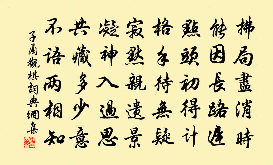 詩詞名句歷史字典書法欣賞書法字典國語詞典說文解字康熙字典古漢語字典標 題 作 者 詩 句 觀棋作者:子蘭 朝代:唐代觀棋原文拂局盡消時,能因長路遲。點頭初得計,格手待無疑。寂默親遺景,凝神入過思。共藏多少意,不語兩相知。詩詞問答問:觀棋的作者是誰?答:子蘭問:觀棋寫於哪個朝代?答:唐代問:觀棋是什麼體裁?答:五律子蘭觀棋書法欣賞觀棋書法作品注釋全唐詩:卷824-24詩詞推薦閒中信筆二首其一追和陳去非韻其一追和王履陸游〔宋代〕小江之上千峰立,潮回艇子爭來集。飄風忽起白浪高,急雨橫吹綠蓑濕。歲豐斗酒才百錢,茆店無人驚醉眠。醒來寄題崔校書郊舍黃滔〔唐代〕一片寒塘水,尋常立鷺鷥。主人貧愛客,沽酒往吟詩。看船陳藻〔宋代〕迅步如何卻放遲,貪看船子下灘奇。身貧也守垂堂戒,自覺看高命未知。寒雨中偶賦陸游〔宋代〕暮年心事與誰同?到處飄然一病翁。斷夢淒涼燈影里,殘詩零落雨聲中。莫驚顏鬢渾非昨,略數朋儕已半空。祠祿漢老弟寄示雪詩倡和已成軸矣因次韻虞儔〔宋代〕臘盡冰花墮渺茫,詩來爽氣想清揚。潤添隴麥知年熟,影浸溪梅見月將。閉戶誰能呼白墮,迴風卻笑舞紅妝。小橋古詩贈相士吳楚峰謝枋得〔宋代〕世亂異人出,高者為神仙。方術皆救世,可知愚與賢。喜君風鑑別,妙處不可傳。著眼看福人,要識太平年。五月十二日閒中偶作陳文蔚〔宋代〕黃卷與晤對,日日有新聞。青山不世情,時時有佳賓。不動利害心,且無半迎勤。自得地童樂,何須市朝紛。種菊江上夜行楊時〔宋代〕冰壺瀲灩接天浮,月色雲光寸寸秋。不用乘槎厲東海,一江星漢擁行舟。和陸郎中放翁韻姜特立〔宋代〕遙知三徑長荒苔,解組東歸亦快哉。津岸紛紛群吏去,船頭袞袞好山來。平時佳客應相過,勝日清尊想屢開。若許再題江橫蒲壽宬〔宋代〕一榻虛明懷抱幽,水天無際望悠悠。潮來不覺沙洲沒,浪打只疑茅屋浮。何處漁人橫短笛,有時嫠婦泣孤舟。忘機閒田釋了惠〔宋代〕秦不耕兮漢不耘,鑊頭邊事杳無聞。年來也有秋成望,三合清風半合雲。聖節有感黃彥平〔宋代〕漫說南風入舜弦,傷時撫事益悽然。愔愔新綠愁鴝鵒,悄悄殘紅拜杜鵑。心折更聞胡部曲,眼明那復御爐煙。蒜山謫宋徙毫初聞周璠琵琶晁補之〔宋代〕棗園憭栗檜廳寒,醉倚琵琶倒鶡冠。不似江州白司馬,只成怨恨不成歡。東帥少才兄寵貺七言一首口占八句以謝李壁〔宋代〕辛苦燈窗少日同,未應歲晚馬牛風。匡山何敢杜陵敵,子貢還憐顏巷空。紅旆碧油雖貴重,清泉白石也英雄。長喔浣溪沙徐俯〔宋代〕西塞山前白鷺飛。桃花流水鱖魚肥。一波才動萬波隨。黃帽豈如青箬笠,羊裘何似綠蓑衣。斜風細雨不須歸。超果亮師假還山陳瓘〔宋代〕路左漿先饋,門前屨幾重。勇歸塵事擲,恬處道心濃。弄水知幽谷,觀雲想妙峰。深夜孤鶴唳,清露滴高松。對雨思蘇子美韓維〔宋代〕五月陰盛暑不效,飛雲日夕起嵩少。迴風颯颯吹暮寒,翠竹黃蕉雨聲鬧。北軒孤坐默有念,人生會合那可料。昔與無瑕釋心月〔宋代〕本體溫如又瑩如,擬心雕琢費工夫。自家寶藏只這是,切莫揩磨染污渠。雜詩曹植〔魏晉〕美玉生盤石。寶劍出龍淵。帝王臨朝服。秉此威百蠻。歷刀不見貴。雜糅刀刃間。緣識宋太宗〔宋代〕心緣身外境,法相本常存,若求無生理,先明取善根。名句推薦紅酥手,黃縢酒,滿城春色宮牆柳。陸游《釵頭鳳·紅酥手》 升堂坐階新雨足,芭蕉葉大梔子肥。韓愈《山石》 山遠天高煙水寒,相思楓葉丹。李煜《長相思·一重山》 小桃枝下試羅裳,蝶粉斗遺香。陳子龍《訴衷情·春遊》 學如不及,猶恐失之。孔子弟子《論語·泰伯篇》 聖賢之所美,莫美乎聰明;聰明之所貴,莫貴乎知人。劉劭《人物誌·序》 不怕官,只怕管。施耐庵《水滸傳·第二回》 長江後浪推前浪,世上新人趕舊人。佚名《增廣賢文·上集》 玉容寂寞淚闌乾,梨花一枝春帶雨。白居易《長恨歌》 世間最難得者兄弟。程登吉《幼學瓊林·卷二·兄弟》