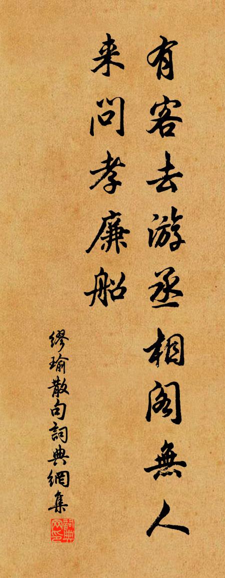 詩詞名句歷史字典書法欣賞書法字典國語詞典說文解字康熙字典古漢語字典標 題 作 者 詩 句 句作者:繆瑜 朝代:宋代句原文有客去游丞相閣,無人來問孝廉船。詩詞問答問:句的作者是誰?答:繆瑜問:句寫於哪個朝代?答:宋代繆瑜句書法欣賞句書法作品詩詞推薦讀史趙文〔宋代〕夾寨功名節節奇,門高事起更堪悲。身亡家破英雄笑,恰似伶官戲罷時。聞鳥聲有感陸游〔宋代〕流年冉冉去無情,日夜溪頭布穀聲。城郭雖存人換盡,令威應悔學長生。與團圓/喜團圓佚名〔宋代〕絞綃霧縠,沒多重數,緊擬偷憐。孜孜覷著,算前生、只結得眼因緣。眼是心媒,心為情本,里外勾連。天還有意西湖舊夢汪元量〔宋代〕月香水影逋梅白,雨色晴光坡柳青。一箇銷金鍋子裡,舞裾歌扇不曾停。頌古一百二十一首釋宗杲〔宋代〕天地同根伸一問,未曾抬步已亡家。無陰陽處華重發,玉本無瑕卻有瑕。華亭十詠陵琩養漁池唐詢〔宋代〕代異人亡久,滮池即舊居。未移當日地,無復故時魚。蒲藻依稀在,風波浩蕩餘。水濱如可問,一為訪庭除。雨中花王哲〔元代〕金菊初開,銀蟾漸顯,新*皓色為儔。綻清芳空外,素魄深秋。便謹按中央雅致,又應當、望夜圓周。稱予家賞玩補樂歌十首雲門元結〔唐代〕玄雲溶溶兮,垂雨濛濛;類我聖澤兮,涵濡不窮。玄雲漠漠兮,含映逾光;類我聖德兮,溥被無方。送鄭吏部出使二首曹勛〔宋代〕聖主東南眷念勞。繡衣行部輟名曹。喜尋物外人多竺,應遇山中相有陶。丹筆不搖吟筆健,頹風頓革古風高。如何寄蕭冰崖練橘里黃立軒吳浚〔宋代〕破夢金川月,回頭玉樹風。煙村涵暮紫,霜葉顫晴紅。謀國諸侯在,忘年古道同。乾坤雲一片,吾意未終窮。送王梅州二首劉克莊〔宋代〕禍始自三槍,菑猶被一方。帝將安渤海,君肯薄淮陽。老手何憂斬,新眉尚費妝。漢庭褒郡最,蚤晚入為郎。桐李嶠〔唐代〕孤秀嶧陽岑,亭亭出眾林。春光雜鳳影,秋月弄圭陰。高映龍門迥,雙依玉井深。不因將入爨,誰謂作鳴琴。失調名張耒〔宋代〕手把合歡彩索,殷勤微笑殢檀郎。低低告,不圖系腕,圖系人腸。次韻杏花三首王安石〔宋代〕心憐紅蕊與移栽,不惜年年糞壤培。風雨無時誰會得,欲教零亂強催開。小溪道中樓鑰〔宋代〕後衕環村盡遡游,鳳山寺下換輕舟。舟人努力雙篙急,引得清溪逆岸流。龍淵釋紹曇〔宋代〕未施爪距攫風雲,玉鑒光寒不染塵。昨夜寒濤輕蘸月,賺他無限抉珠人。和葉宋英陳杰〔宋代〕風葉靜千林,歸根深復深。江山皆本色,天地見初心。苓少和冰斸,梅殘帶雪吟。人間正彫落,春在二陽臨。時升見惠芍藥三朵作詩謝之二首郭印〔宋代〕百花零落已成塵,聞道君家解擊春。艷質嬌嬈應見慣,肯分粲者遺愁人。送暢當赴山南幕盧綸〔唐代〕含情脫佩刀,持以佐賢豪。是月霜霰下,伊人行役勞。事將名共易,文與行空高。去矣奉戎律,悲君為我曹。虞美人(壬午中秋雨後不見月)劉辰翁〔宋代〕濕雲待向三更吐。更是沈沈雨。眼前兒女意堪憐。不說明朝後日、說明年今年十七望。當年知道晴三鼓。便似佳期名句推薦酌酒以自寬,舉杯斷絕歌路難。鮑照《擬行路難·其四》 不見又思量,見了還依舊。李之儀《謝池春·殘寒銷盡》 掩柴扉,謝他梅竹伴我冷書齋。沈自晉《玉芙蓉·雨窗小詠》 莫之大禍,起於須臾之不忍,不可不謹。王永彬《圍爐夜話·第一六六則》 淡淡橫朝煙,脈脈深秋思。劉道著《湘江秋曉》 落花人獨立,微雨燕雙飛。晏幾道《臨江仙·夢後樓台高鎖》 恐斷紅、尚有相思字,何由見得。周邦彥《六醜·落花》 落盡梨花春又了。滿地殘陽,翠色和煙老。梅堯臣《蘇幕遮·草》 南陵水面漫悠悠,風緊雲輕欲變秋。杜牧《南陵道中 / 寄遠》 朝落暮開空自許,竟無人解知心苦晏幾道《蝶戀花·笑艷秋蓮生綠浦》
