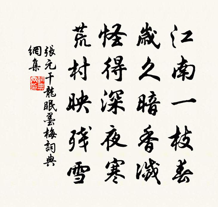 江南一枝春,歲久暗香滅。怪得深夜寒,荒村映殘雪。