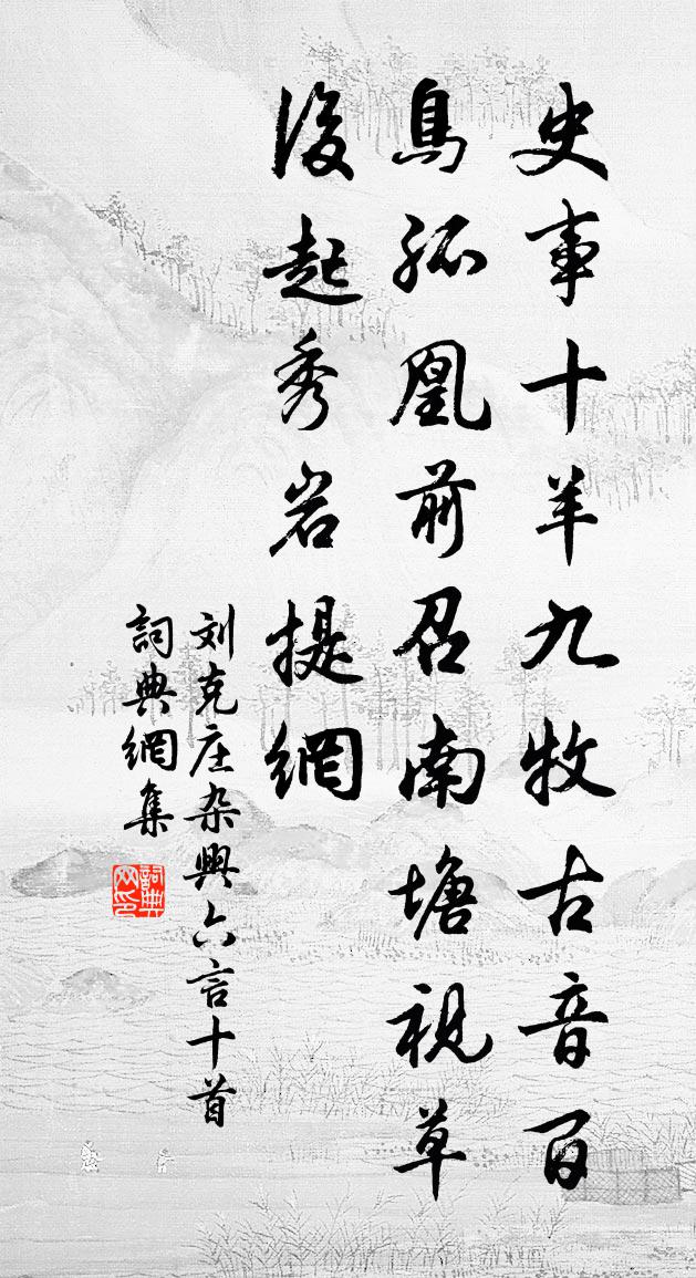 史事十羊九牧,古音百鳥孤凰。前召南塘視草,後起秀岩提網。