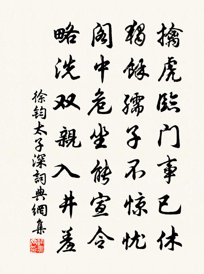 詩詞名句歷史字典書法欣賞書法字典國語詞典說文解字康熙字典古漢語字典標 題 作 者 詩 句 太子深作者:徐鈞 朝代:宋代太子深原文擒虎臨門事已休,獨餘孺子不驚憂。閣中危坐能宣令,略洗雙親入井羞。詩詞問答問:太子深的作者是誰?答:徐鈞問:太子深寫於哪個朝代?答:宋代徐鈞太子深書法欣賞太子深書法作品詩詞推薦同沈守勸農十首陳造〔宋代〕門橫石瀨漱潺湲,兩兩人家柳映門。花影灩紅山影碧,客行疑到武陵原。西江月沈瀛〔宋代〕五馬人生最貴,金陵自古繁華。光懸相印擁朱牙。況值邊庭閒暇。滿勸東西碧玉,高燒麗燭紅葩。詔黃新濕字如鴉詠畫屏風詩 七庾信〔南北朝〕高閣千尋起。長廊四注連。歌聲上扇月。舞影入琴弦。澗水纔窗外。山花即眼前。但願長歡樂。從今盡百年。臨江仙晏幾道〔宋代〕淺淺餘寒春半,雪消蕙草初長。煙迷柳岸舊池塘。風吹梅蕊鬧,雨細杏花香。月墮枝頭歡意,從前虛夢高唐。覺來送楊元光隨編修李秀才出守衡陽程公許〔宋代〕逃虛喜聽足音跫,況是鄉人萬里逢。江海茫茫天盡處,又攜書劍入湘中。仲微相過把酒有感宋祁〔宋代〕故人當止酒,今夕喜銜盃。事與朱顏改,年將素領來。鹿車君偃蹇,鶴祿我裴回。紬史餘三擿,為郎愧一台。洛吟韓退之舊業李復〔宋代〕城南舊業訪韓符,門掩荒榛老木疏。陰洞尚寒難駐客,短茅初葺未成居。崩崖亂竹從欹倒,糝逕飛花不掃除。舊集呈唐德輿兼寄呈可久三首趙蕃〔宋代〕敬作沙隨問,歸來安穩不。一官成棄卻,微恙想今瘳。詩篋猶堪倒,錢囊不用謀。更思從二老,何日具扁舟。題慧山泉佚名〔唐代〕石脈綻寒光,松根噴曉涼。注瓶雲母滑,漱齒茯苓香。野客偷煎茗,山僧借淨床。安禪何所問,孤月在中央。送王伯初通判婺州梅堯臣〔宋代〕隱侯沒來久,八詠無繼作。星宿少光芒,虹霓掛樓角。邇來數百年,才彥森台閣。君平請是行,有意在岩壑。手持周祀五帝歌 配帝舞庾信〔南北朝〕四時鹹一德。五氣或同論。猶吹鳳凰管。尚對梧桐園。器圜居士厚。位總配神尊。始知今奏樂。還用我雲門。江州周寺丞泳夷亭蘇轍〔宋代〕行過廬山不得上,湓江城邊一惆悵。羨君山下有夷亭,千岩萬壑長相向。山中李生好讀書,出山作郡山前居。手開螢唐彥謙〔唐代〕日下蕪城莽蒼中,濕螢撩亂起衰叢。寒煙陳後長門閉,夜雨隋家舊苑空。星散欲陵前檻月,影低如試北窗風。羈人自述陸游〔宋代〕古井無由浪,浮雲一掃空。詩書修孔業,場圃嗣豳風。懼在饑寒外,憂形寤寐中。吾年雖日逝,猶冀有新功。後天易吟三十首方回〔宋代〕彖辭六十四,三十四方貞。幹事匪正固,難求心外亨。效陶彭澤·一夢倏已盡司馬扎〔唐代〕一夢倏已盡,百年如露草。獨有南山高,不與人共老。尊中貯靈味,無事即醉倒。何必鳴鼓鍾,然後樂懷抱。輕波有贈鹿忽生麛承劉學錄惠詩以韻謝之陳宓〔宋代〕{上鹿下侖}鹿方辭贈,秋來忽有麛。暫能娛市隱,終遣傍雲棲。幽事漁樵詫,佳篇李杜齊。行看雙挺角,未羨駭宮詞張公庠〔宋代〕月華浮動上階棱,侍宴歸來掩繡屏。子夜酒醒蘭燭暗,碧紗窗外度流螢。【中呂】普天樂關漢卿〔元代〕崔張十六事(十六首)普救姻緣西洛客說姻緣,普救寺尋方便。佳人才子,一見情牽。餓眼望將穿,饞口涎空咽。南鄉子榮諲〔宋代〕江上野梅芳。粉色盈盈照路傍。閒折一枝和雪嗅,思量。似個人人玉體香。特地起愁腸。此恨誰人與寄將。山館寂名句推薦精誠所加,金石為開。范曄《後漢書·列傳·光武十王列傳》 惡有釁,雖貴罰也。左丘明《國語·魯語·臧文仲請賞重館人》 葉落當歸根,雲沉久必起。錢嶫《憫黎詠》 卻道“天涼好個秋”!辛棄疾《醜奴兒·書博山道中壁》 君埋泉下泥銷骨,我寄人間雪滿頭。白居易《夢微之》 自見之謂明。韓非及後人《韓非子·喻老》 人生在勤,不索何獲。范曄《後漢書·列傳·張衡列傳》 莫道桑榆晚,為霞尚滿天。劉禹錫《酬樂天詠老見示》 相知無遠近,萬里尚為鄰。張九齡《送韋城李少府》 義人在上,天下必治。墨子《墨子·35章 非命(上)》