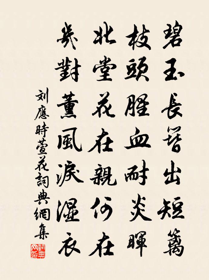 詩詞名句歷史字典書法欣賞書法字典國語詞典說文解字康熙字典古漢語字典標 題 作 者 詩 句 萱花作者:劉應時 朝代:宋代萱花原文碧玉長簪出短籬,枝頭腥血耐炎暉。北堂花在親何在,幾對薰風淚濕衣。詩詞問答問:萱花的作者是誰?答:劉應時問:萱花寫於哪個朝代?答:宋代劉應時萱花書法欣賞萱花書法作品詩詞推薦攜妓樂游張山人園蘇軾〔宋代〕大杏金黃小麥熟,墮巢乳鵲拳新竹。故將俗物惱幽人,細馬紅妝滿山谷。提壺勸酒意雖重,杜鵑催歸聲更速。酒闌送古之奇赴安西幕李端〔唐代〕疇昔十年兄,相逢五校營。今宵舉杯酒,隴月見軍城。堠火經陰絕,邊人接曉行。殷勤送書記,強虜幾時平。北園射堂新成詩庾信〔南北朝〕軒台聊可習。仙的不難登。轉箭初調筈。橫弓先望堋。驚心一鴈落。連臂兩猿騰。直知王濟巧。誰覺魏舒能。空心綠頭鴨長筌子〔元代〕雨初晴,江山景色新鮮。乍艷陽,春光美麗,見效原、芳草芊芊。睹梨花、輕籠淡月,聞松聲、冷和清泉。風細池陳橋行張憲〔元代〕唐宮夜視邈佶烈,憂民一念通天闕。 帝皇下射甲馬營,紫霧紅光掩明月。 殿前點檢作天子,方頤大口空誅死。下第後春日長安寓居三首薛能〔唐代〕一榜盡精選,此身猶陸沉。自無功讜分,敢抱怨尤心。暖陌開花氣,春居閉日陰。相知豈不有,知淺未知深。暫屈江神子(廣陵送王左丞赴闕)晁補之〔宋代〕舊山鉛槧倦棲遲。叩宸闈。向淮圻。五馬行春,初喜後車隨。太守風流容客醉,花壓帽,酒淋衣。隋宮煙外草萋萋泥溪洪咨夔〔宋代〕左計來行險,強名為愛奇。一家川(三個若)苴,三頓豆離萁。壓架龍門石,撐囊劍閣詩。扁舟歸計足,不問鶴和寶應野泊賀鑄〔宋代〕伏枕漳演後,維舟楚澤邊。筋骸非壯日,節物迫窮年。夜雨侵床漏,晨炊湊鼻煙。勞生我其分,十口亦飄然。次韻趙子野贈別陳造〔宋代〕白地倒海翻重湖,趙侯塗改插架書。石麟角犀清而腴,了知不是山澤臞。舌官齒商鳳將雛,一笑著我東郭竽。曹後雉帶箭韓愈〔唐代〕原頭火燒靜兀兀,野雉畏鷹出復沒。將軍欲以巧伏人,盤馬彎弓惜不發。地形漸窄觀者多,雉驚弓滿勁箭加。沖人題王伯畏清心堂汪炎昶〔宋代〕記語簡以遒,饒舌泄幽秘。洗盡闤闠腥,闡此林壑氣。日予炯靈台,頗已窺彷佛。聲利洶金鼓,耳目易烽燧。未用鶯穿柳王吉昌〔元代〕觀天能盡,向三山四海,氤氳風*。金木玄冥,雲聚一時,六卦火記潛進。七返功宜緊煉,丹質蕙蘭香陣。到此鬼得江西報六言十首劉克莊〔宋代〕羋姓公子哀郢,黍離大夫憫周。杜雲野老潛哭,谷謂寒儒浪愁。滿江紅(戊午八月十二日賦後圃早梅)吳潛〔宋代〕問信江梅,漸推出、紅苞綠萼。堪愛處,平生懷抱,歲寒為托。瘦骨皺皮猶老硬,孤標獨韻難描摸。怕東君、壓住柔桑陌曾幾〔宋代〕南陌綠成陰,園林正春老。能令蠶事辦,更遣鴞音好。祗奉天書六首真宗〔宋代〕運格熙盛,將封介丘。禮神之墟,瑞命殊尤。靈文薦降,丕右皇獻。聖心肅奉,永洽鴻休。贈米都知梁補闕〔唐代〕供奉三朝四十年,聖時流落髮衰殘。貪將樂府歌明代,不把清吟換好官。寄人二首崔道融〔唐代〕花上斷續雨,江頭來去風。相思春欲盡,未遣酒尊空。澹澹長江水,悠悠遠客情。落花相與恨,到地一無聲。苦牙動詩舒岳祥〔宋代〕身心自縛似芭蕉,安得凌風歷九霄。閒戶人隨春去老,倚闌花向雨中消。病牙臲卼活書板,童頂羸垂倒藥瓢。善謔名句推薦河水傾潑丈余,雞鳴犬吠滿城中。蒲松齡《地震》 玉慘花愁出鳳城,蓮花樓下柳青青。聶勝瓊《鷓鴣天·別情》 俯視洛陽川,茫茫走胡兵。李白《古風·其十九》 寂寂花時閉院門,美人相併立瓊軒。朱慶餘《宮詞 / 宮中詞》 西湖又還春晚,水樹亂鶯啼。仲殊《訴衷情·寶月山作》 富而不驕,貴而不舒。司馬遷《史記·五帝本紀》 其人雖已沒,千載有餘情。陶淵明《詠荊軻》 白日麗飛甍,參差皆可見。謝朓《晚登三山還望京邑》 賈傳自憐多感慨,東門何意泥孤虛。王惲《送姬仲實隱士北還》 念碎劈芳心,縈思千縷,贈將幽素,偷翦重雲。吳文英《風流子·黃鐘商芍藥》