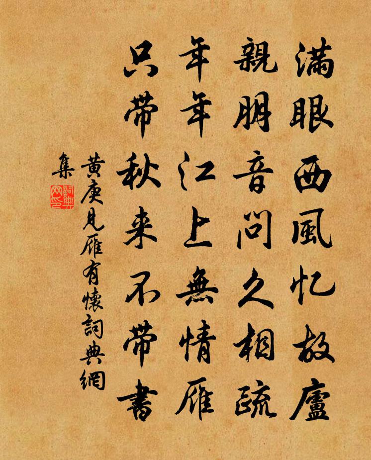 詩詞名句歷史字典書法欣賞書法字典國語詞典說文解字康熙字典古漢語字典標 題 作 者 詩 句 見雁有懷作者:黃庚 朝代:宋代見雁有懷原文滿眼西風憶故廬,親朋音問久相疏。年年江上無情雁,只帶秋來不帶書。詩詞問答問:見雁有懷的作者是誰?答:黃庚問:見雁有懷寫於哪個朝代?答:宋代黃庚見雁有懷書法欣賞見雁有懷書法作品詩詞推薦旅況葉茵〔宋代〕未慣秋情緒,客中方覺難。酒慳疏舊識,衣薄怯新寒。雨過浮雲濕,風來病葉乾。倚樓搔短鬢,一雁掠闌乾。春雲裴澄〔唐代〕漠漠復溶溶,乘春任所從。映林初展葉,觸石未成峰。旭日消寒翠,晴煙點淨容。霏微將似滅,深淺又如重。薄彩樵歌三首鄭起〔宋代〕上山斸山山丁登,下山嵌山山稜層。秋殘日暮歸來晚,茅檐洗腳月又明,明朝早入芙蓉城。答歐陽宅之周必大〔宋代〕安流咫尺異逾淮,有興何妨疊棹來。茗椀茅柴殊易耳,萍虀豆粥豈難哉。談鋒不怕通宵直,燕席寧辭逐日開。況是舟行青溪道中入歙十二首方回〔宋代〕青溪元是歙東鄉,吾祖於時肯寶黃。避地江南結廬處,同時鄰舍有嚴光。步下四望亭至東坡柳徑訪邠老不遇張耒〔宋代〕北下四望嶺,兩山中曠平。縈紆蟠徑術,迤靡分溝塍。林間樵汲路,壟外牛羊鳴。落景急晚舂,淺泥聞耦耕。余紅送魯卿之九江趙汝鐩〔宋代〕歸自瀟湘方半月,挑燈酌酒又分樣。掛帆秋晚江湖客,握手歲寒松柏心。湓浦水流清一派,香爐峰濕翠千尋。西風江南作(一作江上旅泊)張祜〔唐代〕楚塞南行久,秦城北望遙。少年花已過,衰病柳先凋。客淚收回日,鄉心寄落潮。殷勤問春雁,何處是煙霄。曉歌莊南傑〔唐代〕鵾雞哭樹星河轉,海上金烏翅如電。嫦娥斂發綰雲頭,玉女舒霞織天面。九土廚煙滿城邑,商洛隴頭車馬急。魏宮淳熙八年春帖子詞太上皇帝合六首崔敦詩〔宋代〕剪玉酥花細,盤金彩勝宜。六宮呈妙巧,春日頌春祺。雜詩五首張九齡〔唐代〕孤桐亦胡為,百尺傍無枝。疏陰不自覆,修乾欲何施。高岡地復迥,弱植風屢吹。凡鳥已相噪,鳳凰安得知。蘿蔦送退齋先生歸武夷林若存〔宋代〕我未識退齋,虛生七十載。一旦過諸途,未語心先拜。堂堂眉睫間,禮樂見三代。正塗日以荒,良心日以壞。偈頌一百二十三首釋祖欽〔宋代〕無解無結,猶是空中釘橛。有修有證,何異捕風捉月。朝天菊洪邁〔宋代〕但見荼醾能上架,那知甘菊解朝天。亭亭秀出風煙上,冷落東籬卻可憐。次韻馬駒父晚菊五絕喻良能〔宋代〕霧幌褰開秀色明,麴塵半臂亦多情。芳菲不擬親桃姊,蕭灑端宜齒石兄。木蘭花令蘇軾〔宋代〕元宵似是歡游好。何況公庭民訟少。萬家游賞上春台,十里神仙迷海島。平原不似高陽傲。促席雍容陪語笑。坐中【正宮】菩薩蠻侯正卿〔元代〕寄中寄情鏡中兩鬢皤然矣,心頭一點愁而已。清瘦仗誰醫?羈情只自知。【月照庭】半紙功名,斷送關山。雲渺渺和趙茂州即事六首郭印〔宋代〕所欲誰能矩不逾,人生七十在須臾。縱橫竅鄙張儀詐,懷卷終思寧武愚。幸有精神延短景,了無才力奪雄圖。手提病中即事三首王炎〔宋代〕附火膚革燥,遠火寒慘慘。坐臥置湯婆,稍覺兩足暖。抓搔不停手,苛癢殊未減。飲食固多忌,所幸能強飯。客至再呈仲庸裘萬頃〔宋代〕芳枝莫遣風吹折,要看枝頭千點雪。孤山疇昔盛開時,十里香颸飛不絕。蹇驢烏帽照霜顛,長吟竟日溪橋邊。自從名句推薦天子,兵強馬壯者當為之,寧有種耶!薛居正《舊五代史·後晉·列傳十三》 恨鐵不成鋼曹雪芹《紅樓夢·第九十六回》 仁人之於弟也,不藏怒焉,不宿怨焉,親愛之而已矣。孟子《孟子·萬章章句上·第三節》 天地之性,人為貴。 人之行,莫大於孝。孔子及其弟子《孝經·聖治》 淑氣催黃鳥,晴光轉綠蘋。杜審言《和晉陵陸丞早春遊望》 縱使文章驚海內,紙上蒼生而已。龔自珍《金縷曲·癸酉秋出都述懷有賦》 念天地之悠悠,獨愴然而涕下。陳子昂《登幽州台歌》 過橋分野色,移石動雲根。賈島《題李凝幽居》 永豐西角荒園裡,盡日無人屬阿誰。白居易《楊柳枝二首》 燈半昏時,月半明時。徐再思《折桂令·春情》