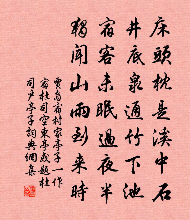 床頭枕是溪中石,井底泉通竹下池。宿客未眠過夜半,獨聞山雨到來時。