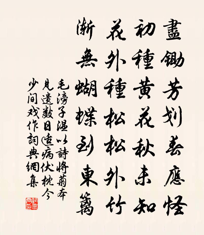 盡鋤芳劃春應怪,初種黃花秋未知。花外種松松外竹,漸無蝴蝶到東籬。