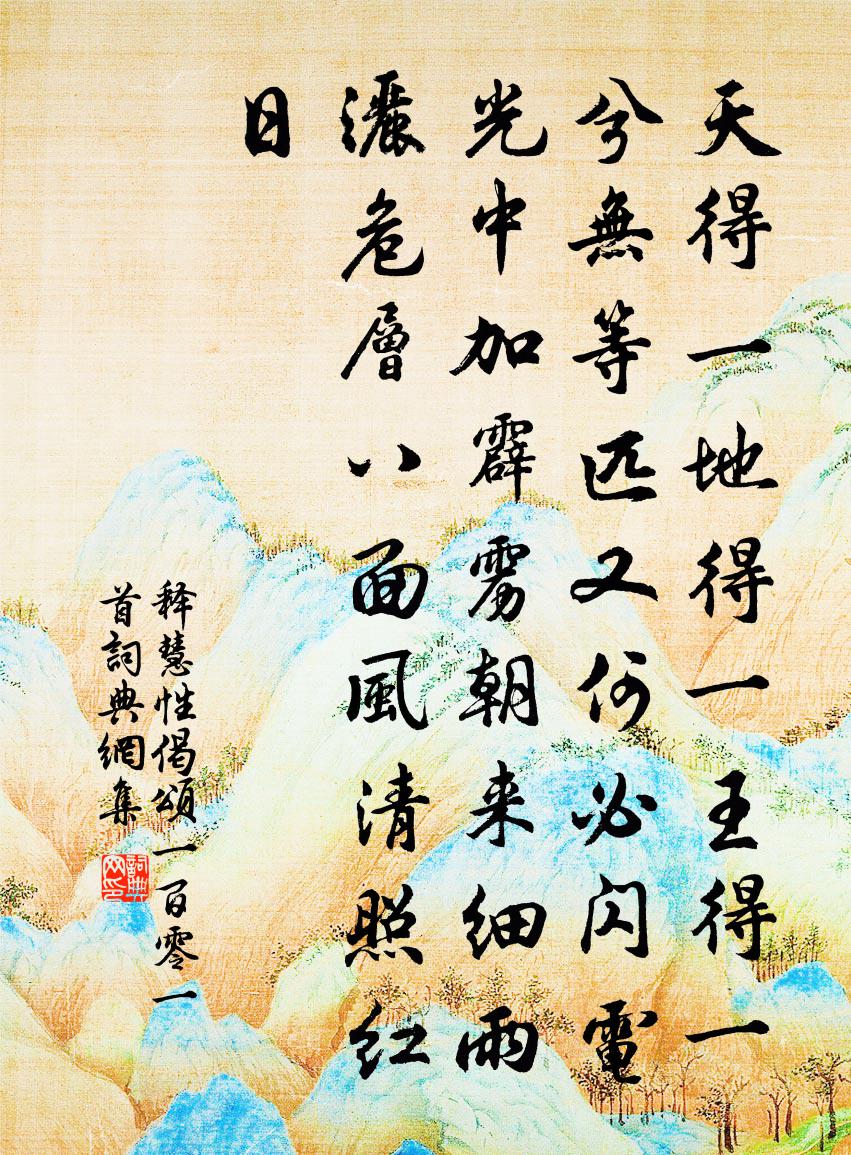 詩詞名句歷史字典書法欣賞書法字典國語詞典說文解字康熙字典古漢語字典標 題 作 者 詩 句 偈頌一百零一首作者:釋慧性 朝代:宋代偈頌一百零一首原文天得一,地得一,王得一兮無等匹,又何必,閃電光中加霹靂。朝來細雨灑危層,八面風清照紅日。詩詞問答問:偈頌一百零一首的作者是誰?答:釋慧性問:偈頌一百零一首寫於哪個朝代?答:宋代釋慧性偈頌一百零一首書法欣賞偈頌一百零一首書法作品詩詞推薦自賀陸游〔宋代〕胎髮茸茸綠映巾,歸耕猶是太平民。流觴內史招同社,扛鼎將軍與卜鄰。曾冠六鰲非俗吏,已開九秩是陳人。一杯浣溪沙(排悶)洪皓〔宋代〕喪亂佳辰不易攀。四逢寒食盡投閒。踏青無處想家山。麟殿阻趨陪內宴,萱堂遙憶侍慈顏。感時雙淚滴潺潺。寓懷陸游〔宋代〕蒼璧與黃琮,初非俗所貴,粲然薦繅藉,可對越天地。我豈賣餅兒,自衒三家市;持盤叫道邊,雖售無乃媿!文章和仰菴池上梅韻王柏〔宋代〕窗外梅兄不可無,山人一見兩眉舒。江頭千樹應難得,池上數根宜有餘。蟾魄浮香無定相,虬枝壓水可常居。只愁送真西山赴召王邁〔宋代〕一朝三命下金鑾,獨有先出山處難。學術顏曾千載上,行藏呂范二公間。莫言一木難支廈,須向中流力障瀾。愛助偈十三首釋慧空〔宋代〕雪峰五月五日,不假神符妙術。只有頂門一錐,鐵佛也須汗出。送羅與敬歸西昌劉永之〔元代〕石龍磯畔多芳草,遊子憶家春已老。水北楊花撲地飛,旁人漫道飛花好。愛子不忍別,送子到水濆。青天孤影飛黃題屏風墨梅二首項安世〔宋代〕一段西山雪,中含太古梅。無香亦無色,免被百花猜。減字木蘭花(琵琶亭林守、王倅送別)張孝祥〔宋代〕江頭送客。楓葉荻花秋索索。弦索休彈。清淚無多怕濕衫。故人相遇。不醉如何歸得去。我醉望歸。煙滿空江月滿醉中得上都親友書以予停俸多時憂…乘酒興詠而報之白居易〔唐代〕頭白醉昏昏,狂歌秋復春。一生耽酒客,五度棄官人。異世陶元亮,前生劉伯倫。臥將琴作枕,行以鍤隨身。歲要聞裴秀才迪吟詩因戲贈王維〔唐代〕猿吟一何苦,愁朝復悲夕。莫作巫峽聲,腸斷秋江客。賀殷游二舍人入翰林、江給事拜中丞徐鉉〔唐代〕清晨待漏獨徘徊,霄漢懸心不易裁。閣老深嚴歸翰苑,夕郎威望拜霜台。青綾對覆蓬壺晚,赤棒前驅道路開。猶有偈頌二十五首釋如淨〔宋代〕霜風號肅殺,霜葉墮蕭颾。唯有玲瓏岩,崔嵬望轉高。送劉糾曹梅堯臣〔宋代〕溪邊前日君辭我,江上今朝我送君。自去蘆洲寄訊息,故人猶在武昌軍。甑山趙友直〔宋代〕湖心一凸起金巒,舉目渾如甑底看。偃月蒼松多少松,敲風翠竹兩三竿。石頭苔蘚痕常濕,葉底楊梅味帶酸。誰學瑞鶴仙(次宇文總領韻)京鏜〔宋代〕鴛行舊儔侶。問底事、遲回西州西處。閒居久如許。相鄰翁對飲,詩人聯句。夤緣會遇。過高軒、相逢喜舞。正菊萬州下岩二首黃庭堅〔宋代〕空岩靜發鐘磬響,古木倒掛藤蘿昏。莫道蒼崖鎖靈骨,時應持鉢到諸村。梅花方岳〔宋代〕枯梢橫出竹疏疏,挾雪吹香夢自孤。立到夜深難著語,怕渠去說與林通。箕山歐陽修〔宋代〕朝下黃蘆坂,夕望箕山雲。緬懷巢上客,想彼岩中人。弱歲慕高節,壯年嬰世紛。漱流羨潁水,振衣嗟洛塵。空祠吳郡王冷泉圖贊宋高宗〔宋代〕富貴不驕,戚畹稱賢。掃除膏粱,放曠林泉。滄浪濯足,風度蕭然。國之元舅,人中神仙。名句推薦沾衣欲濕杏花雨,吹面不寒楊柳風。志南《絕句》 金吾不禁夜,玉漏莫相催。蘇味道《正月十五夜》 雪照山城玉指寒,一聲羌管怨樓間。劉著《鷓鴣天·雪照山城玉指寒》 用兵之道,先勝後戰。陳壽《三國志·魏書·荀彧攸賈詡傳》 脫衣換得商山酒,笑把離騷獨自傾。王禹偁《清明日獨酌》 衝波突出人齊譀,躍浪爭先鳥退飛。盧肇《競渡詩 / 及第後江寧觀競渡寄袁州剌史成應元》 聰明睿智,守之以愚李昉、李穆、徐鉉《太平御覽·文部·卷六》 薄晚西風吹雨到。明朝又是傷流潦。王國維《蝶戀花·百尺朱樓臨大道》 立盡黃昏淚幾行,一片鴉啼月。夏完淳《卜運算元·秋色到空閨》 思君如流水,何有窮已時。徐幹《室思》