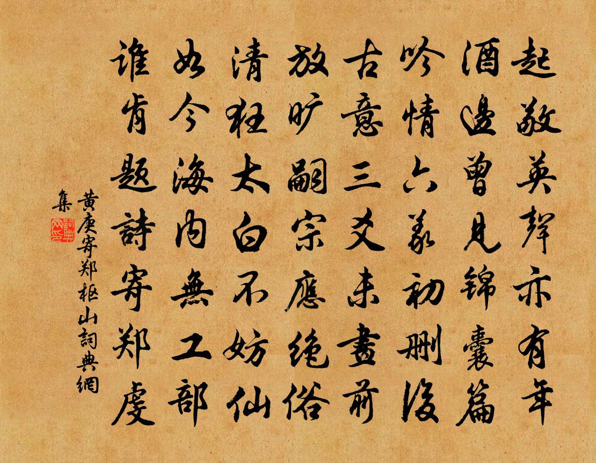 詩詞名句歷史字典書法欣賞書法字典國語詞典說文解字康熙字典古漢語字典標 題 作 者 詩 句 寄鄭樞山作者:黃庚 朝代:宋代寄鄭樞山原文起敬英聲亦有年,酒邊曾見錦囊篇。吟情六義初刪後,古意三爻未畫前。放曠嗣宗應絕俗,清狂太白不妨仙。如今海內無工部,誰肯題詩寄鄭虔。詩詞問答問:寄鄭樞山的作者是誰?答:黃庚問:寄鄭樞山寫於哪個朝代?答:宋代黃庚寄鄭樞山書法欣賞寄鄭樞山書法作品詩詞推薦春日瓶花張埴〔宋代〕鳥鳴木陰深,魚動陂水漫。燕坐南窗下,欣然得幽伴。盈盈菩薩面,一莞生几案。恍如空墮落,著我丈室看。地偏泌生日二首陳著〔宋代〕為學須知次第功,四書為本要精通。不須妄起功名想,立得身時祿在中。玉燭花劉兼〔唐代〕裊裊香英三四枝,亭亭紅 * 階墀。正當晚檻初開處,卻似春闈就試時。少女不吹方熠爚,東君偏惜未離披。夜深翠微寺葉秀髮〔宋代〕茫茫宇宙幾分離,晚識真人歷數歸。五閏都無半義土,清風千古一 * 。金光洞陳岩〔宋代〕神剜鬼劃劇幽深,門外藤蘿淺結陰。洞裡金仙十年坐,湛然認得本來心。子溫以詩將菊本見遺數日適病伏枕今少間戲作毛滂〔宋代〕盡鋤芳劃春應怪,初種黃花秋未知。花外種松松外竹,漸無蝴蝶到東籬。法曲第二(小石調)柳永〔宋代〕青翼傳情,香徑偷期,自覺當初草草。未省同衾枕,便輕許相將,平生歡笑。怎生向、人間好事到頭少。漫悔懊。寶墨亭蘇軾〔宋代〕山陰不見換鵝經,京口空傳瘱鶴銘。瀟灑謫仙來作郡,風流太守為開亭。兩篇玉蕊塵初滌,四體銀鉤跡尚青。我久呈呂使君二首方回〔宋代〕紛紛{衣中加八}{衣中加八}笑儒酸,獨愛虀鹽遠綺紈。國手文章無敵手,將壇家世上詩壇。海艘蕩寇鯨波靜,贈道友陸游〔宋代〕二杯兀兀復騰騰,服氣燒丹總不能。借問生涯在何許,孤舟風雨伴漁燈。經筵徹章物賜詩卷王與鈞〔宋代〕一種寒梅白玉條,回臨村路傍溪橋。應緣近水花先發,疑是經春雪未消。張斯立遂州司理梅堯臣〔宋代〕自身買馬箠,為婦置冪{上四下離}。將出鹹陽門,同涉蜀道危。疇昔未祿仕,日夕講書詩。不能青雲高,乃作黃題義門胡氏華林書院師禎〔宋代〕滿架高峰隱史書,英儒冠蓋會仙居。雲霞滿屋光難掩,松柏數庭景有餘。累世子孫傳孝義,一時旌表在門閭。要知登謝客岩林景熙〔宋代〕巀嶭鎮九斗,贔屓挾五丁。飛霞適何來,縹緲開殊庭。永懷謝康樂,坐嘯山水城。曠代得真契,登臨有餘情。松風鷓鴣天(和陳景衛憶西湖)胡銓〔宋代〕一憶西湖太瘦生。十年不到夢曾行。空濛山色煙霏晚,淡沲湖光霧縠輕。芳草遠,暮雲平。雨餘空翠入簾明。夢回懷故山寄賈島馬戴〔唐代〕心偶羨明代,學詩觀國風。自從來闕下,未勝在山中。丹桂日應老,白雲居久空。誰能謝時去,聊與此生同。贈女冠暢師秦觀〔宋代〕瞳人剪水腰如束,一幅烏紗裹寒玉。飄然自有姑射姿,回看粉黛皆塵俗。霧合雲窗人莫窺,門前車馬任東西。禮罷晚過常州楊萬里〔宋代〕常州曾作兩年住,一別重來十年許。岸頭楊柳記得無,總是行春繫船處。自笑恍如丁令威,老懷成喜亦成悲。人民春日即事五首舒邦佐〔宋代〕正晝春風自展扉,雙雙燕子望巢飛。楊花卻是元無定,吹落南鄰不肯歸。枕上四首呈子景舒劉宰〔宋代〕弦歌容與倦將迎,五斗看來一羽輕。若也兒曹如此意,可容千載擅清名。名句推薦鄉書何處達?歸雁洛陽邊。王灣《次北固山下》 長江一帆遠,落日五湖春。劉長卿《餞別王十一南遊》 斜日更穿簾幕,微涼漸入梧桐。晏殊《破陣子·燕子欲歸時節》 不足於行者,說過;不足於信者,誠言。荀子《荀子·大略》 春風試手先梅蕊,頩姿冷艷明沙水。趙令畤《菩薩蠻·春風試手先梅蕊》 賢者以其昭昭,使人昭昭;今以其昏昏,使人昭昭。孟子《孟子·盡心章句下·第二十節》 今日獨來香徑里,更無人跡有苔錢。韓偓《寒食日重遊李氏園亭有懷》 一身虜雲外,萬里胡天西。岑參《早發焉耆懷終南別業》 是以聖人不期修古,不法常可,論世之事,因為之備。韓非及後人《韓非子·五蠹》 幸遇三杯酒好,況逢一朵花新。朱敦儒《西江月·世事短如春夢》