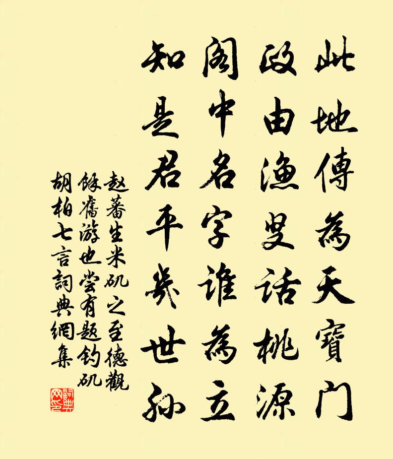 詩詞名句歷史字典書法欣賞書法字典國語詞典說文解字康熙字典古漢語字典標 題 作 者 詩 句 生米磯之至德觀余舊遊也嘗有題釣磯胡柏七言作者:趙蕃 朝代:宋代原文此地傳為天寶門,政由漁叟話桃源。閣中名字誰為立,知是君平幾世孫。詩詞問答問:《生米磯之至德觀余舊遊也嘗有題釣磯胡柏七言》的作者是誰?答:趙蕃問:該詩寫於哪個朝代?答:宋代書法欣賞生米磯之至德觀余舊遊也嘗有題釣磯胡柏七言書法作品詩文賞析【原題】:生米磯之至德觀余舊遊也嘗有題釣磯胡柏七言二絕句庚子夏五月八日再來道士復向余乞賦仙洲平遠濯風涌月四題因各與一首詩詞推薦挽張元常葬母夫人二首宋祁〔宋代〕象服流恩貴,輕輿就養榮。新成大家賦,經餉潁封羹。過隙誠難駐。藏舟自不驚。子賢能順禮,三月祔佳城。點絳唇向子諲〔宋代〕病臥秋風,懶尋杯酒追歡宴。夢遊都甸。不改當年觀。故舊雕零,天下今無半。煙塵遠。淚珠零亂。怕問隨陽雁。四月十三日度鄱陽湖楊萬里〔宋代〕泊舟番君湖,風雨至夜半。求濟敢自必,苟安固所願。孤愁知無益,暫忍復永嘆。夜久忽自睡,倦極不知且。舟人訪費山人姜夔〔宋代〕稻叢茁茁欲齊肩,楊柳僛僛不蔽蟬。忽憶石頭城下路,槿花斜壓釣魚船。南歌子權無染〔宋代〕一點檀心紫,千重粉翅光。薔薇水浸淡鵝黃。別是一般風韻、斷人腸。有艷難欺雪,無花可此香。尋思無計與幽芳歸途趙蕃〔宋代〕招要非故約,談笑偶然期。假日寧憂夜,徐行不用馳。吾曹欣窈窕,童騎苦逶迤。罷酌余樽酒,催成未了詩。事雖彥秫權郡大夫相邀昭亭以病酒不果往得所示佳李彌遜〔宋代〕五馬行春路,松行舊不斜。醉眠方夢草,游騎想穿花。訪古千秋暗,逃禪百慮賒。歸來傳麗句,字字敵春華。默記淮南王事宋庠〔宋代〕室餌初嘗謁帝晨,宮中雞犬亦登真。可憐南面稱孤貴,才作仙家守廁人。雜興張鎡〔宋代〕龍泉伴太阿,潛伏如幾秋。光氣不容揜,夜夜沖鬥牛。一朝堀青苔,雙龍獲兼收。拭以華陰上,百神見之愁。若使柳夫人輓詞林季仲〔宋代〕風俗日雲薄,典刑終未泯。請看列女傳,今有柳夫人。色養金章貴,褒封鈿軸新。淒涼板輿路,卻見小梅春。同王勝之游蔣山蘇軾〔宋代〕到席郡席不暖席,居民空席惘然。好山席無十里,遺恨恐他年。欲款南朝寺,同登北郭船。朱門收畫戟,紺宇出青武林書事九首方回〔宋代〕金石典古呂伯可,風霜清聳方巨山。尚見八音合韶樂,早能九鼎象神奸。得江西報六言十首劉克莊〔宋代〕□弓已耕甫里,雙旄昔牧宜春。虎過有殘聚落,鶴歸無舊人民。頌釋印肅〔宋代〕一心圓持種種心,信心諸境絕追尋。此中無分應難到,便好回光免陸沉。吳大監輓詞樓鑰〔宋代〕庠校聲名早,朝廷譽望尊。忠言如日皎,笑語若春溫。四擁皇華節,屢登金馬門。用才終不盡,流慶在仍昆。再次韻寄楊宰陳造〔宋代〕小家作活魚脫淵,凶歉之備渠能先。勞勤頗似抱瓮叟,安得心數如計然。人方渴羌欲沽水,龍公睡足那容已。怒卷果實陳堯叟〔宋代〕甜於糖蜜軟於酥,閬苑山頭擁萬株。葉底深藏紅玳瑁,枝邊低綴碧珊瑚。雜詠七言十首劉克莊〔宋代〕聰明不及前時久,惟鼻猶能嗅臭香。老去無端都塞了,不分鮑肆與蘭房。賀外舅轉官真德秀〔宋代〕黃山桃李鬧春風,曾見先生化育中。輕界力行師孟子,井田有意復周公。幾年凋俗成佳邑,一旦新綸賞舊功。明主聽彈風入松闋贈楊補闕王昌齡〔唐代〕商風入我弦,夜竹深有露。弦悲與林寂,清景不可度。寥落幽居心,颼飀青松樹。松風吹草白,溪水寒日暮。聲意名句推薦百草千花寒食路,香車系在誰家樹。馮延巳《鵲踏枝·幾日行云何處去》 海棠不惜胭脂色,獨立濛濛細雨中。陳與義《春寒》 烏啼隱楊花,君醉留妾家。李白《楊叛兒》 多少新亭揮淚客,誰夢中原塊土。劉克莊《賀新郎·送陳真州子華》 人散市聲收,漸入愁時節。劉克莊《生查子·元夕戲陳敬叟》 人處疾則貴醫。韓非及後人《韓非子·解老》 相思相見知何日?此時此夜難為情!李白《三五七言 / 秋風詞》 今古河山無定據。納蘭性德《蝶戀花·出塞》 不凡之子,必異其生;大德之人,必得其壽。程登吉《幼學瓊林·卷二·老幼壽誕》 舊時王謝堂前燕,飛入尋常百姓家。劉禹錫《烏衣巷》