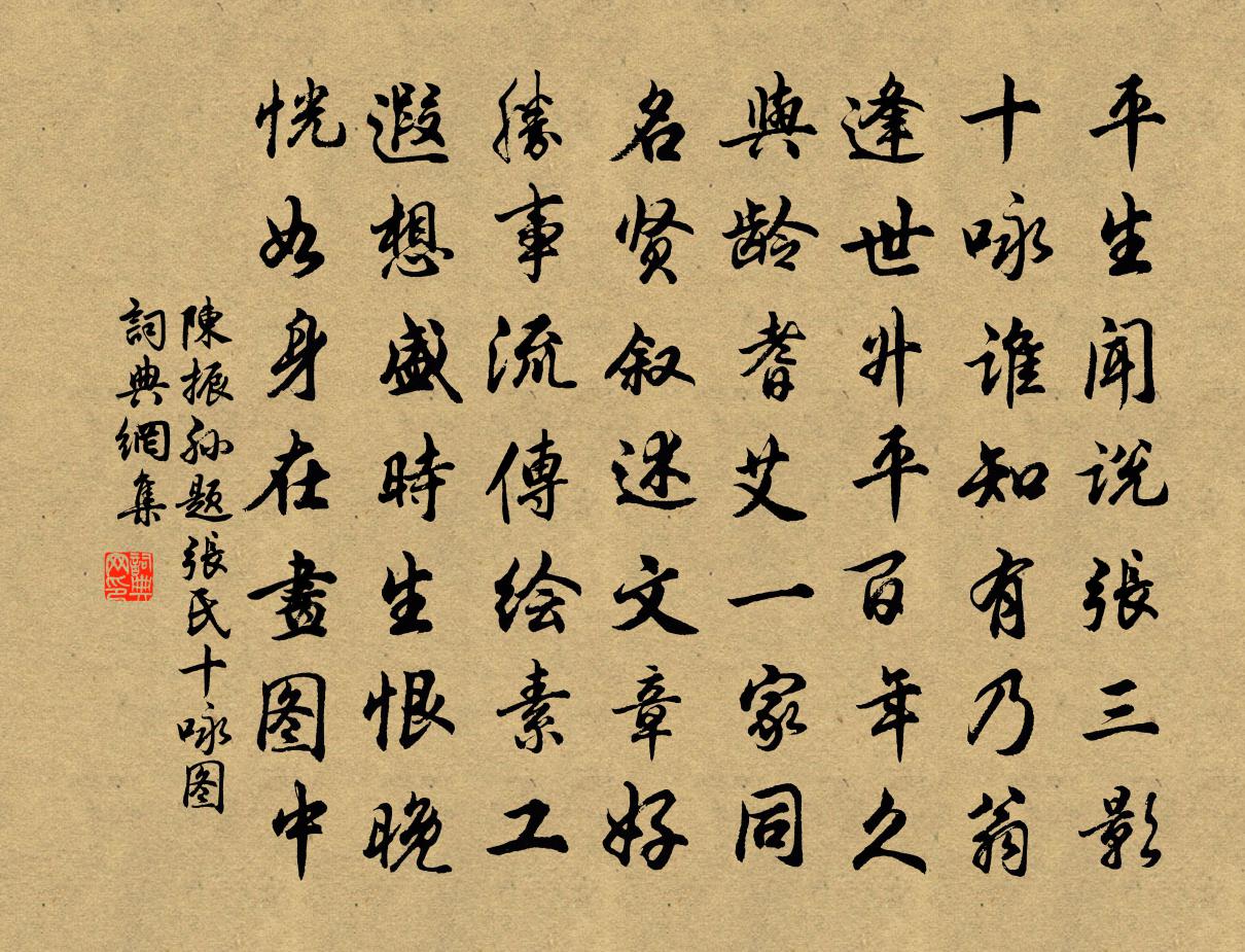 詩詞名句歷史字典書法欣賞書法字典國語詞典說文解字康熙字典古漢語字典標 題 作 者 詩 句 題張氏十詠圖作者:陳振孫 朝代:宋代題張氏十詠圖原文平生聞說張三影,十詠誰知有乃翁。逢世昇平百年久,與齡耆艾一家同。名賢敘述文章好,勝事流傳繪素工。遐想盛時生恨晚,恍如身在畫圖中。詩詞問答問:題張氏十詠圖的作者是誰?答:陳振孫問:題張氏十詠圖寫於哪個朝代?答:宋代陳振孫題張氏十詠圖書法欣賞題張氏十詠圖書法作品詩詞推薦再和劉克莊〔宋代〕從來糞土輕胡趙,晚視渠儂直唯阿。時與客聯烘虱句,斷無人聽飯牛歌。掛冠耄及收身晚,賜扇恩深取數多。周易題報恩寺白居易〔唐代〕好是清涼地,都無系絆身。晚晴宜野寺,秋景屬閒人。淨石堪敷坐,寒泉可濯巾。自慚容鬢上,猶帶郡庭塵。次韻程帥游習池三首陳造〔宋代〕牙纛猶容後乘追,枕書不出此何時。香飄玳席千花塢,影倒粧光百子池。詩句肯藏捫虱手,仙曹容著牧羊兒。回思寄柏學士林居杜甫〔唐代〕自胡之反持干戈,天下學士亦奔波。嘆彼幽棲載典籍,蕭然暴露依山阿。青山萬里靜散地,白雨一洗空垂蘿。亂代題浯溪趙某〔宋代〕元頌顏書□□□,好風吹我過三吾。倚空□□煙雲□,□古興亡草木枯。讀盡□□留□□,□□□□較錙銖。答謝諮議謝靈運〔南北朝〕感昔戎行。遠暨西垠。僶俛於役。不敢告勤。爾亦同事。契闊江濆。庶同支離。攘臂解紛。和蒲大受王園泛舟用文老韻郭印〔宋代〕晚風江色佳,水碧煙冥冥。聊持一壺酒,落日相與傾。浮榮何預人,於焉樂此生。往來信扁舟,恍若空中行。太一奉祠夜即事宋庠〔宋代〕天極三元會,星精五福游。神光來集夜,邦祝此迎秋。導獻森威節,嚴真默翠幬。醴觴瓊借液,牲俎麵為羞。蕊簡兩絕句陳與義〔宋代〕西風吹日弄晴陰,酒罷三巡湖海深。岳陽樓上登高節,不負南來萬里心。頌古八首釋元聰〔宋代〕明明道不說,此理憑誰識。春風一陣來,滿徑花狼藉。雪後守之家梅未開,呈宗偉范成大〔宋代〕瓦溝凍殘雪,檐溜粘輕冰。破寒一竿日,春隨人意生。端葉再三白,南枝尚含情。定知司花女,未肯嫁娉婷。官居偈頌一百零二首釋慧遠〔宋代〕人天道大梅陽老,佛祖功恢臨濟宗。赤手擘開無字印,冤家何處不相逢。月蝕方岳〔宋代〕老兔酣眠一夜霜,妖蟆健啖未渠央。人間今欠玉川子,生語聱牙滿世香。七月二十二日遣懷王炎〔宋代〕寥落求鳳凰,淒涼舐犢牛。有時追往事,無處著清愁。德山贊釋普度〔宋代〕擔疏鈔行腳,大負不平氣。失腳到龍潭,未愜平生意。吹滅紙燈時,拶著娘生鼻。便將一炬火,燒卻閒故紙。從茲閒居雜詠三十二首親友陳淳〔宋代〕友者人之輔,以善相切磨。不取直諒聞,其如損德何。郵亭張繼〔唐代〕雲淡山橫日欲斜,郵亭下馬對殘花。自從身逐征西府,每到開時不在家。山中寄詩友杜荀鶴〔唐代〕山深長恨少同人,覽景無時不憶君。庭果自從霜後熟,野猿頻向屋邊聞。琴臨秋水彈明月,酒就東山酌白雲。仙桂陳宮釋智圓〔宋代〕龍盤龍踞景堪尋,王氣消亡信禍淫。結綺臨春何處是,數聲啼鳥暮煙深。師伯渾自所居東山來賦詩相示用韻酬之晁公溯〔宋代〕東山鳴鳳在九宵,高翔千仞那可招。胡為相顧肯下集,竹實醴泉吾用饒。春來淘河哧飛燕,泉中老翁誰復見。崇桃名句推薦逢人且說三分話,未可全拋一片心。佚名《增廣賢文·上集》 粽包分兩髻,艾束著危冠。陸游《乙卯重五詩》 願妾身為紅菡萏。年年生在秋江上。歐陽修《漁家傲·近日門前溪水漲》 活水源流隨處滿,東風花柳逐時新。于謙《觀書》 蕭蕭江上荻花秋,做弄許多愁。賀鑄《眼兒媚·蕭蕭江上荻花秋》 義膽包天,忠肝蓋地,四海無人識。施耐庵《念奴嬌·天南地北》 君子藏器於身,待時而動佚名《易傳·繫辭傳下·第五章》 泛樓船兮濟汾河,橫中流兮揚素波。劉徹《秋風辭》 桑柘影斜春社散,家家扶得醉人歸。王駕《社日》 朝真暮偽何人辨,古往今來底事無。白居易《放言五首·其一》