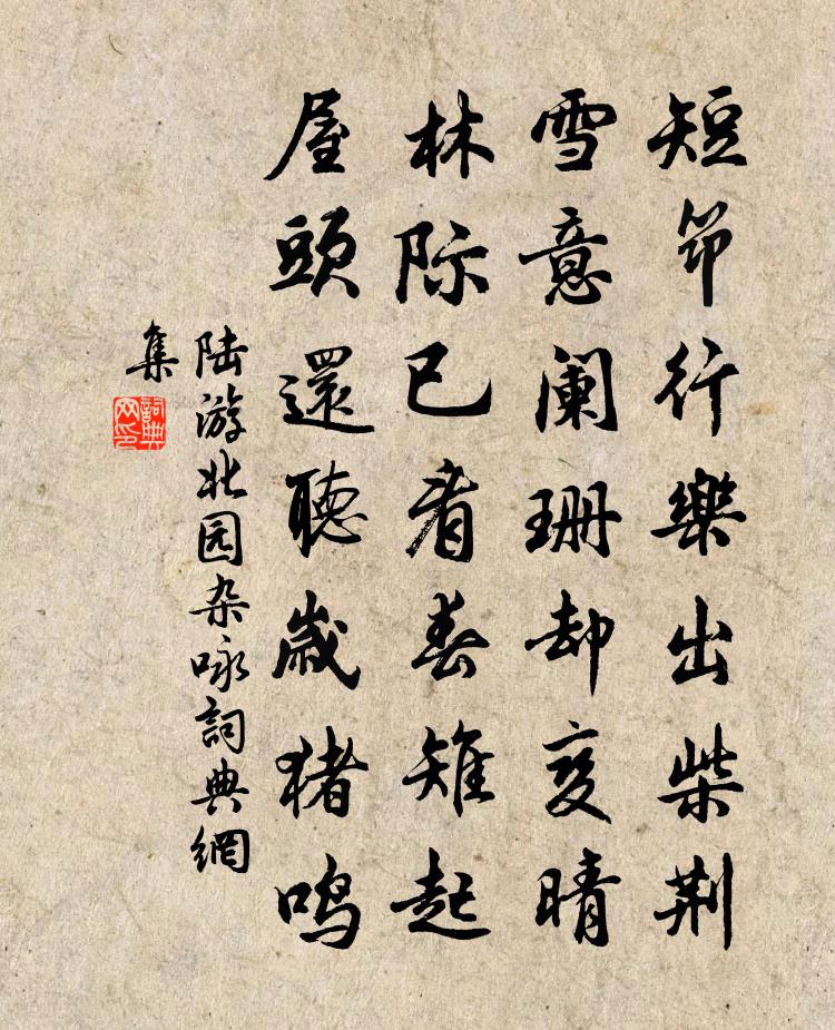 短筇行樂出柴荊,雪意闌珊卻變晴。林際已看春雉起,屋頭還聽歲豬鳴。