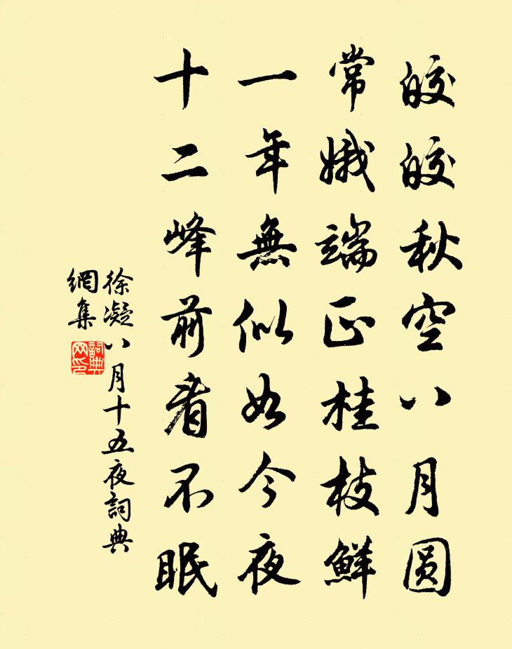 皎皎秋空八月圓,常娥端正桂枝鮮。一年無似如今夜,十二峰前看不眠。