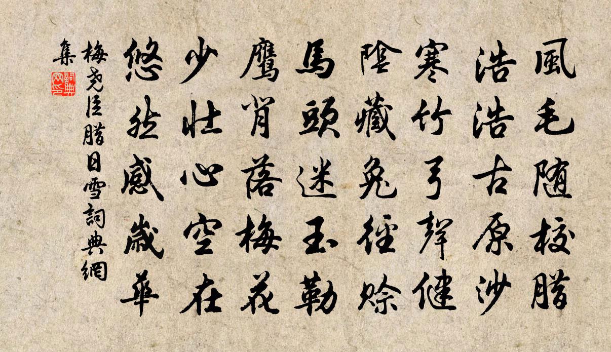風毛隨校臘,浩浩古原沙。寒竹弓聲健,陰藏兔徑賒。