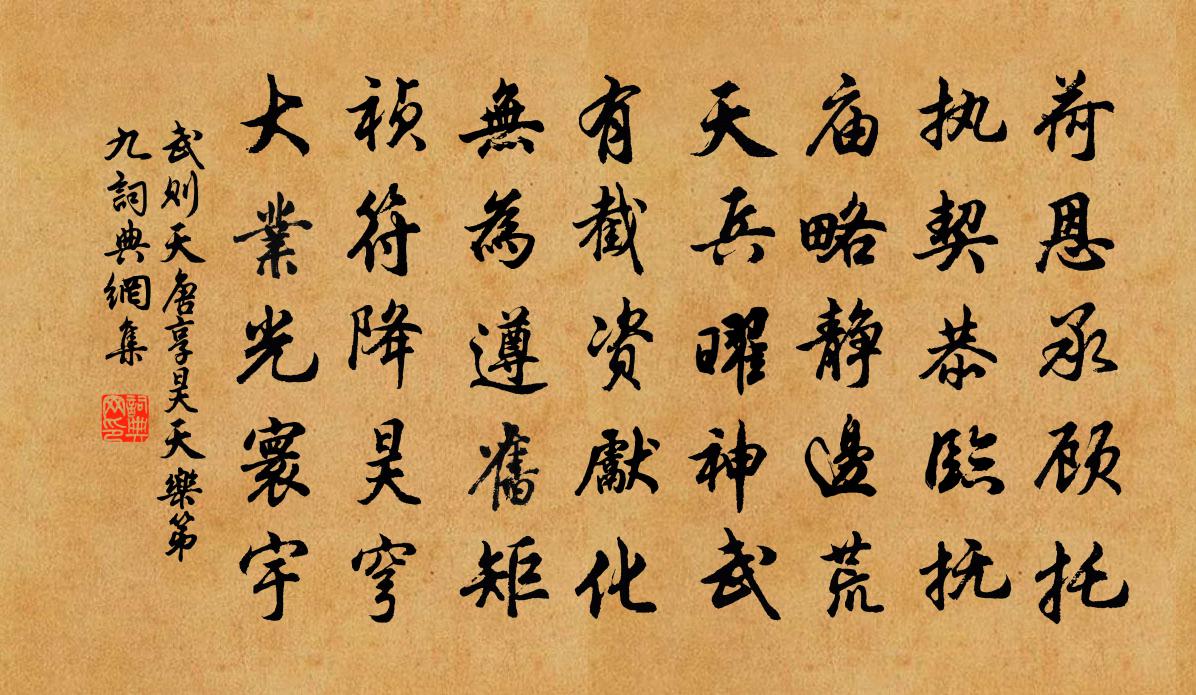 詩詞名句歷史字典書法欣賞書法字典國語詞典說文解字康熙字典古漢語字典標 題 作 者 詩 句 唐享昊天樂。第九作者:武則天 朝代:唐代唐享昊天樂。第九原文荷恩承顧托,執契恭臨撫。廟略靜邊荒,天兵曜神武。有截資先化,無為遵舊矩。禎符降昊穹,大業光寰宇。詩詞問答問:唐享昊天樂。第九的作者是誰?答:武則天問:唐享昊天樂。第九寫於哪個朝代?答:唐代武則天唐享昊天樂。第九書法欣賞唐享昊天樂。第九書法作品注釋全唐詩:卷5_11全唐詩:卷13_27詩詞推薦官舍夙興陸游〔宋代〕朝陽淡淡掛窗欞,桐葉無風忽自零。不復扶頭傾白墮,但知臨目養黃寧。新蔬帶露來幽圃,修綆飛泉灑廣庭。一出送張端明赴召周必大〔宋代〕家傳圯上一編書,二紀論思只緒餘。此去籌帷方倚重,赤松那得便從渠。和昝通彥早梅韻吳芾〔宋代〕歲歲梅花破臘開,賞花嘗記坐蒼苔。今年似覺寒猶未,昨夜不知春已回。喜有暗香供雅客,可無佳句助深杯。須知再送潘仲寶兼寄彭城交舊賀鑄〔宋代〕風雨扁舟幸少留,為君持酒話徐州。白魚紫蟹秋初美,戲馬飛鴻夢屢游。二阮年來知健否,季真老去盡歸休。白雲一晝千萬思曾鞏〔宋代〕一晝千萬思,一夜千萬愁。晝思復夜愁,晝夜千萬秋。故人遠為縣,海邊勾踐州。故人道何如,不間也與周。我如巢父洗耳圖鄭思肖〔宋代〕萬事喧雜帝響中,細參巢父意無窮。須還半掬溪邊水,方始教君耳不聾。郊居陸游〔宋代〕平生萬事不容求,惟有郊居志已酬。更漏遠城雞唱曉,歲時無歷葉知秋。潮生小舫行收荻,月落長歌起飯牛。已作韓愈見大顛圖贊釋智愚〔宋代〕膻後板,無孔笛。省要乞一言,虛空轟霹靂。臨機不爭,轉身又卻。隨他聲色非聲色,洞庭湖外千峰碧。送覺祖院明上人曾鞏〔宋代〕冠石新牆日月回,豐堂環殿起崔嵬。鍾隨秋勢金聲壯,佛隱寒雲玉座開。流水遠奔雙澗去,平林高擁四山來。麒麟贈信美寺岑上人司空圖〔唐代〕巡禮諸方遍,湘南頻有緣。焚香老山寺,乞食向江船。紗碧籠名畫,燈寒照淨禪。我來能永日,蓮漏滴寒泉。晨起二首張耒〔宋代〕仲春忽過半,長養候已深。晨興雨初霽,近日矚平林。繁桃張麗錦,好鳥鳴清琴。樛枝有新子,翹草無陳心。謫官壁侍者歸自廬山以詩間訊徐端〔宋代〕壁公挑雲廬山去,自我不見今三年。出家本是丈夫事,成佛不作文章禪。西竺東震非道二,心宗教意難言傅。何進延慶宮勾台符〔宋代〕一簇樓台地,嵯峨四面函。路盤七折嶺,坐對六時岩。喜楊廷秀秘監再入館陸游〔宋代〕公去蓬山輕,公歸蓬山重,錦囊三千篇,字字律呂中。文章實公器,當與天下共。吾嘗評其妙,如龍馬受鞚。燕許戰城南盧照鄰〔唐代〕將軍出紫塞,冒頓在烏貪。笳喧雁門北,陣翼龍城南。雕弓夜宛轉,鐵騎曉參潭。應須駐白日,為待戰方酣。盧十五竹亭送侄偁歸山楊衡〔唐代〕落葉寒擁壁,清霜夜沾石。正是憶山時,復送歸山客。殷勤一尊酒,曉月當窗白。詠史上光武陳普〔宋代〕赤符交錫帝心移,不似初來岸幘時。浪泊壺頭終落落,羊裘男子殆先知。欲雪復晴梅堯臣〔宋代〕陰雲不成雪,碧瓦有繁霜。日氣生簾額,冰條結井床。飛烏鳴自樂,古木晝仍殭。誰意斗晴後,苦寒勝北方。劍喻李鹹用〔唐代〕黯黯秋水寒,至剛非可缺。風胡不出來,攝履人相蔑。縱挺倚天形,誰是躬提挈。願將百鍊身,助我王臣節。摸魚子馬熙〔元代〕買陂塘旋栽楊柳,夢中還理家務。十年不到衡山麓,孤負楚雲湘雨。苹映渚。渺杜若江蘺。香接煙霞嶼。口心相語名句推薦憐君片雲思,一棹去瀟湘。杜牧《送薛種游湖南》 青山一道同雲雨,明月何曾是兩鄉。王昌齡《送柴侍御》 積學以儲寶,酌理以富才劉勰《文心雕龍·神思》 當軒對尊酒,四面芙蓉開。王維《臨湖亭》 此地朝來餞行者,翻向此中牧征馬。孟浩然《高陽池送朱二》 誰謂傷心畫不成,畫人心逐世人情。韋莊《金陵圖》 又有牆頭千葉桃,風動落花紅蔌蔌。元稹《連昌宮詞》 良辰當五日,偕老祝千年。權德輿《端午日禮部宿齋有衣服彩結之貺以詩還答》 如今卻憶江南樂,當時年少春衫薄。韋莊《菩薩蠻·如今卻憶江南樂》 黃河落天走東海,萬里寫入胸懷間。李白《贈裴十四》